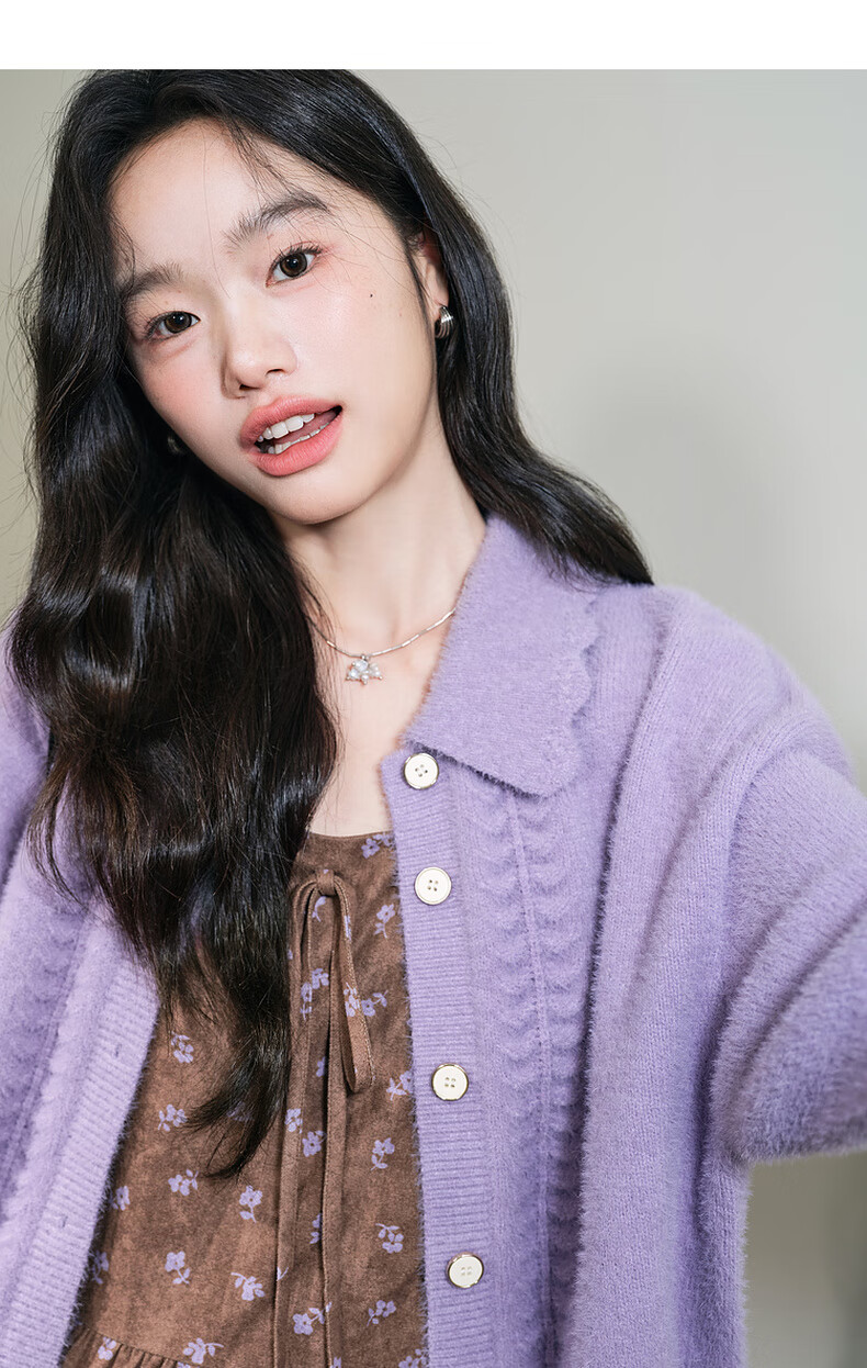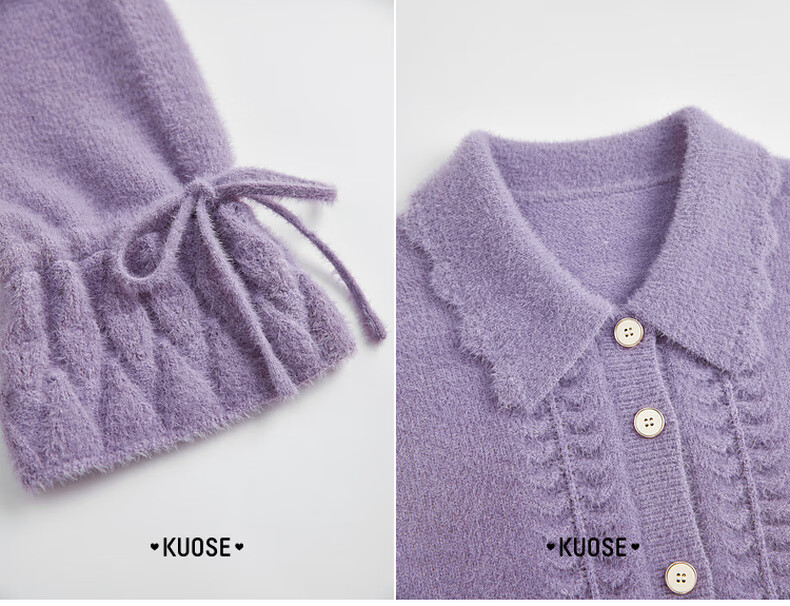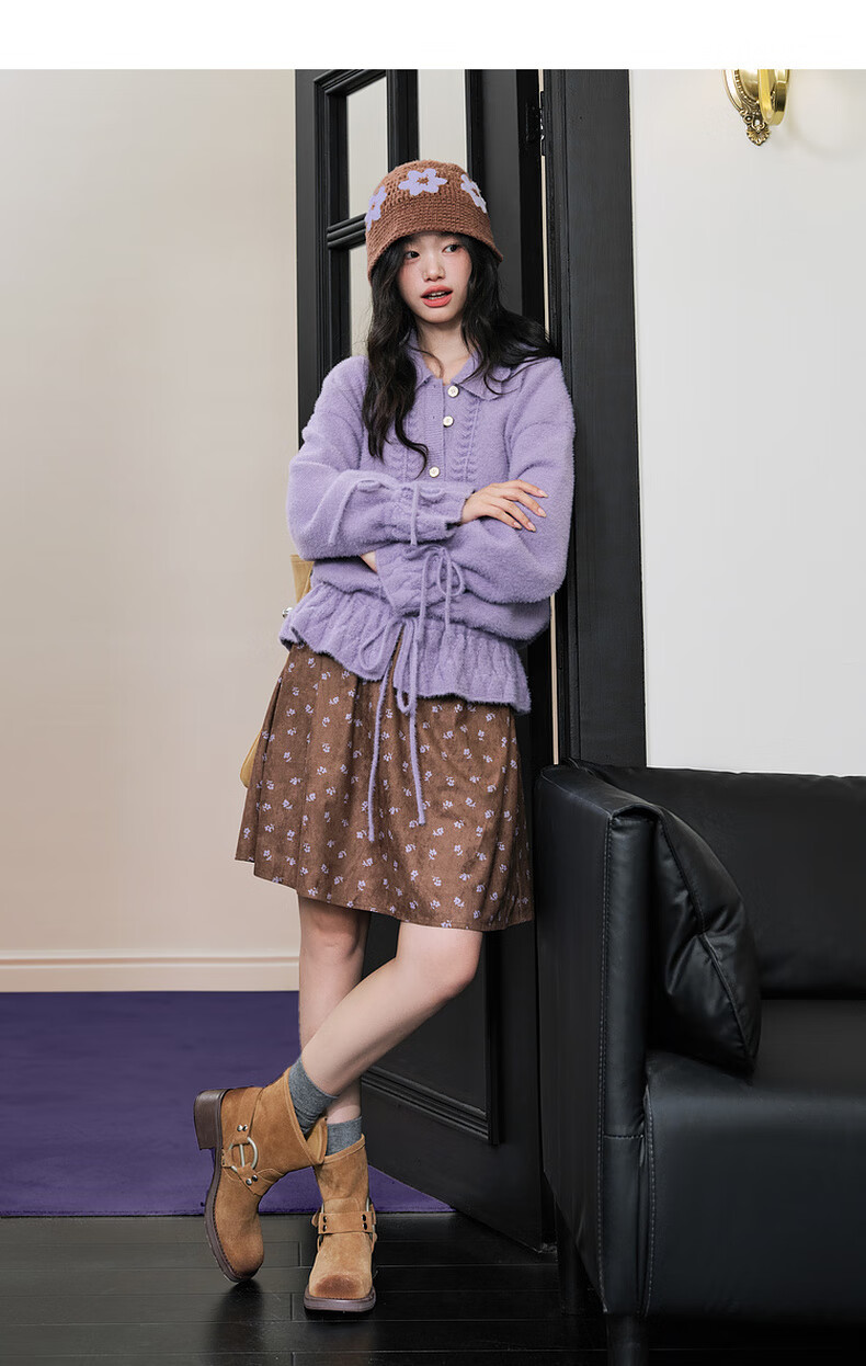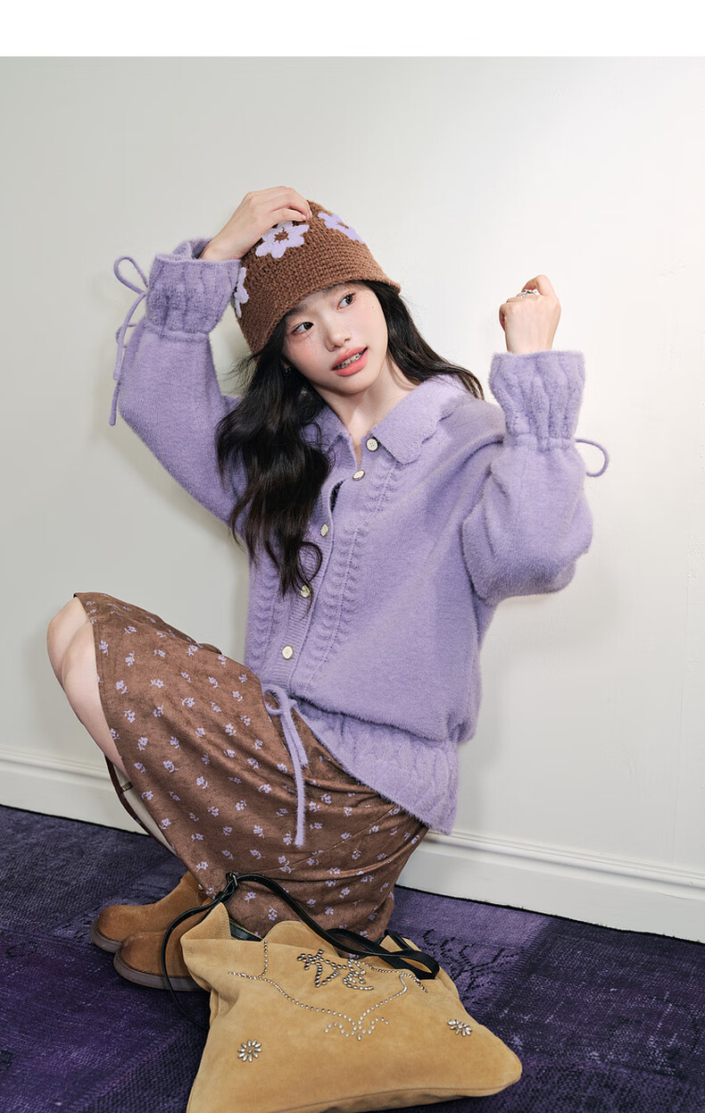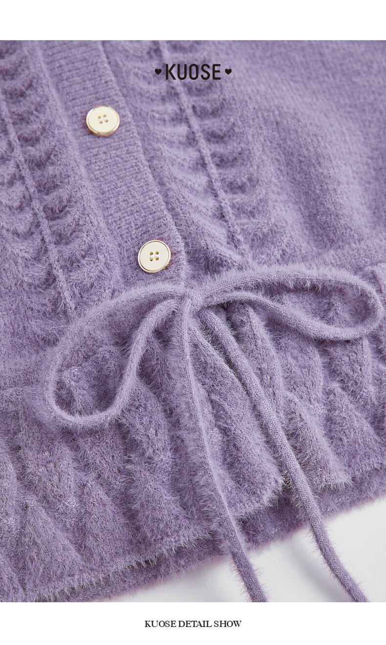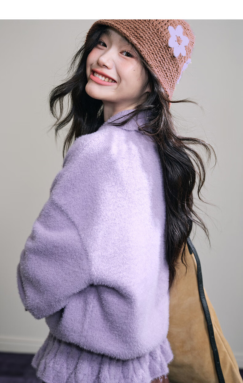 阔色浅紫色荷叶边针织开衫外套女2025秋冬季新款温柔风搭配毛衣 紫色 M