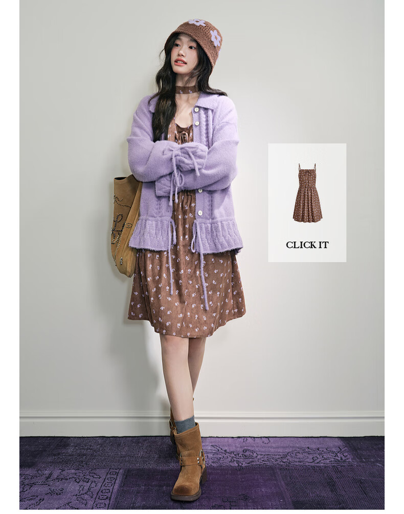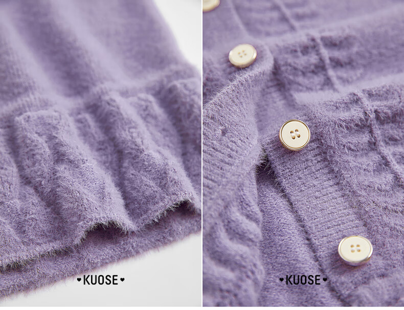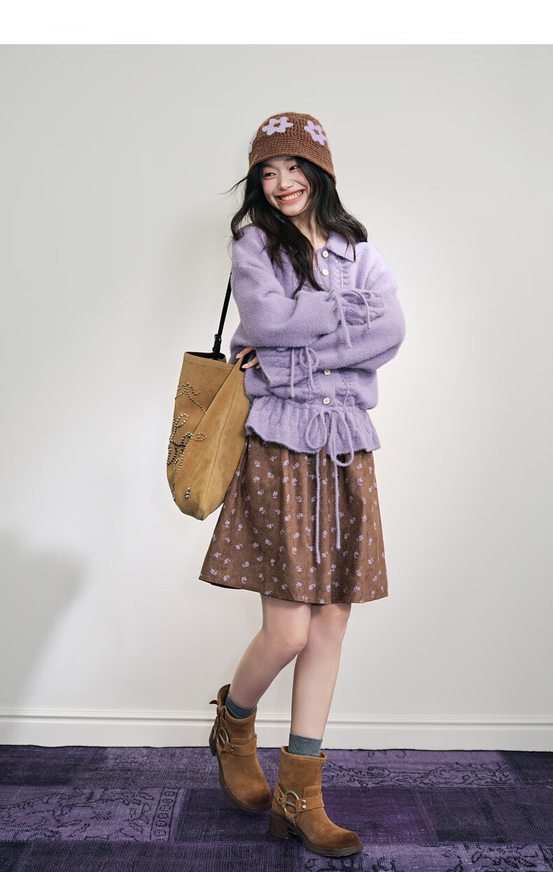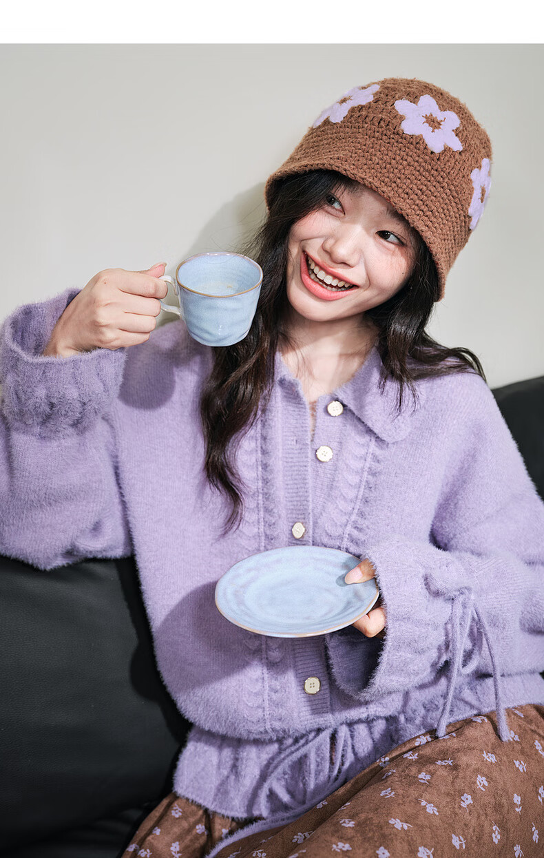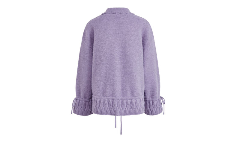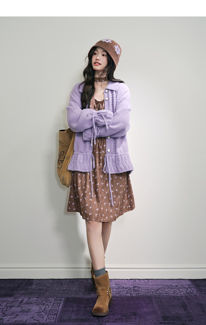 阔色浅紫色荷叶边针织开衫外套女2025秋冬季新款温柔风搭配毛衣 紫色 M