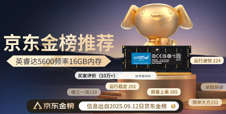 英睿达(crucial)16GB DDR5 5600频率 笔记本内存条 美光(原镁光)原厂颗粒 AI电脑配件