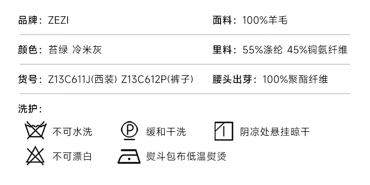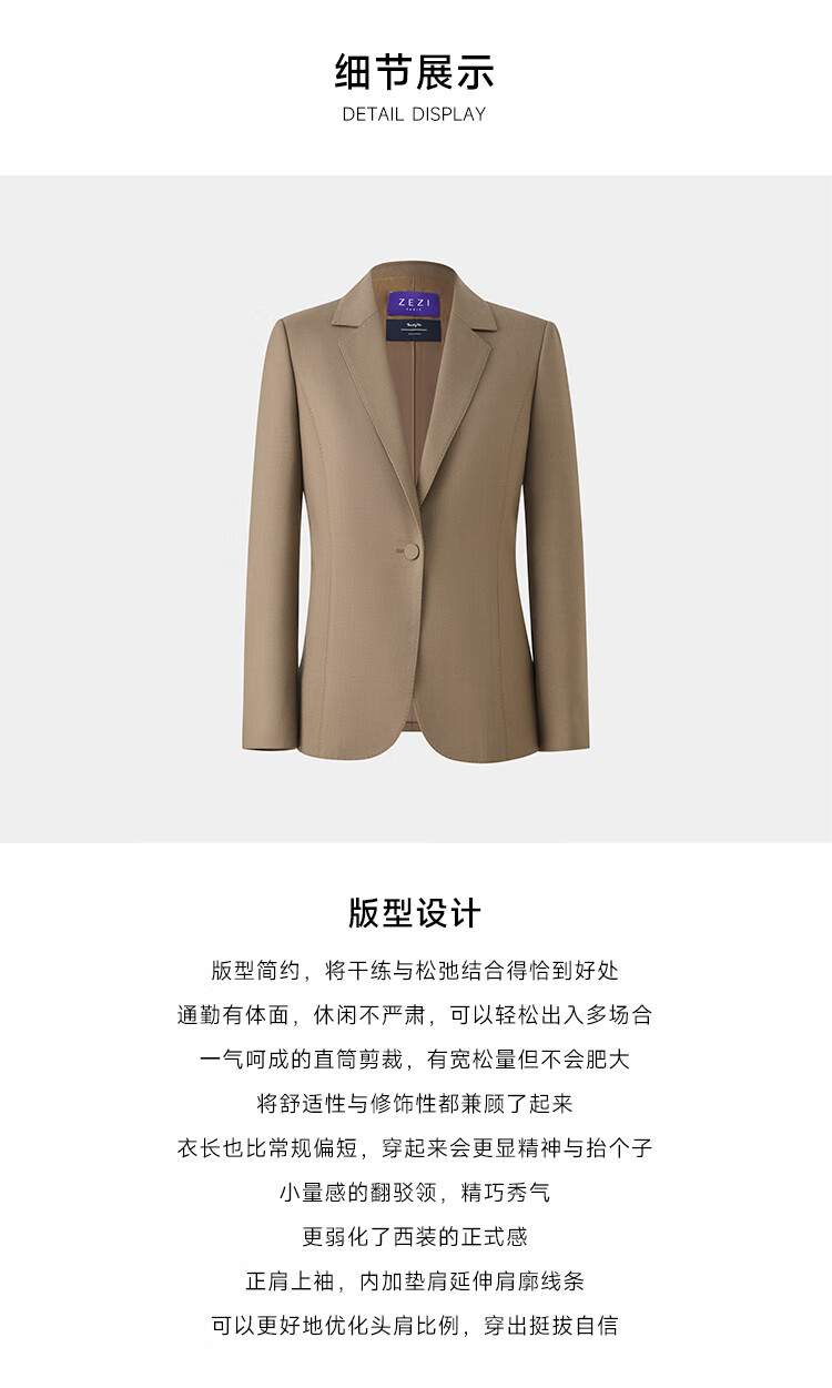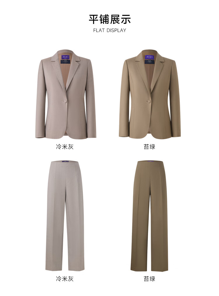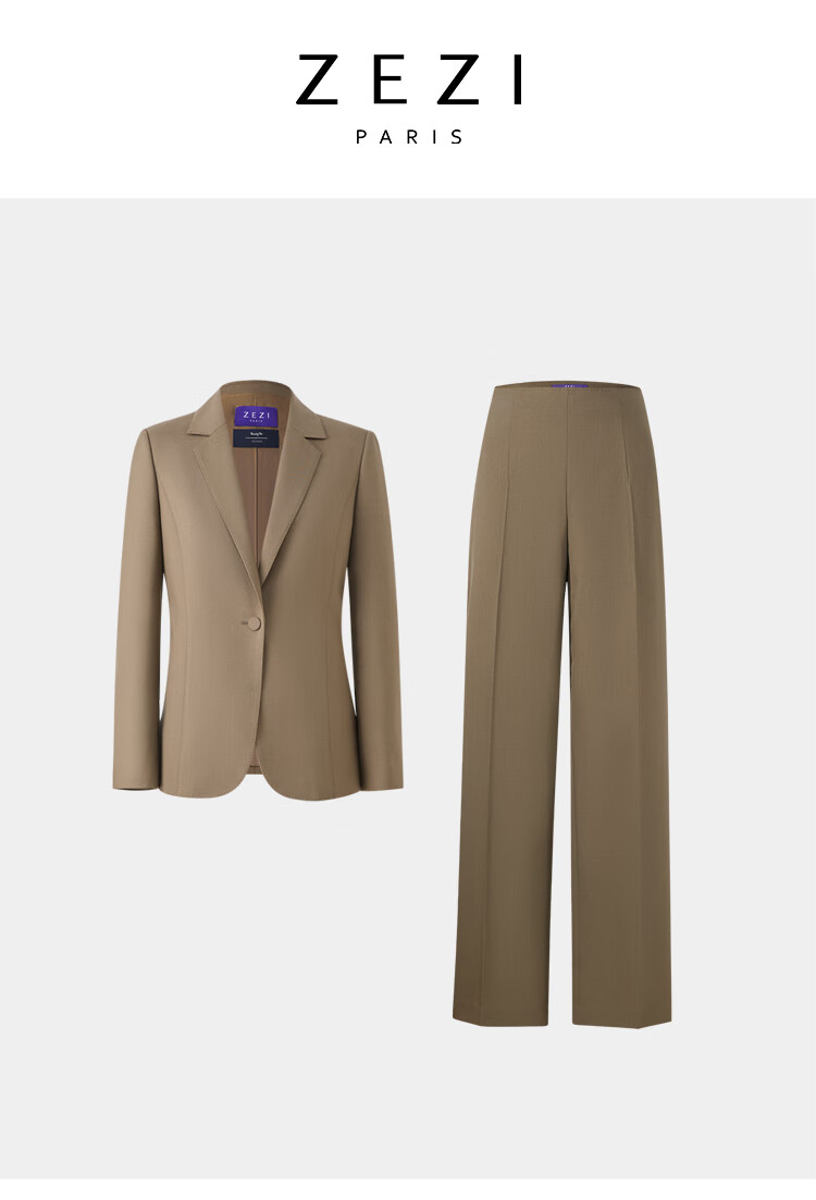 ZEZI进口MARZOTTO100%羊毛西装外套女套装2025秋小个子职业装正装西服 冷米灰 【裤子】 XL 125-135斤