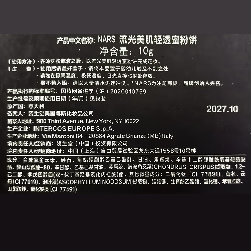 NARS定妆大白饼10g粉饼持久控油不脱妆提亮生日礼物送女【临期清仓】