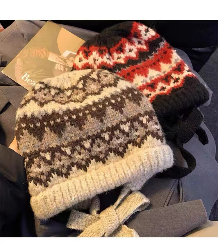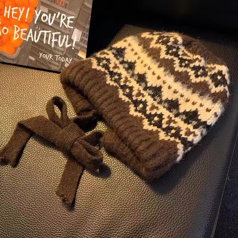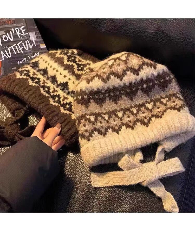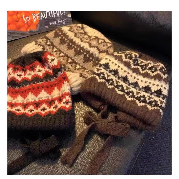 费尔岛帽子针织毛线帽冬季秋冬季巴拉克复古拉法包包保暖包头护耳 棉朿款 针织帽-深棕色
