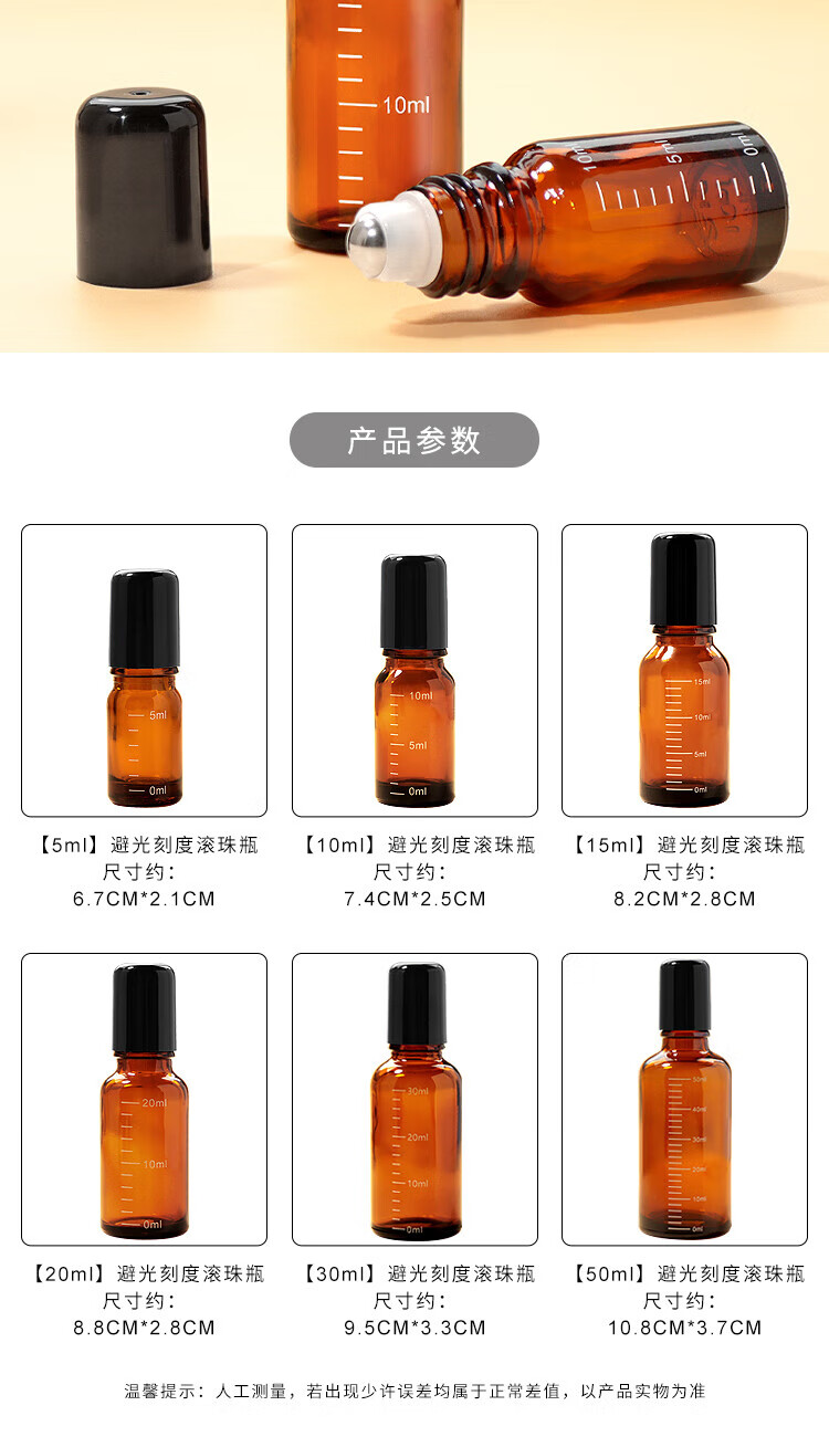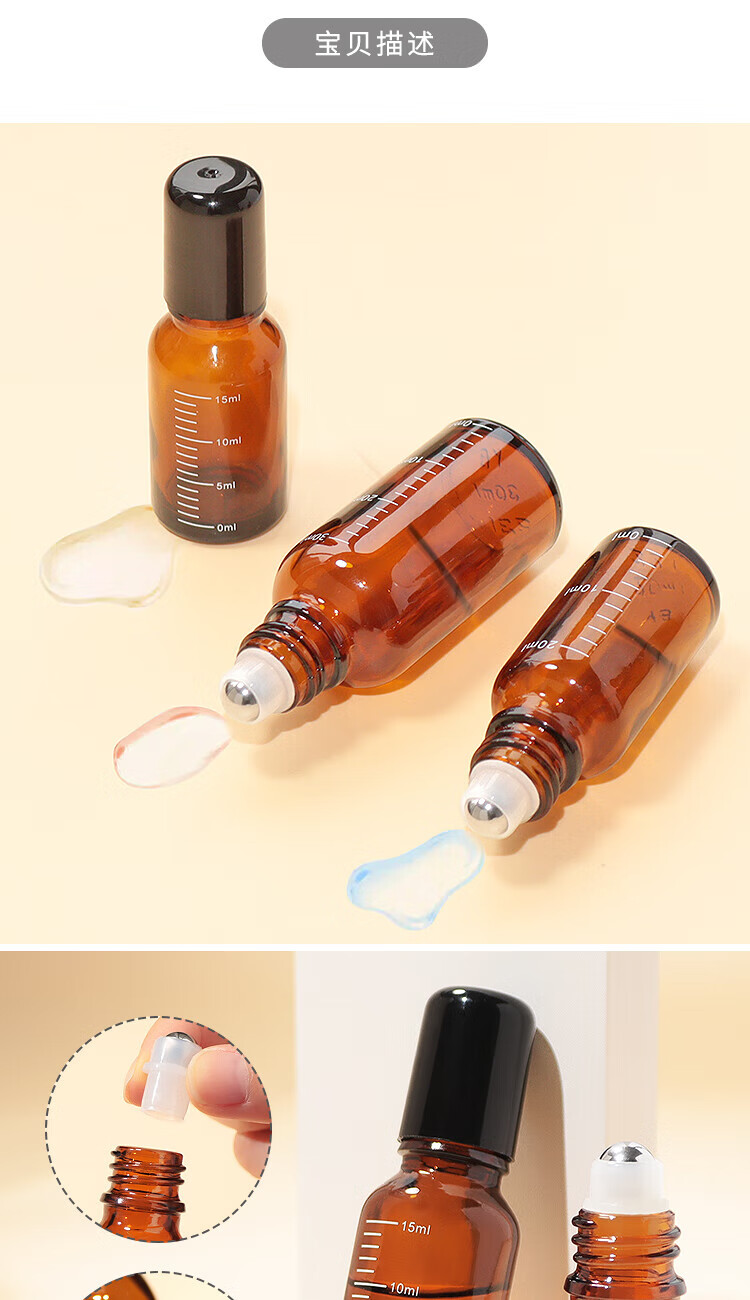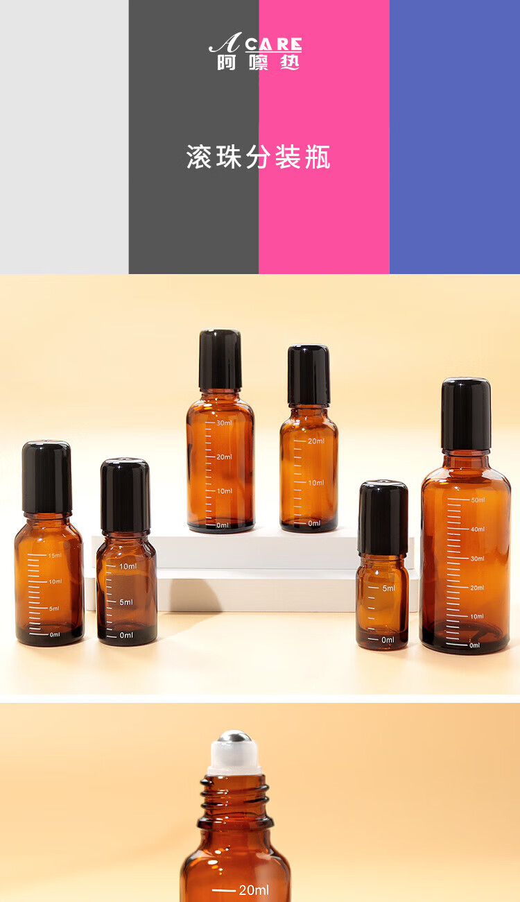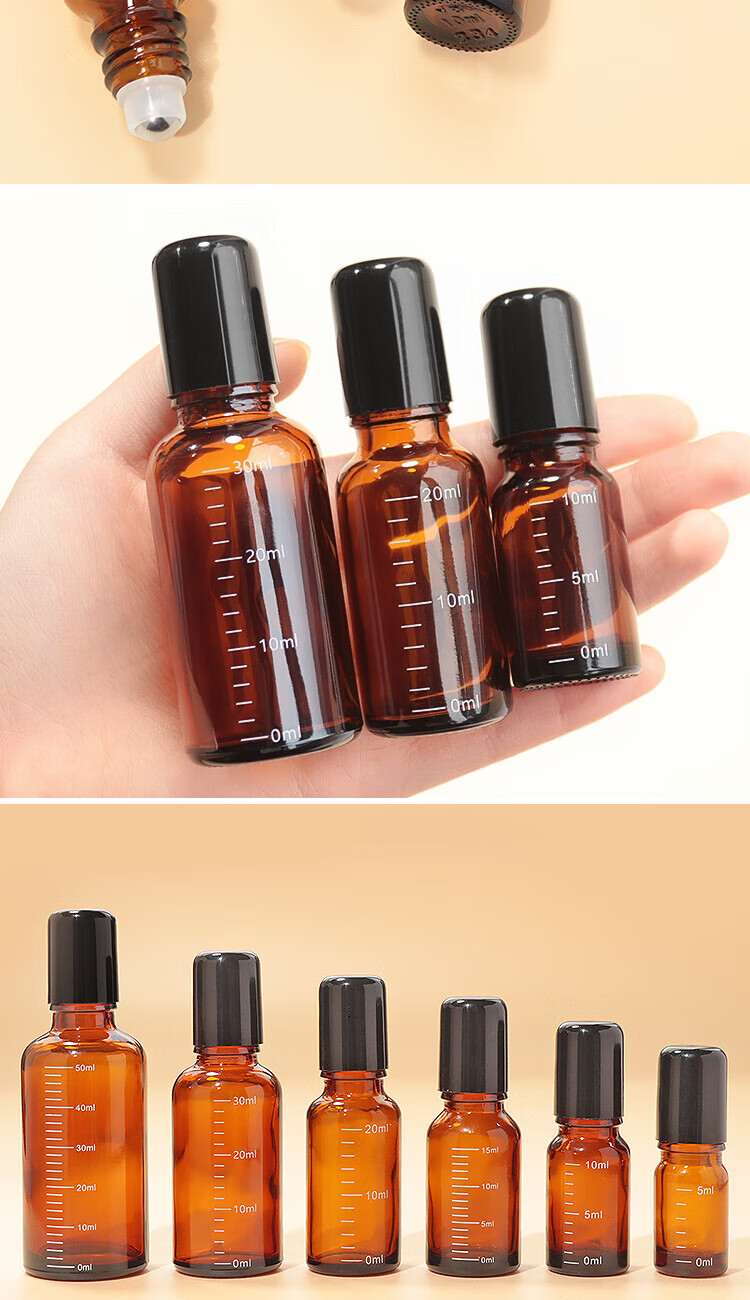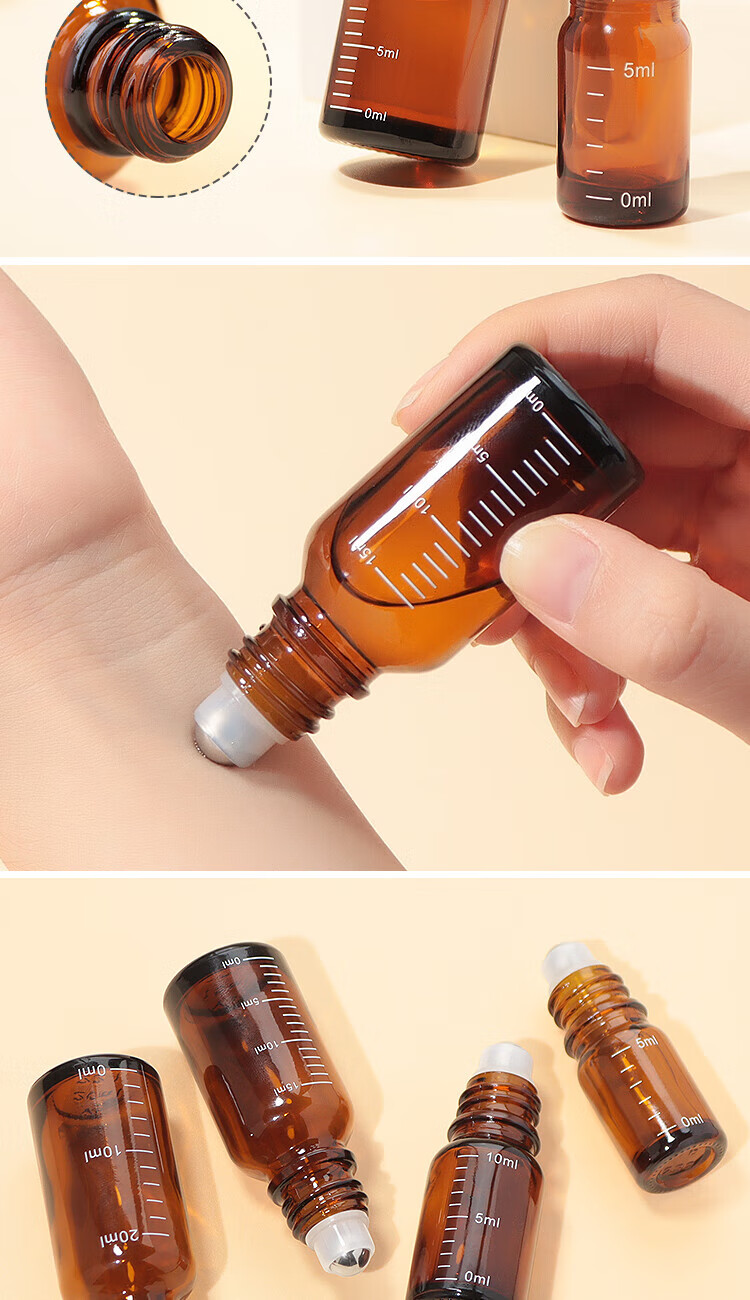 阿嚓热(ACARE)分装瓶/滚珠F1vaq001-避光精油瓶玻璃刻度瓶花露水茶色瓶涂抹瓶 【20ml】避光刻度滚珠瓶 1件