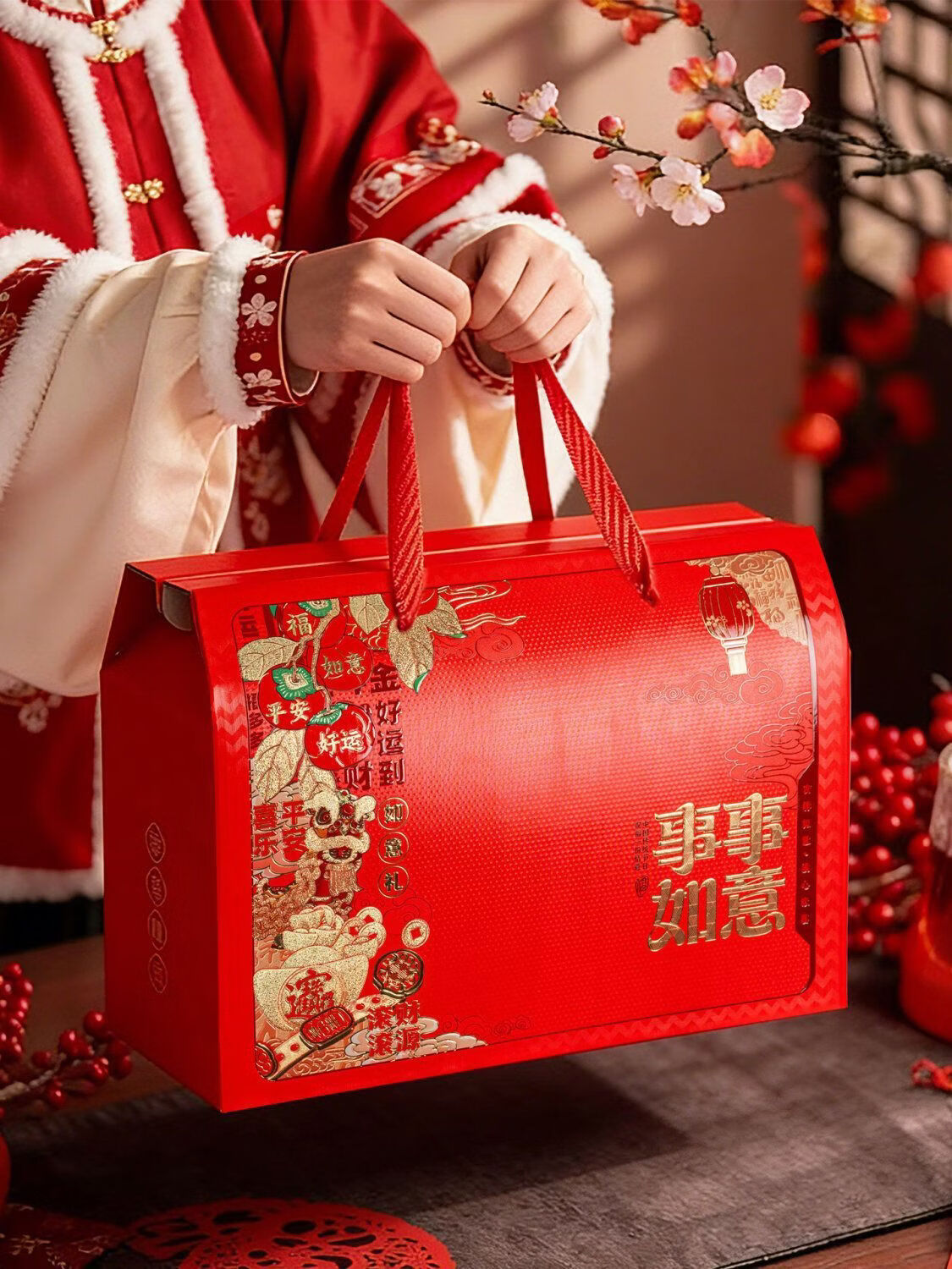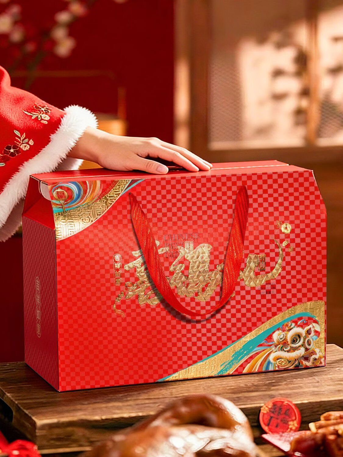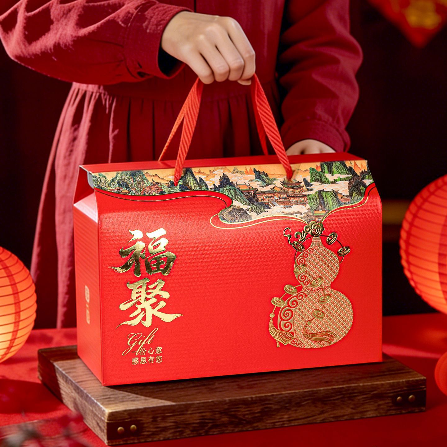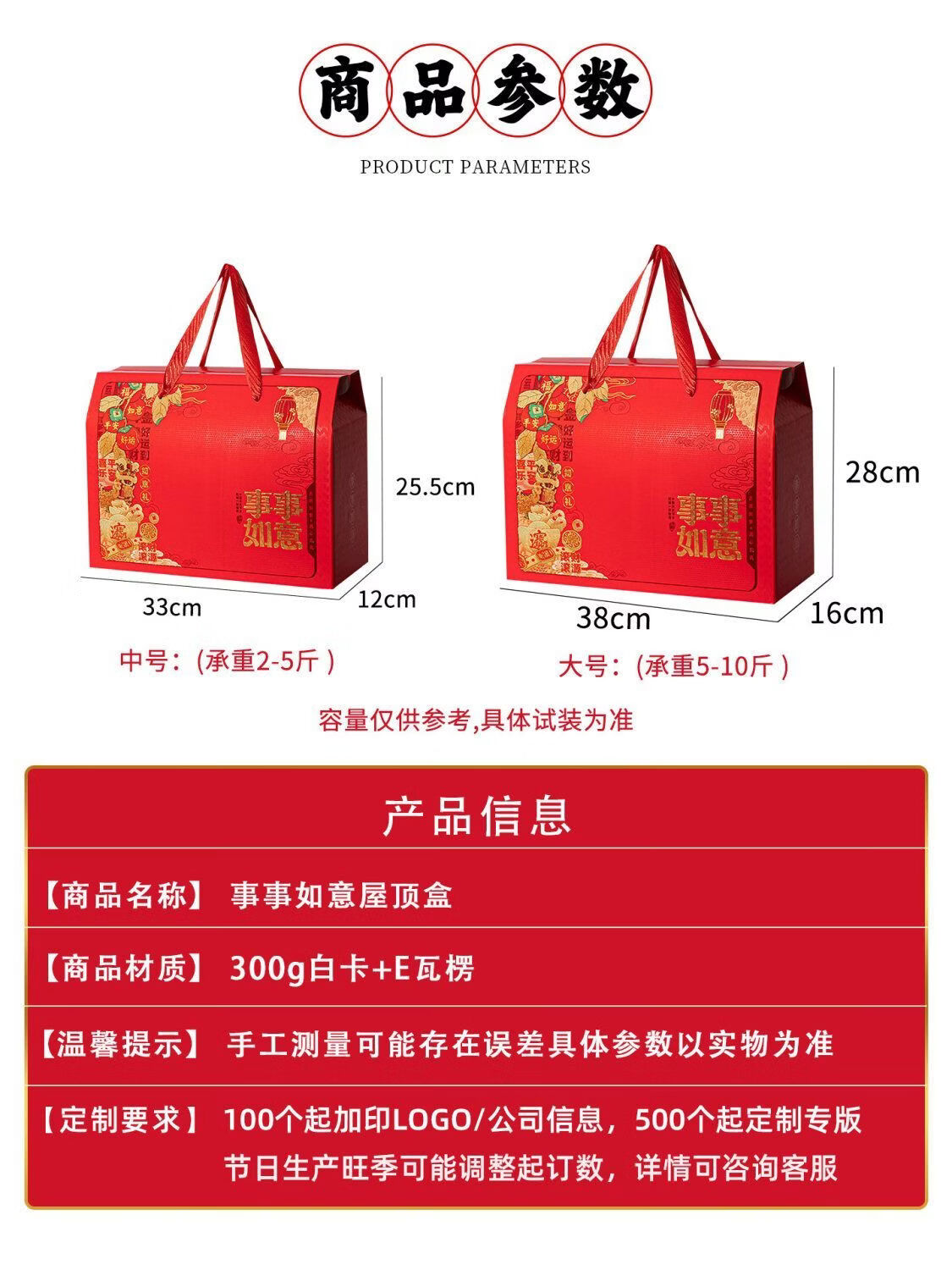 咏幻春节年货通用礼品盒包装空盒水果零食干果熟食年礼礼盒批发定制 福聚屋顶盒 中号[10个空盒]