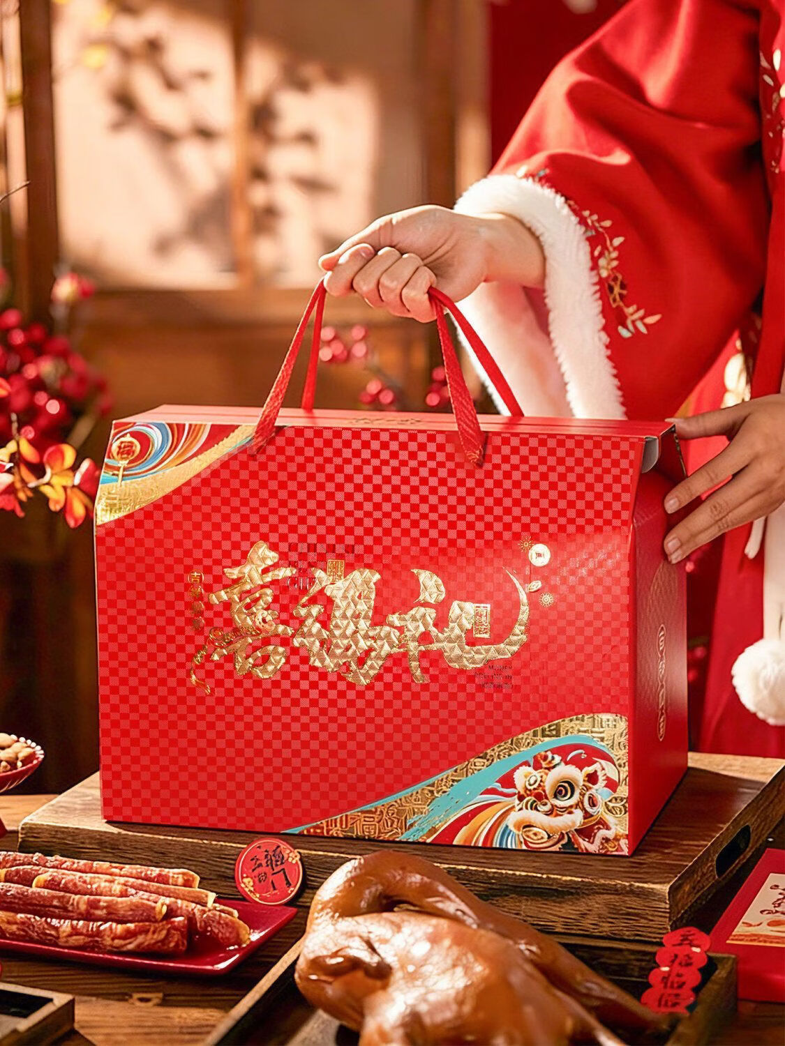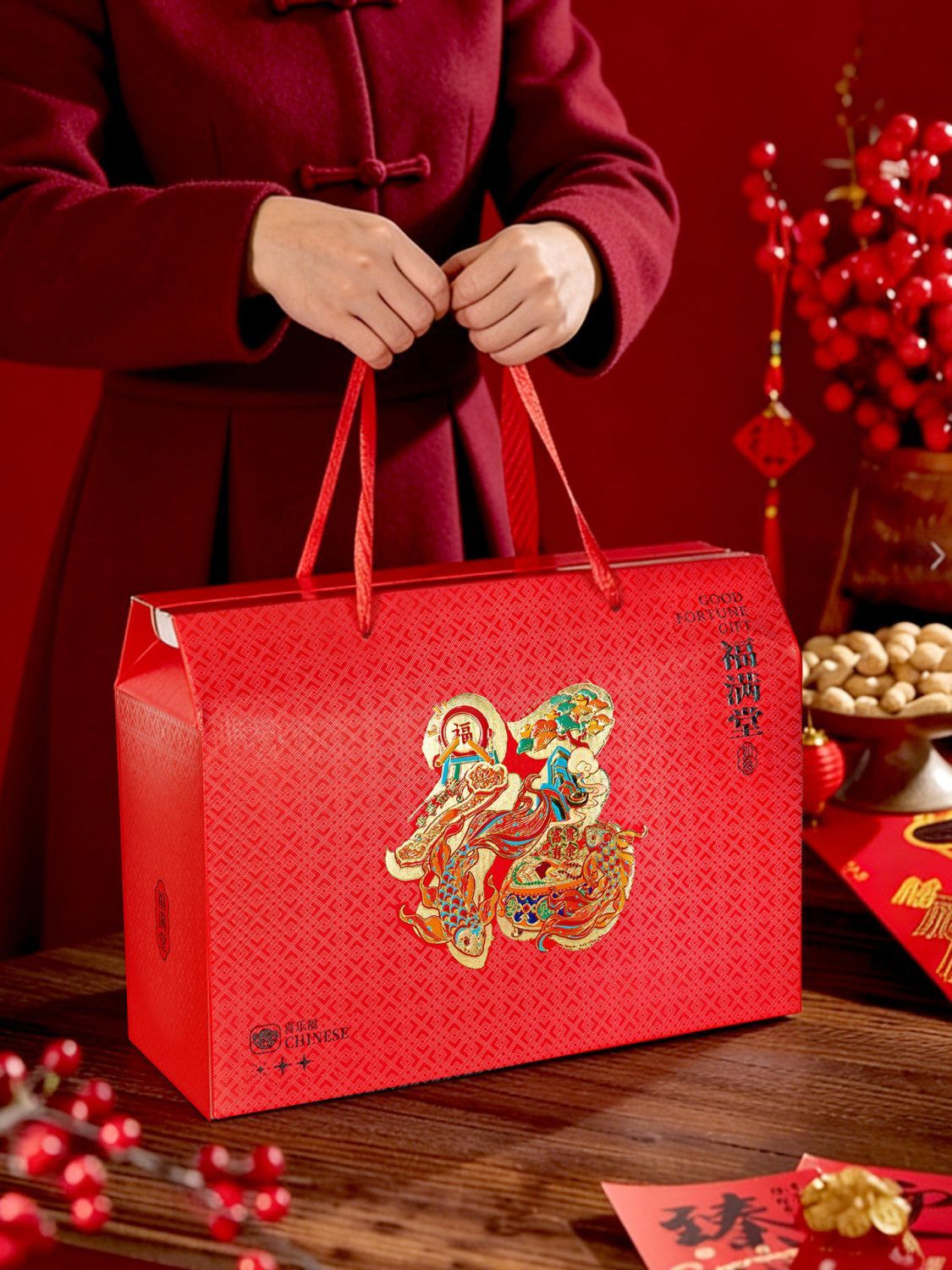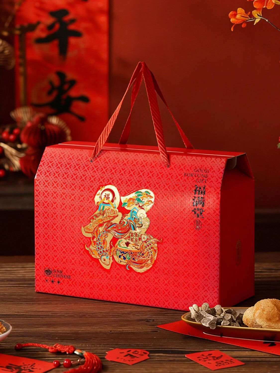 咏幻春节年货通用礼品盒包装空盒水果零食干果熟食年礼礼盒批发定制 福聚屋顶盒 中号[10个空盒]