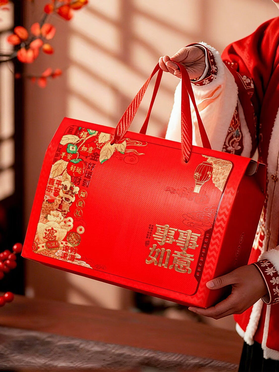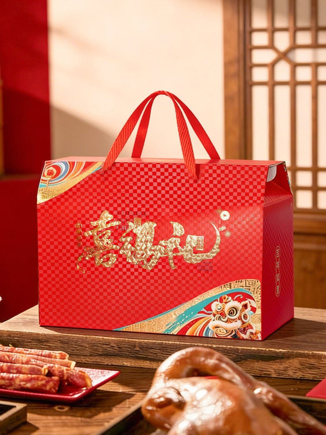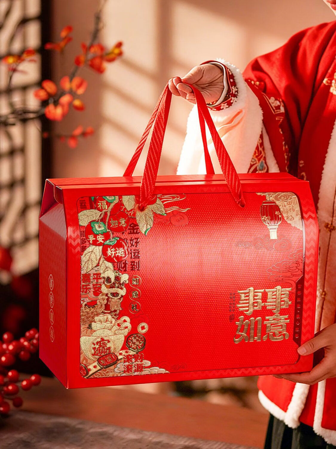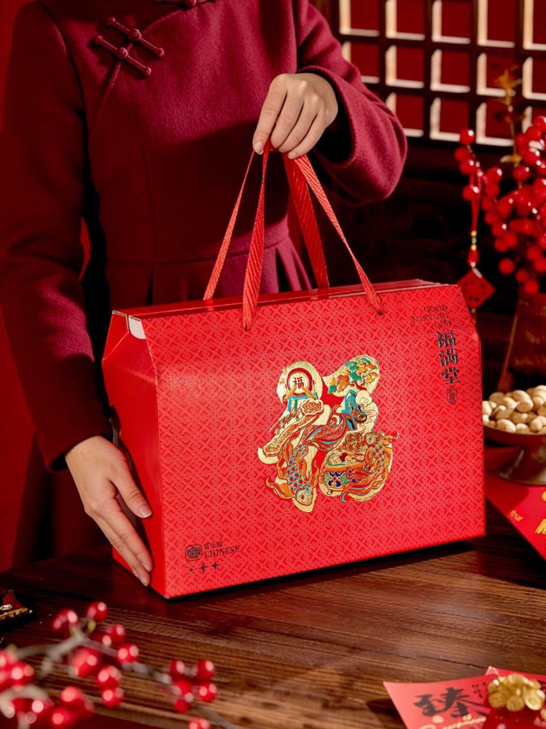 咏幻春节年货通用礼品盒包装空盒水果零食干果熟食年礼礼盒批发定制 福聚屋顶盒 中号[10个空盒]