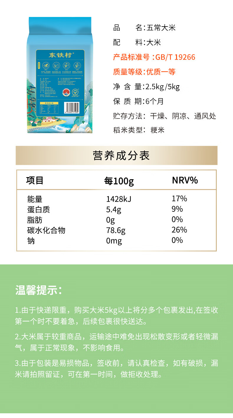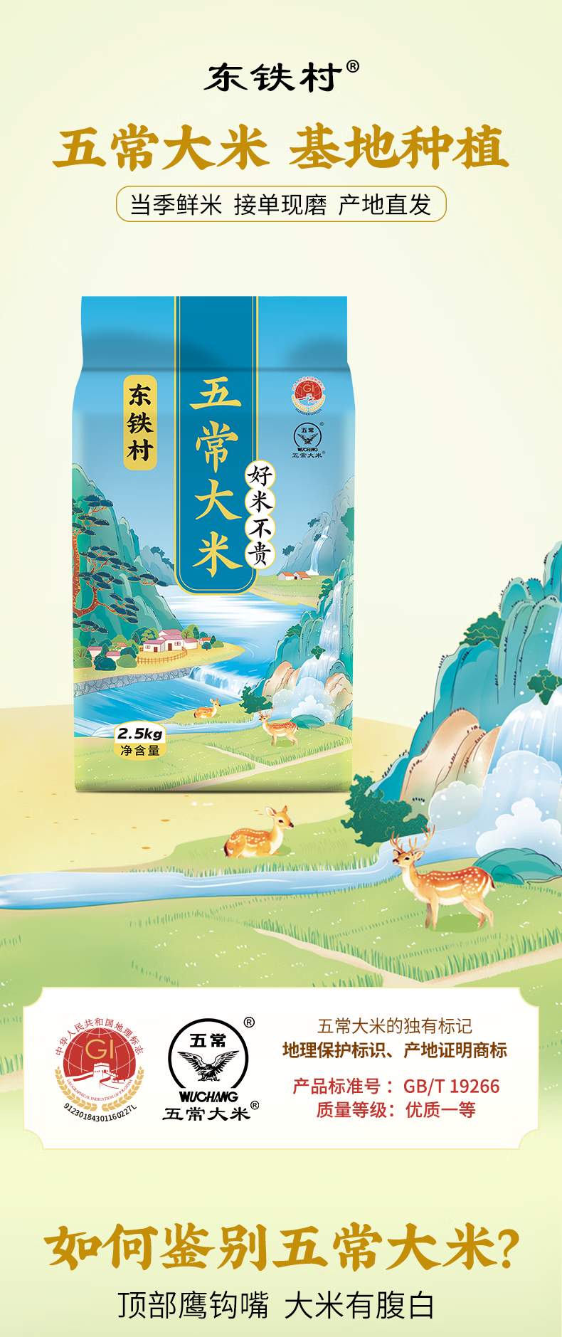 东铁村五常大米2025当季新米 寒地黑土种植 现磨现发 核心产区源头直发 五斤五常大米 2.5kg*1