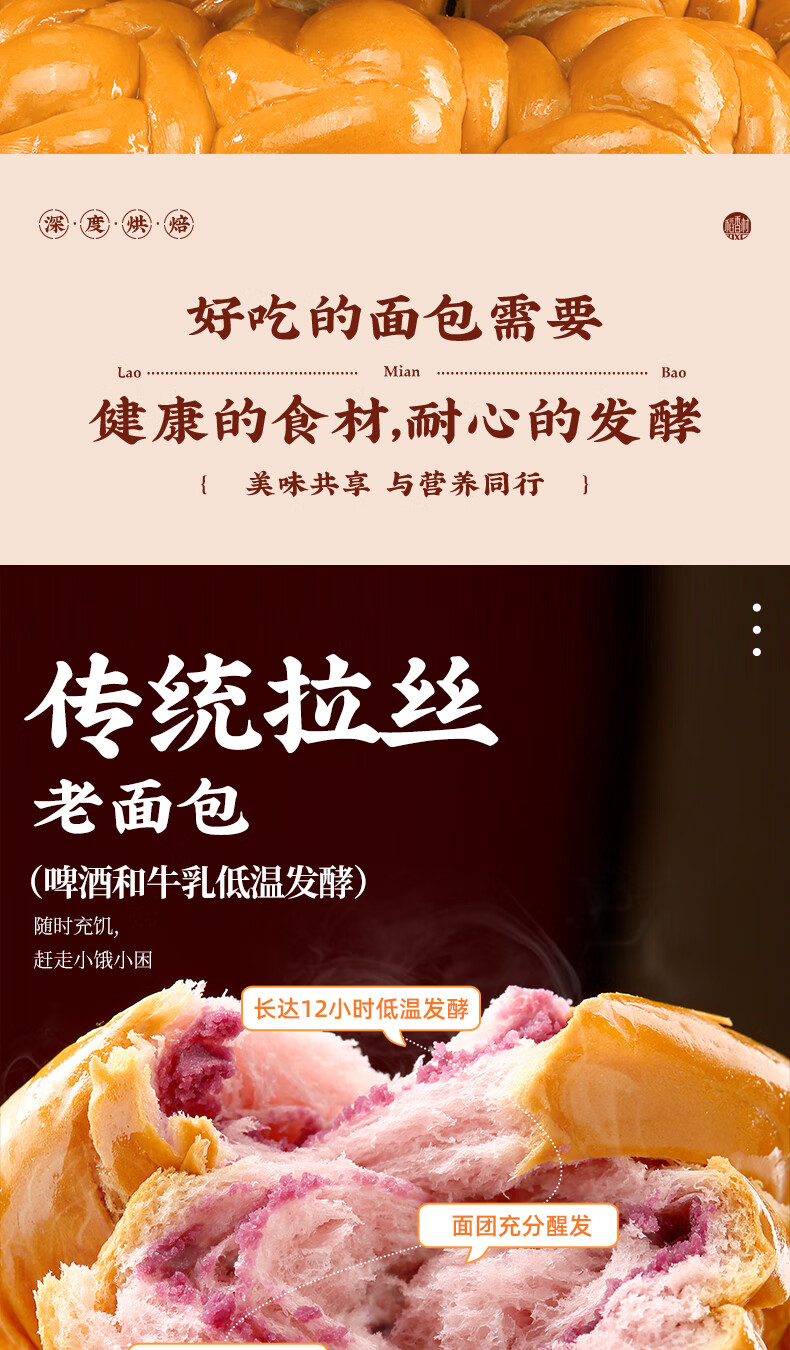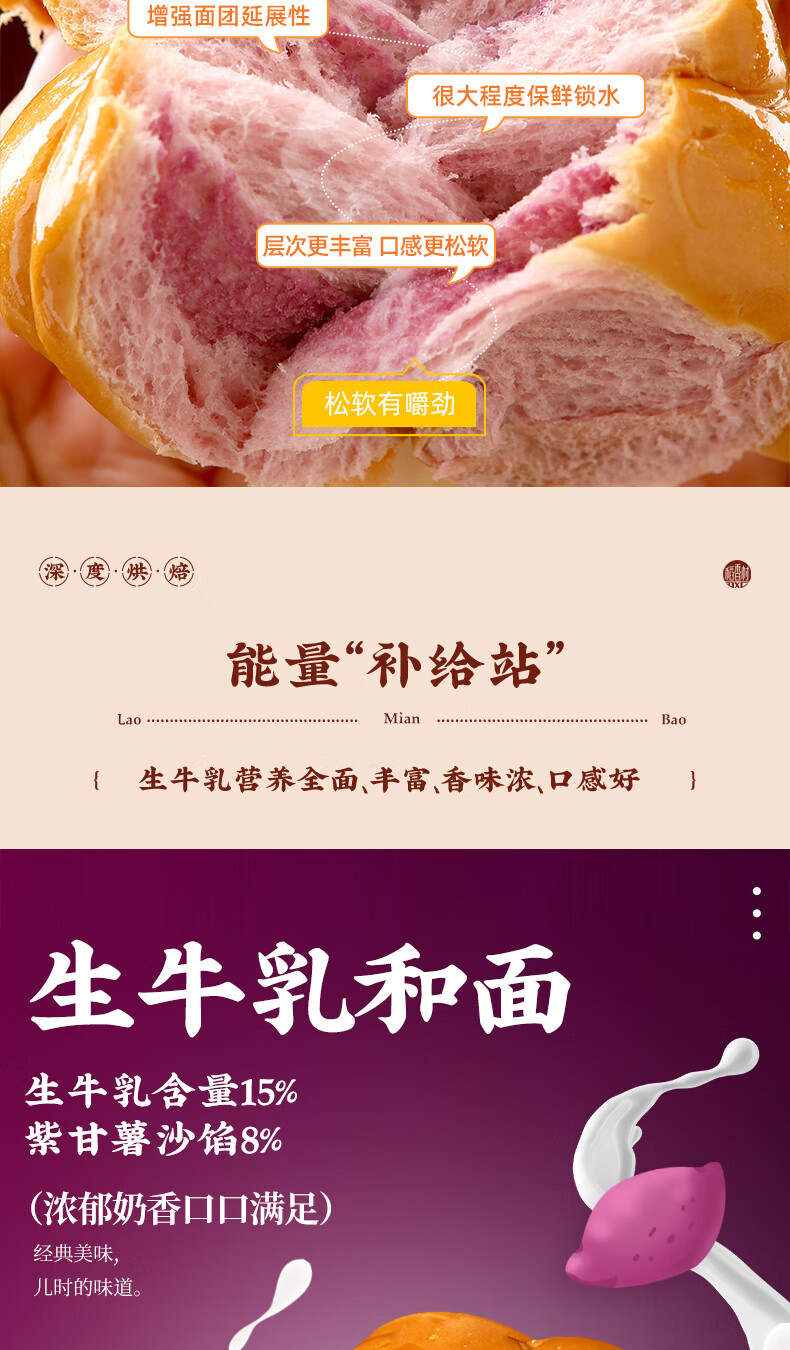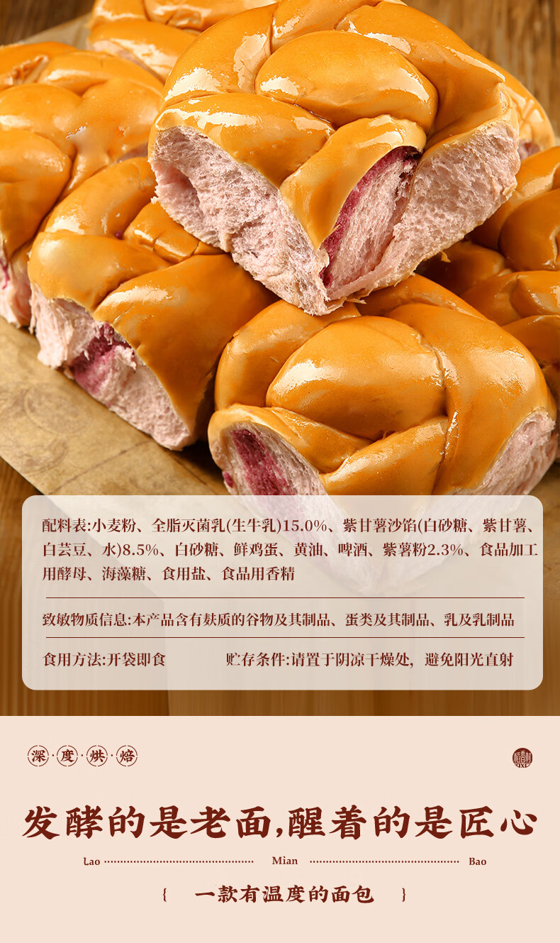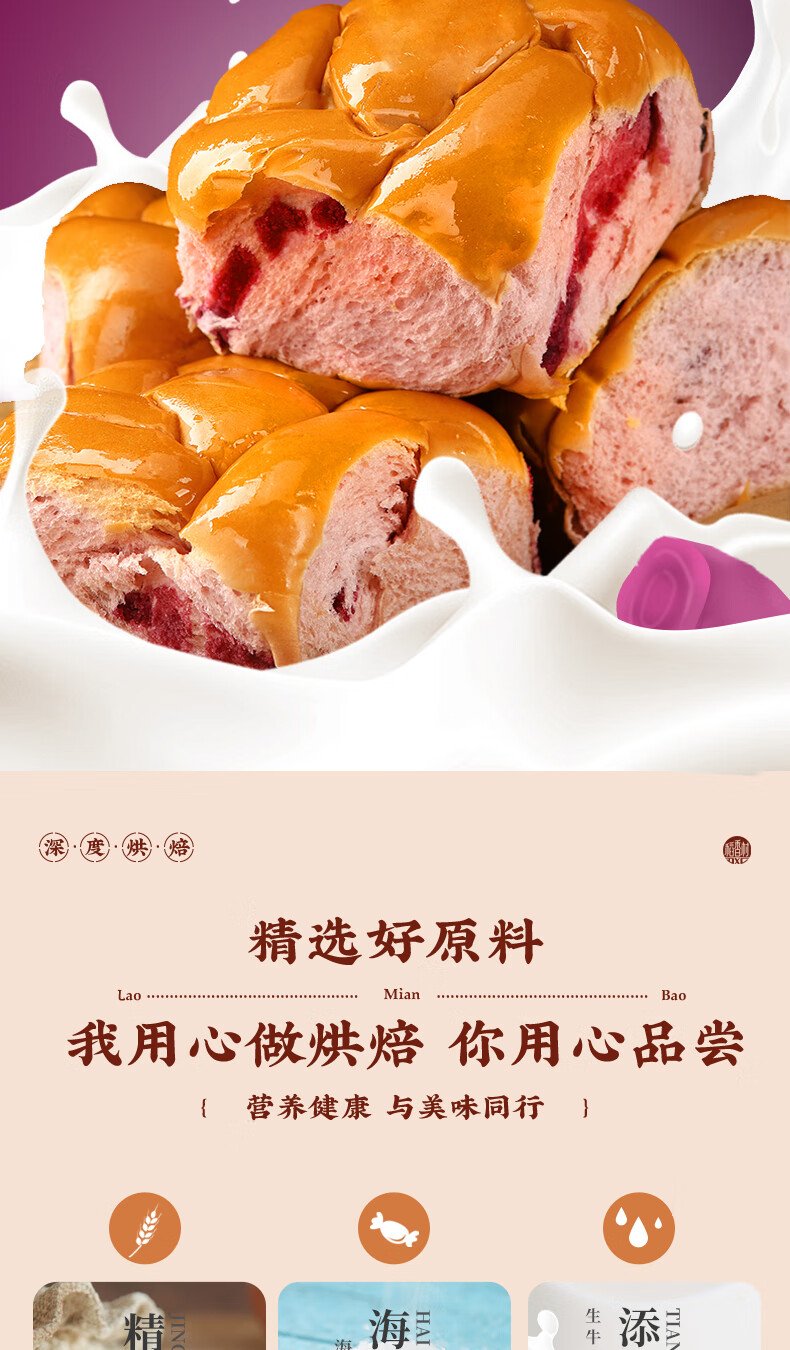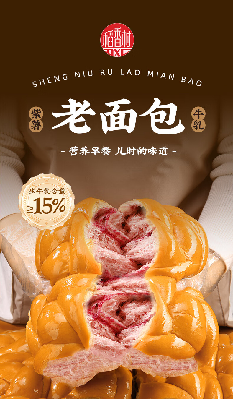 稻香村(DXC)紫薯牛乳老面包早餐蛋糕点宿舍即食下午茶充饥手撕面包食品 紫薯牛乳面包105g*9袋
