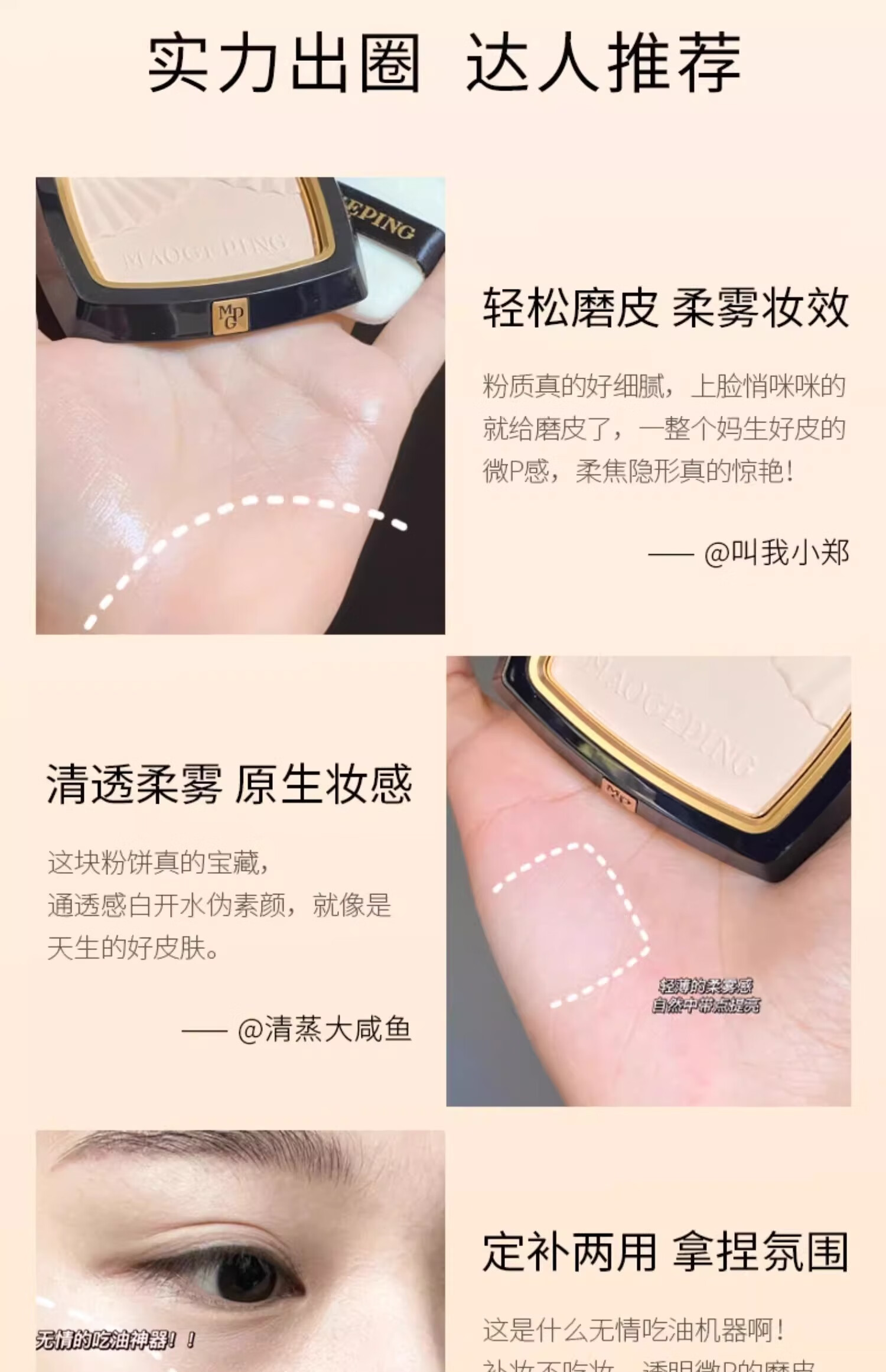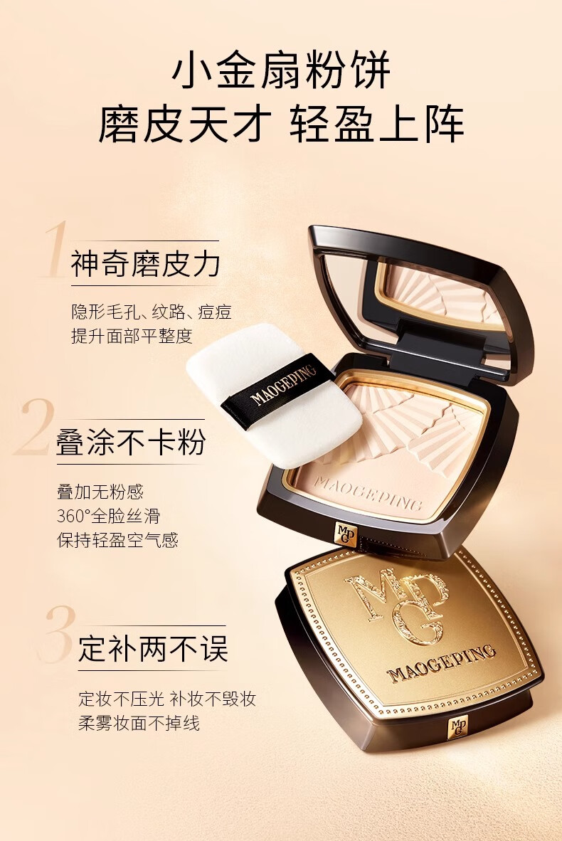 毛戈平程十安毛戈平粉饼小金扇光感柔纱凝颜遮瑕粉膏控油持久定妆粉补妆 802#柔纱色7g【适合自然肤色】