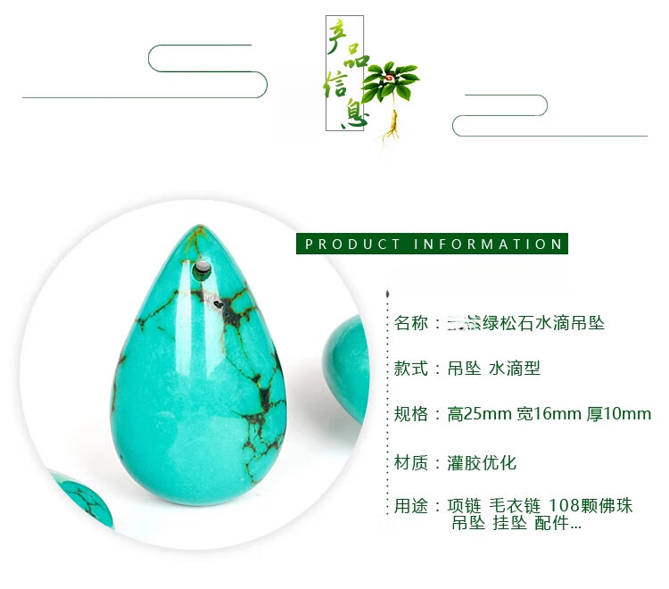三栖虎绿松石吊坠diy项链绿色仿水滴形心形挂坠项链米兰线粗 绿松石水滴 水滴/每个