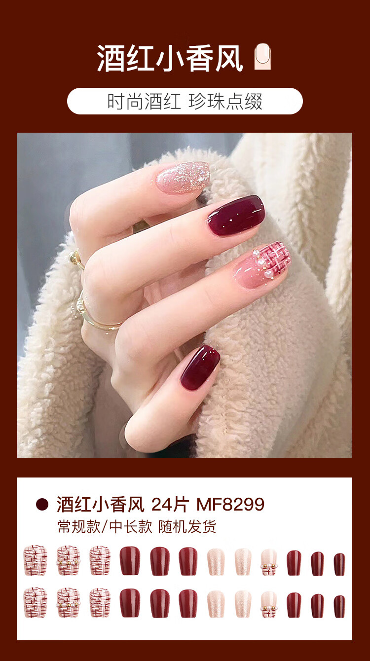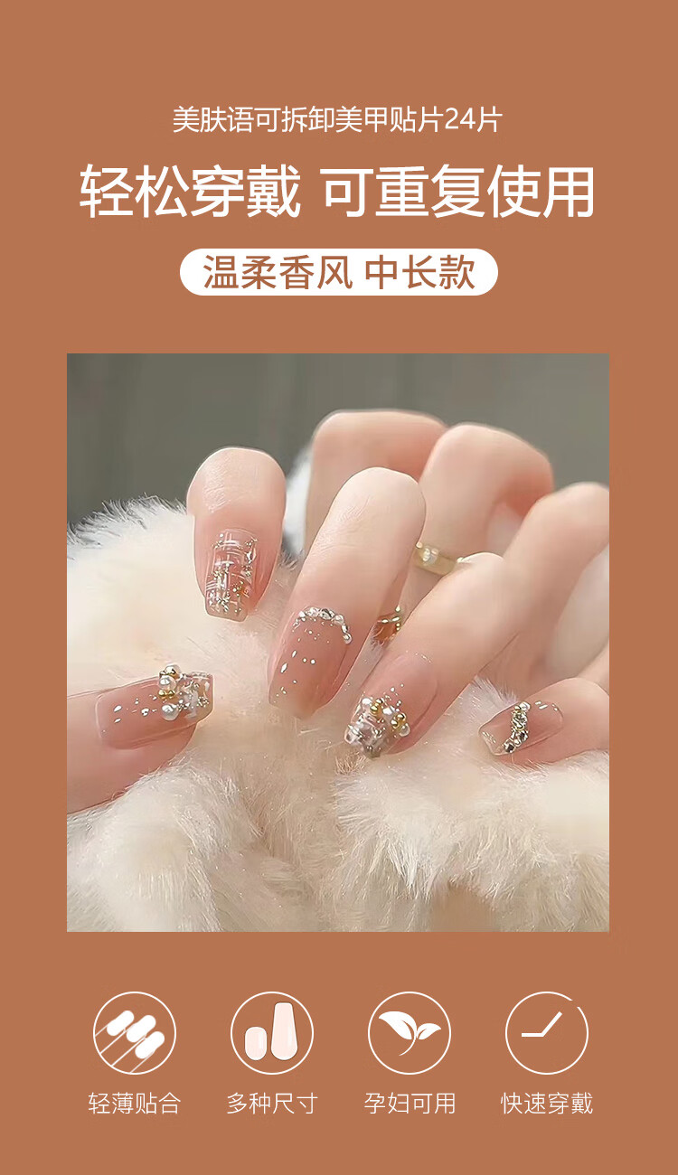 美肤语美甲贴片穿戴甲(温柔小香风)中长款假指甲果冻胶可拆带工具MF8245
