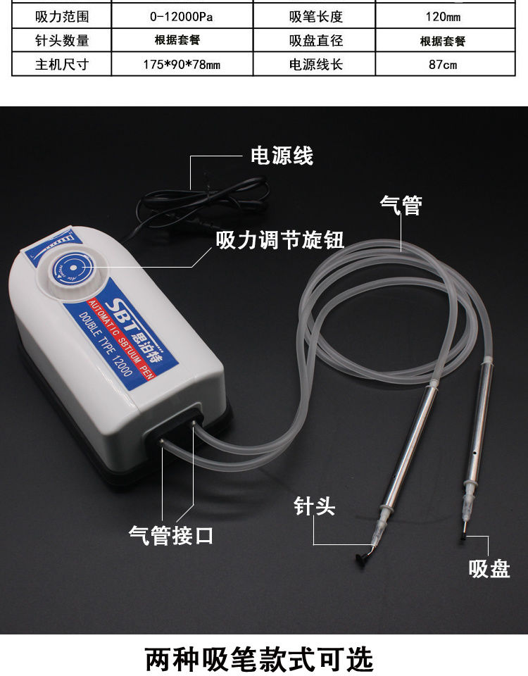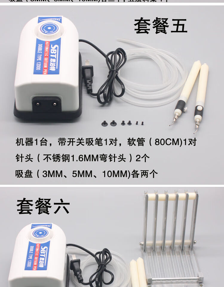 SMT手工贴片机 电动吸笔 真空吸笔 IC吸笔 五槽喂料架 强力型 强力版 2个吸盘3个针头