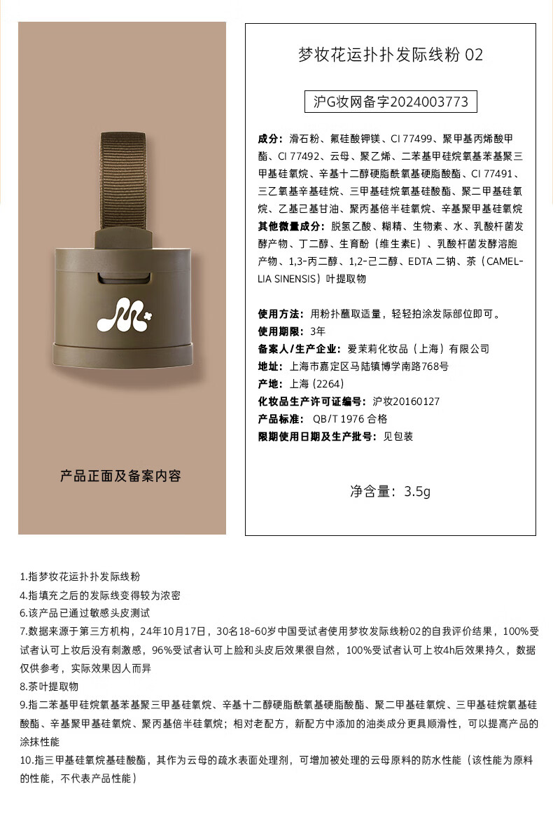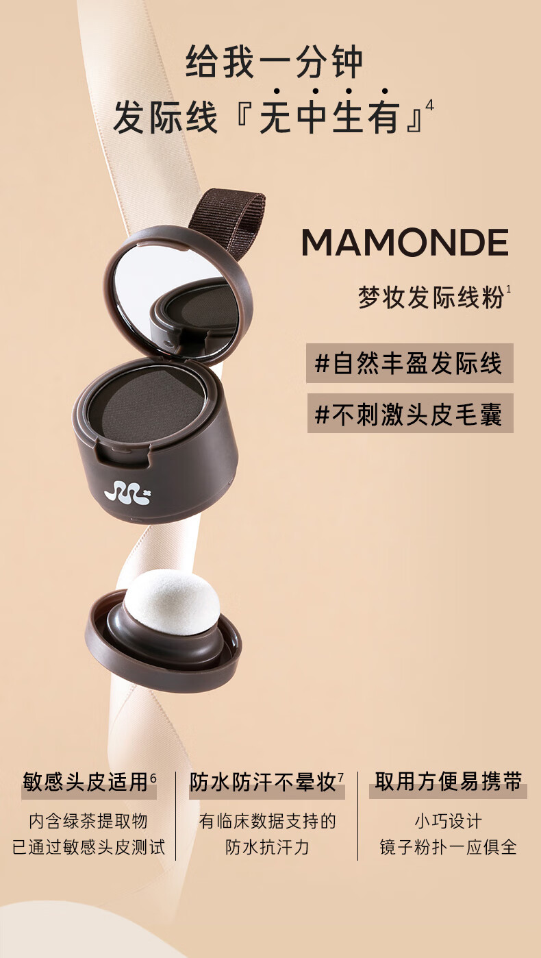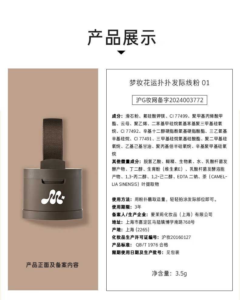 梦妆花运扑扑发际线粉01棕黑色3.5g散粉修饰补发粉发缝粉男防水防汗
