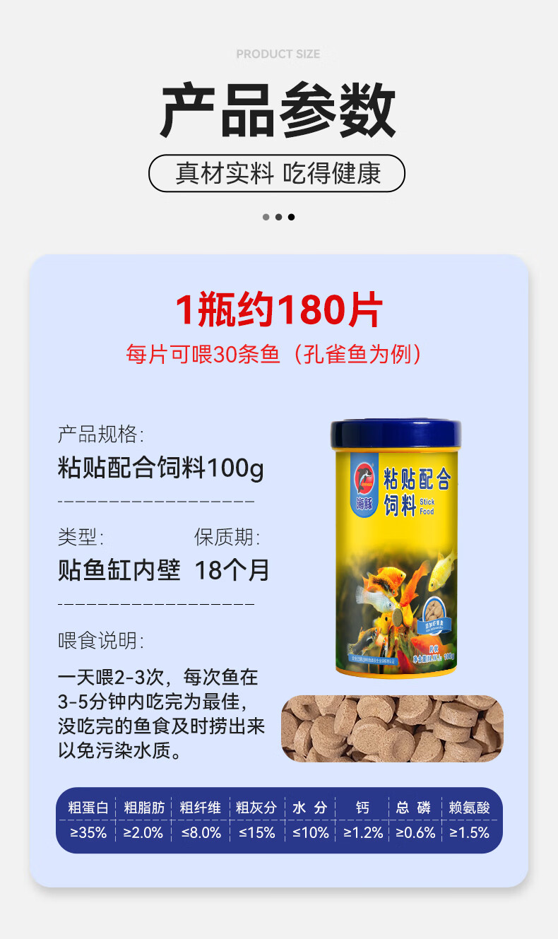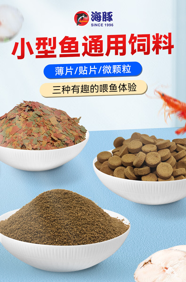 海豚贴片鱼食100g小型鱼饲料 灯科孔雀鱼黑尾大勾通用鱼粮 热带鱼饲料