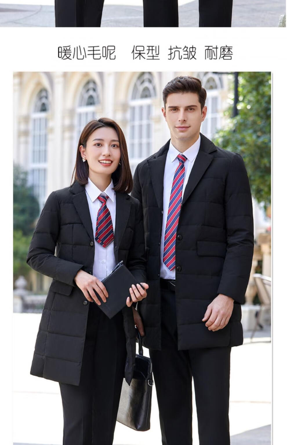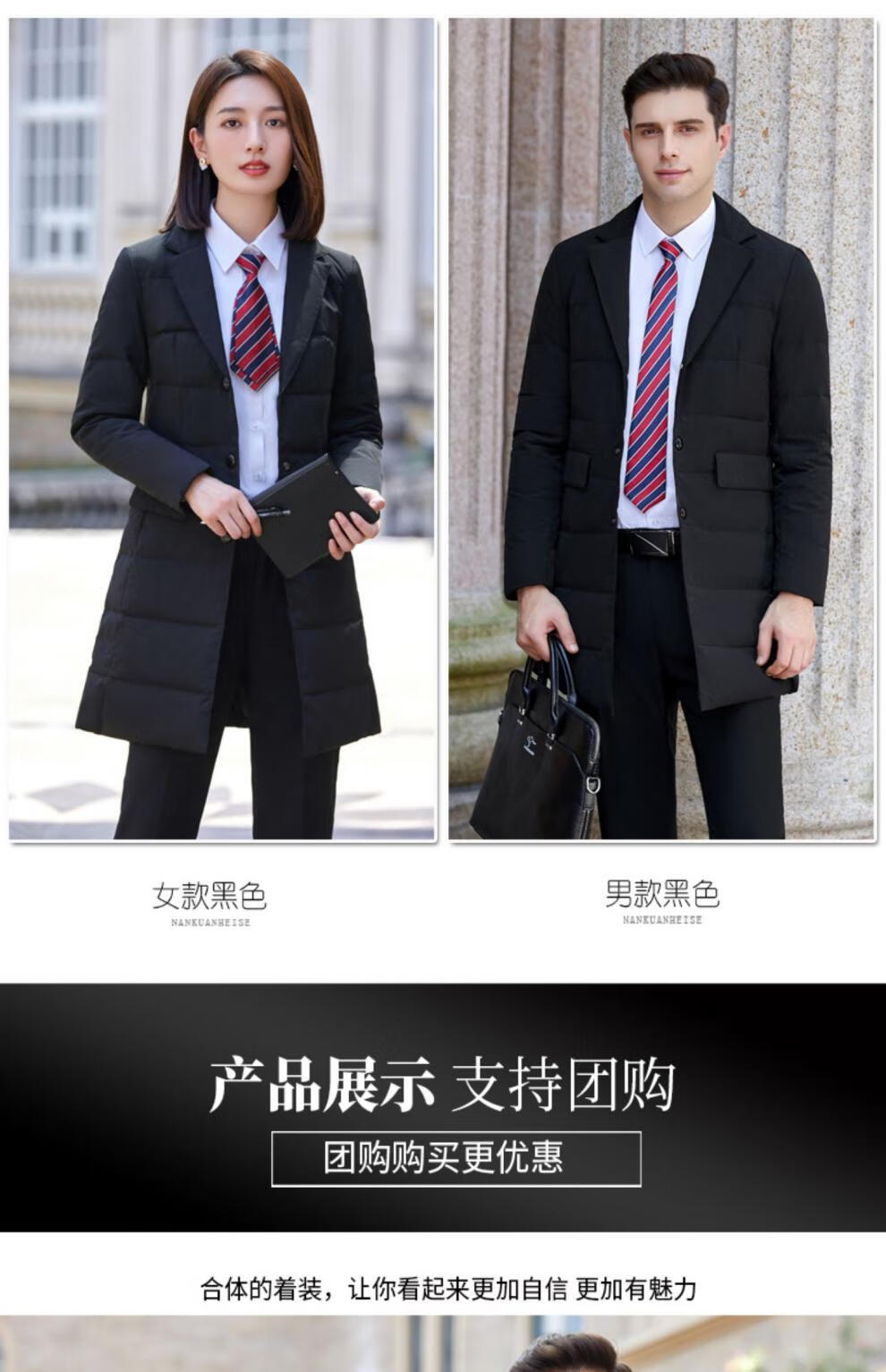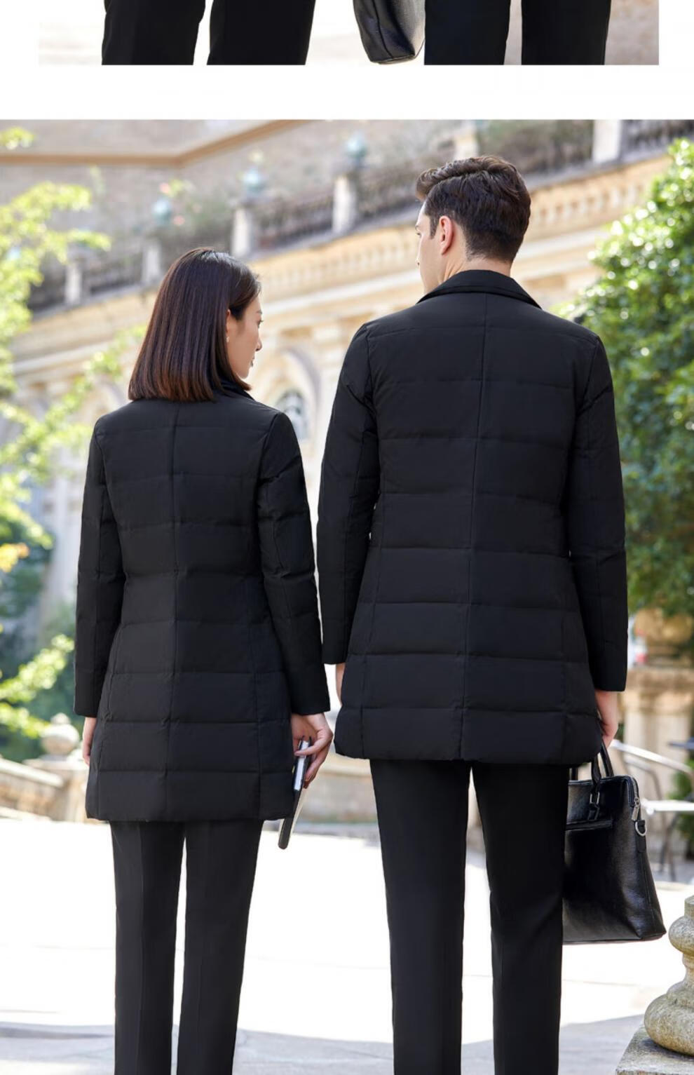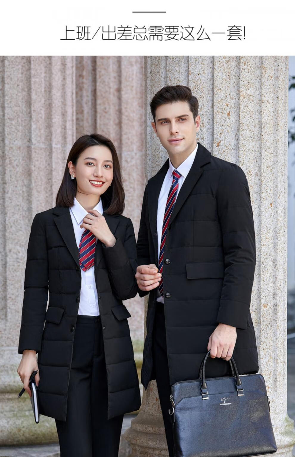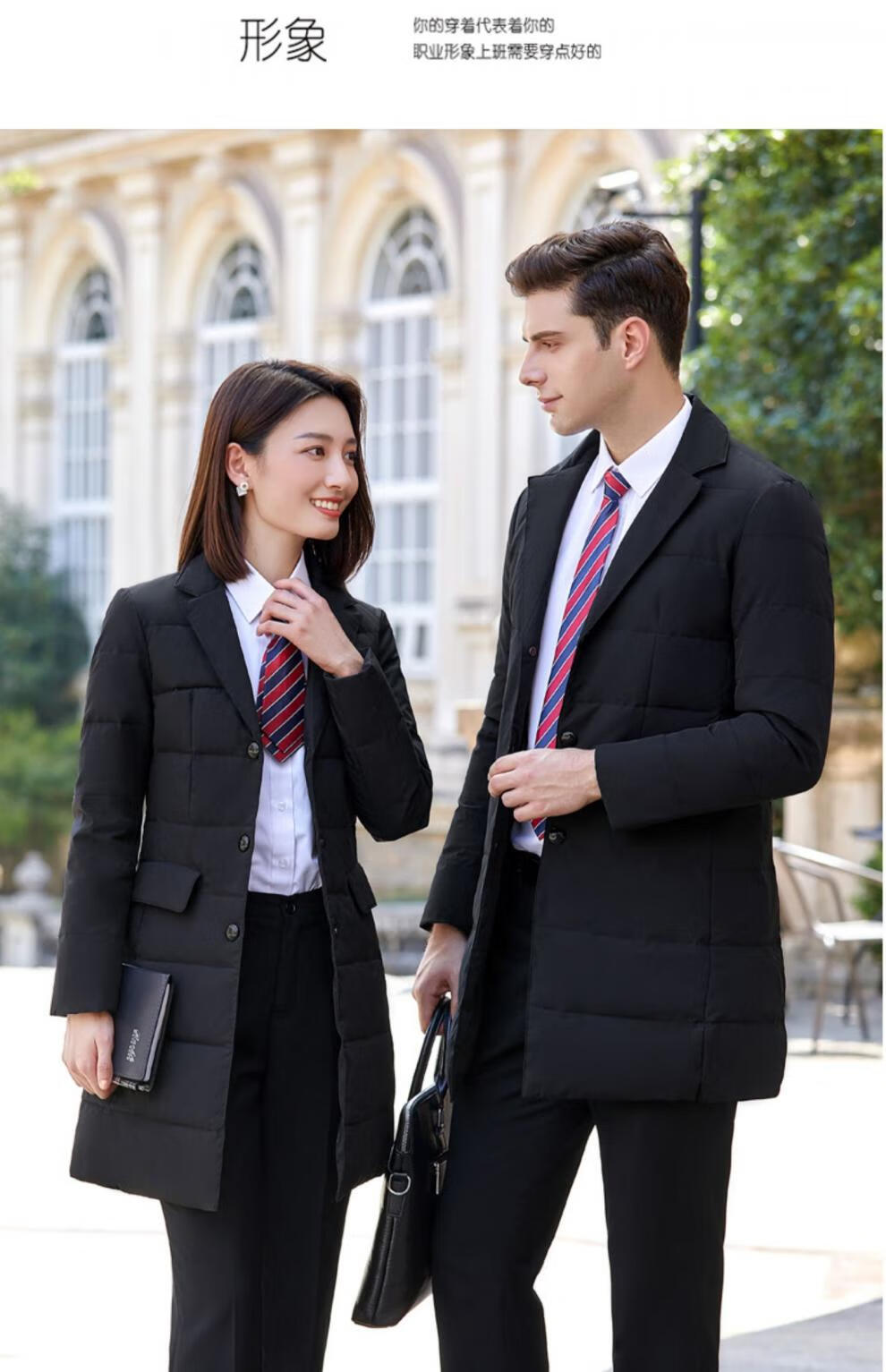 恒源祥90西装工装羽绒服外套女冬季中长款黑色白鸭绒大衣职业装工作服品 品牌HY2229F男款黑色羽绒服(中长款,主图款) S