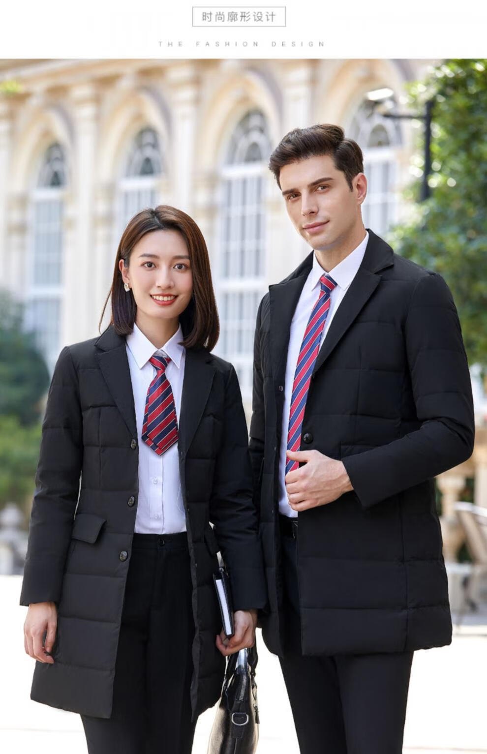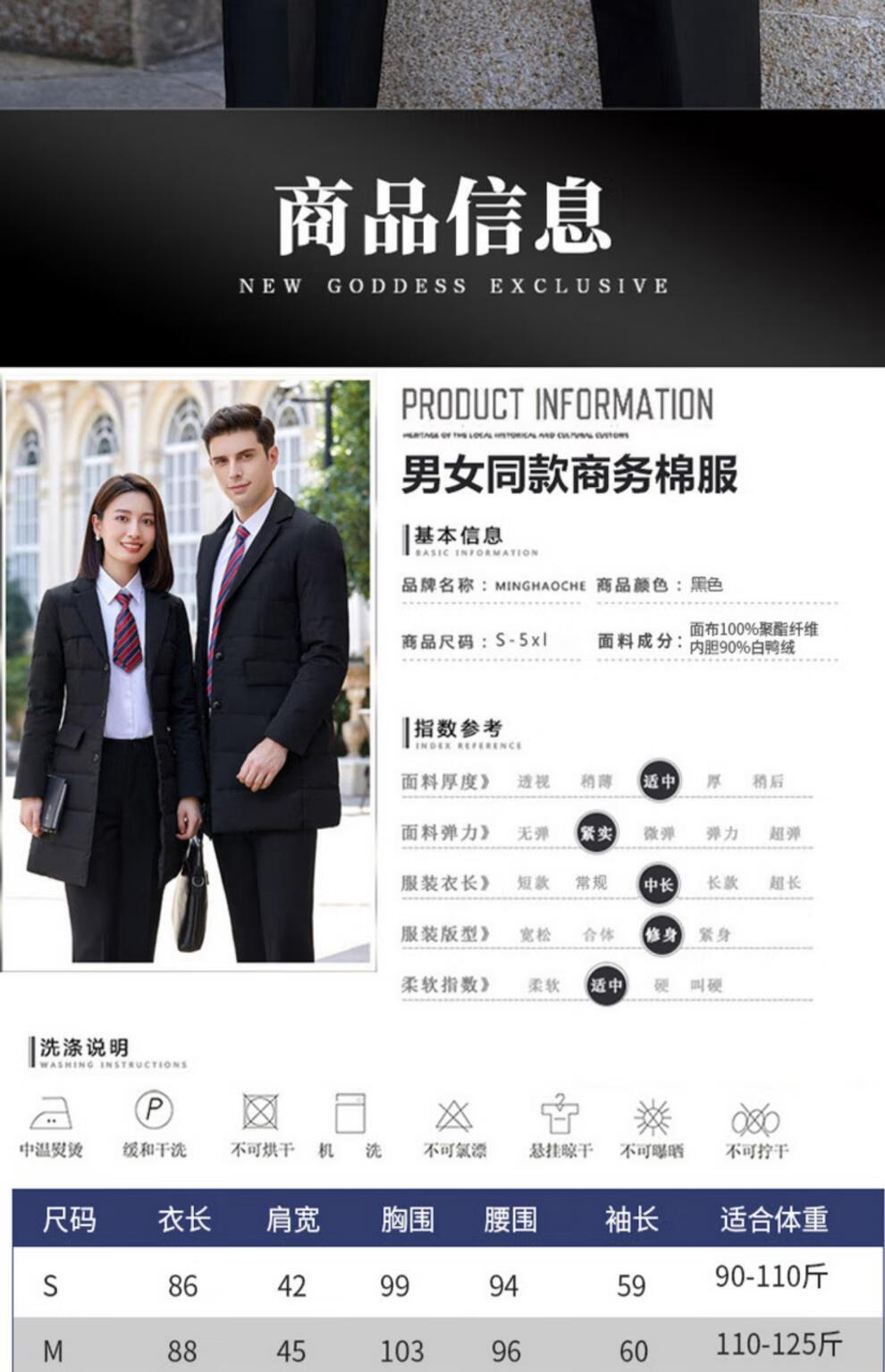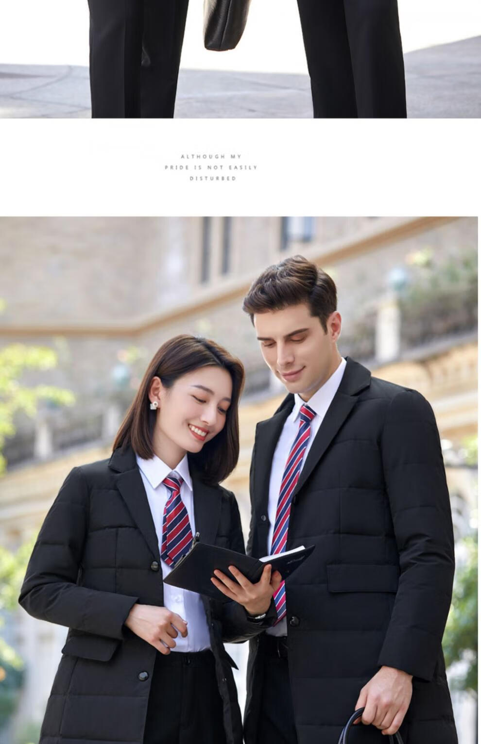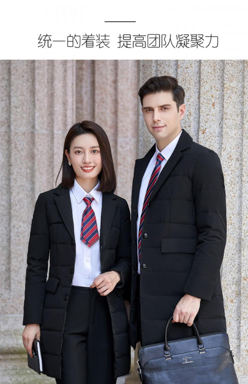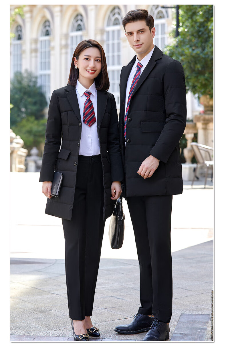 恒源祥90西装工装羽绒服外套女冬季中长款黑色白鸭绒大衣职业装工作服品 品牌HY2229F男款黑色羽绒服(中长款,主图款) S