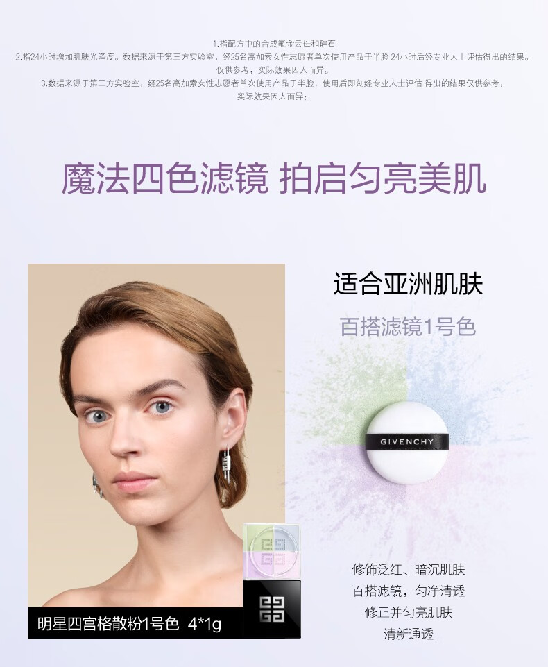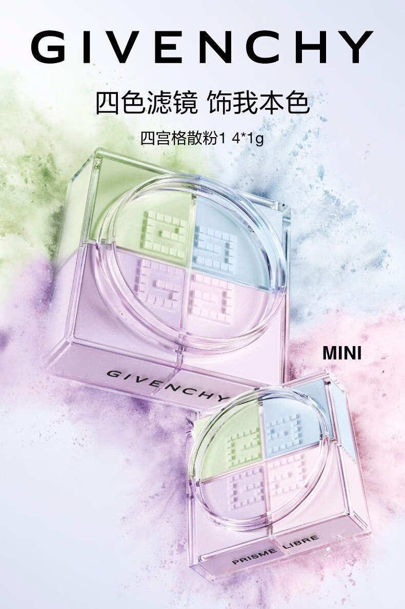 纪梵希(Givenchy)【MINI便携版4g】四宫格散粉1号小规格版随身便携定妆蜜粉哑光