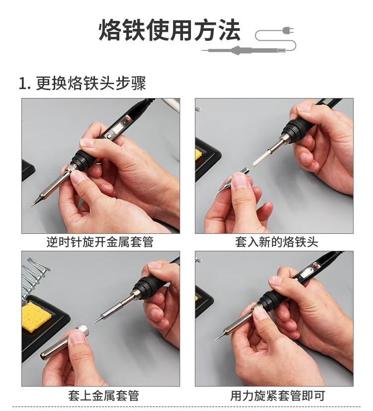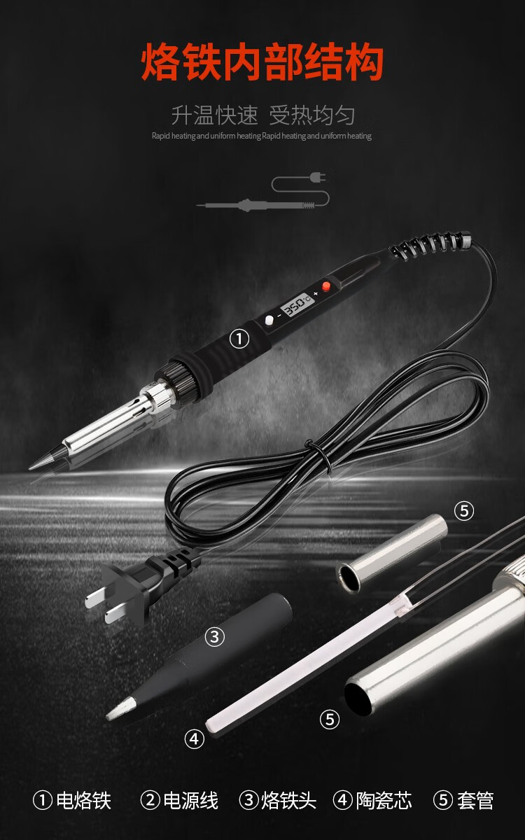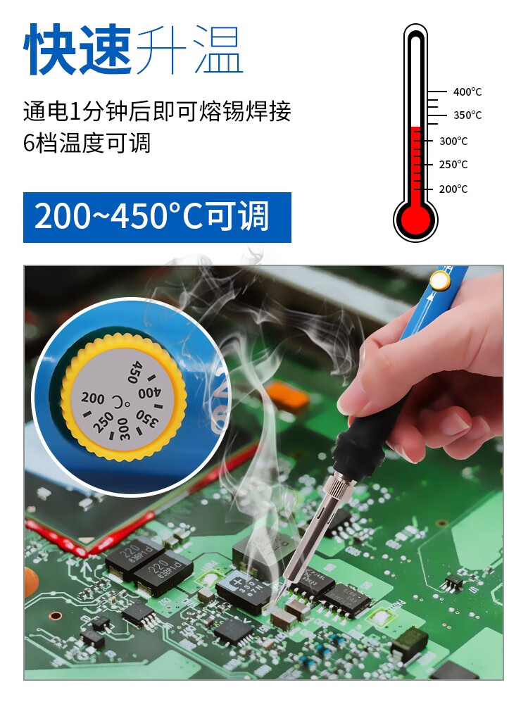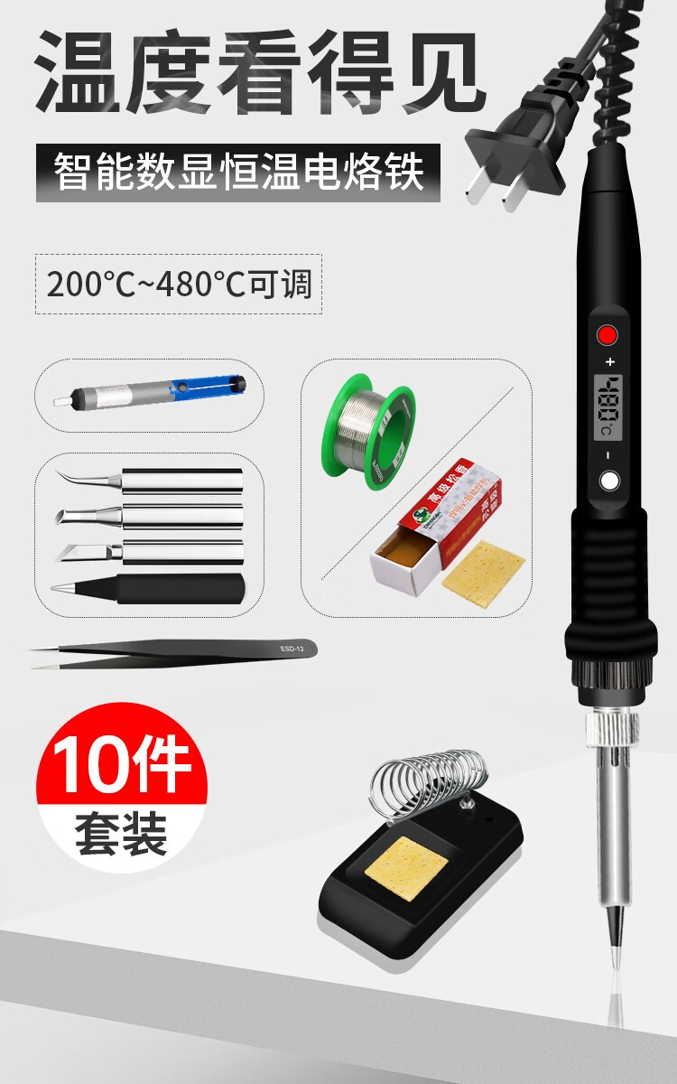 CNZGGQ可调温恒温电烙铁套装60W内热式家用电子焊接维修工具锡丝烙铁头 60w电烙铁实惠4件套