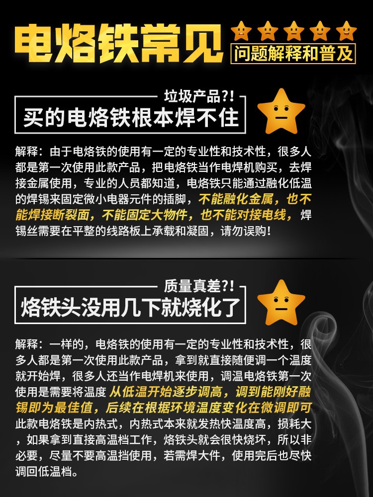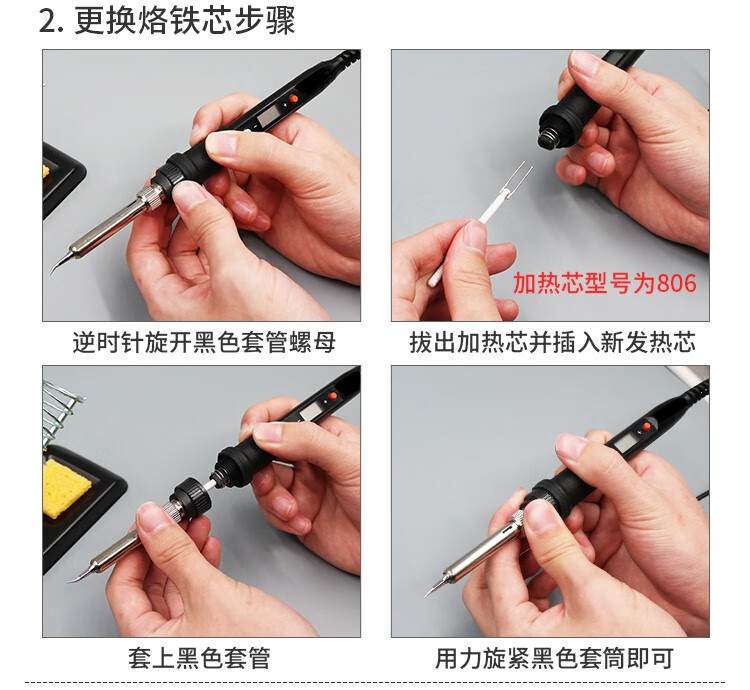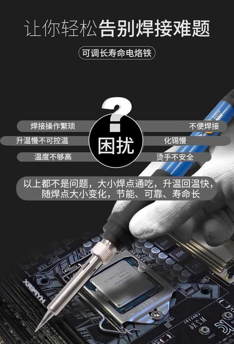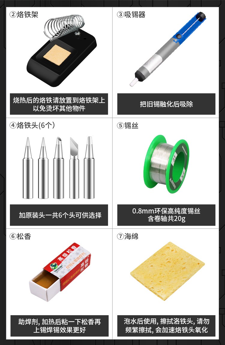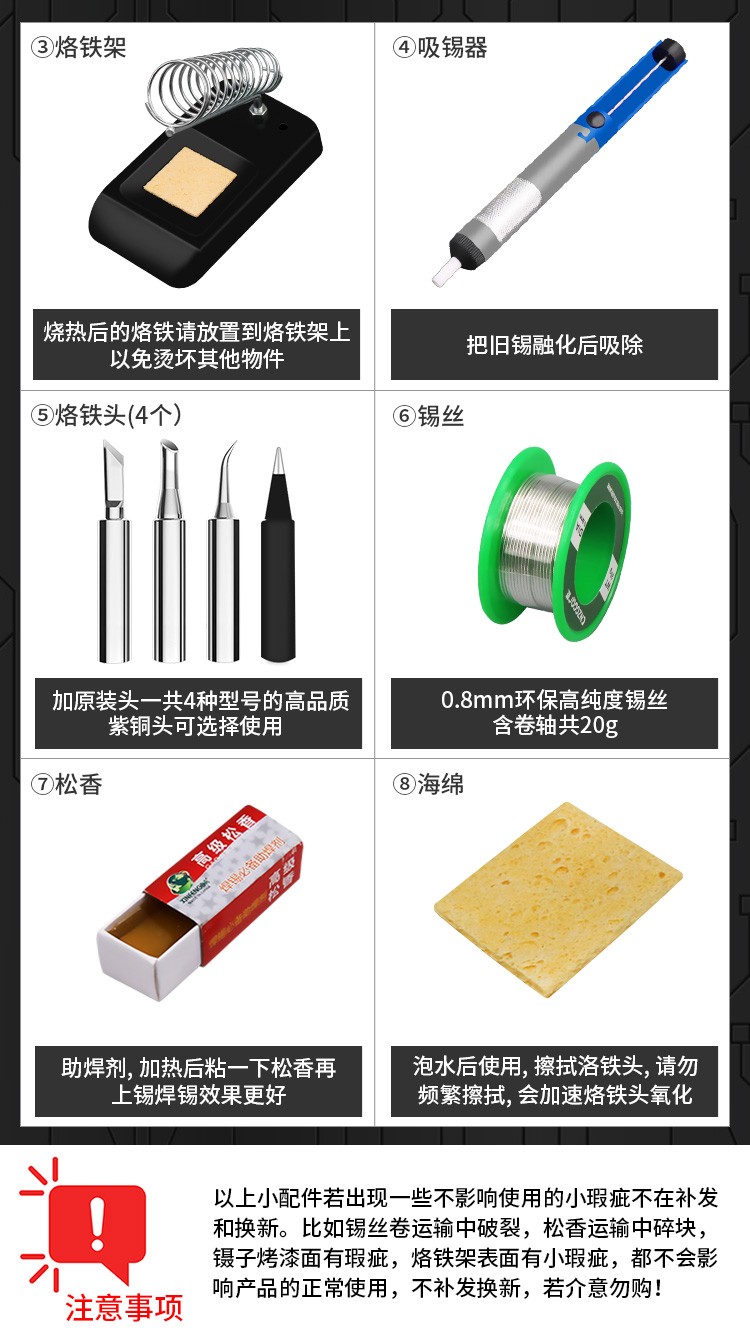 CNZGGQ可调温恒温电烙铁套装60W内热式家用电子焊接维修工具锡丝烙铁头 60w电烙铁实惠4件套