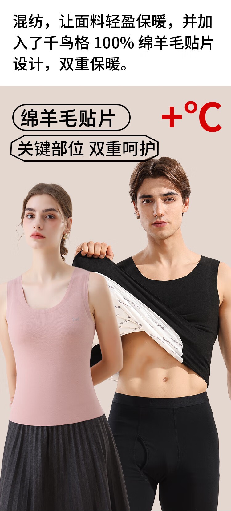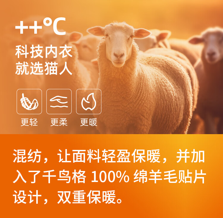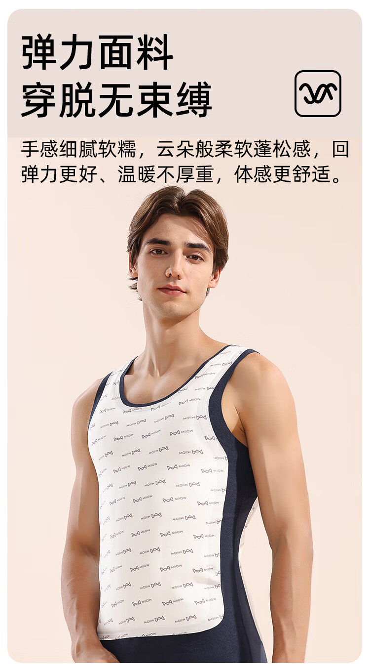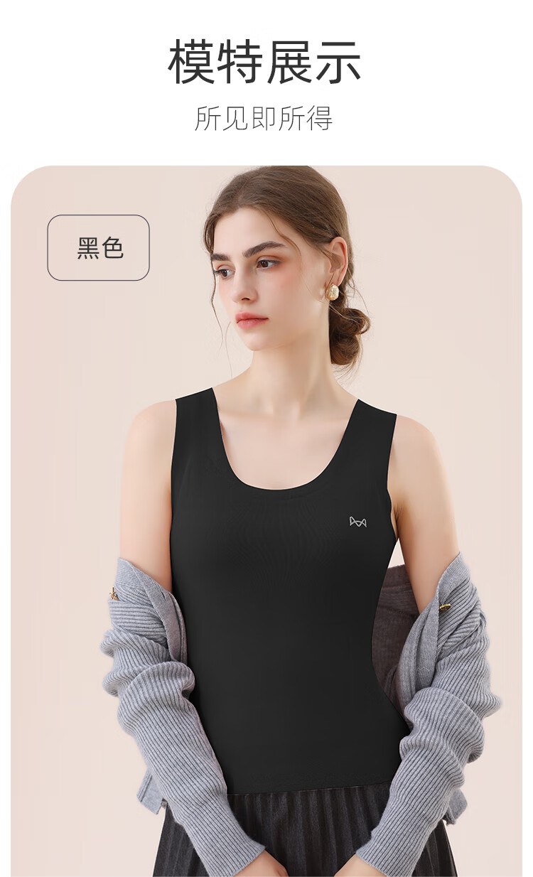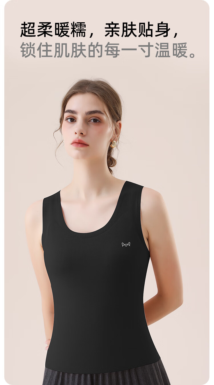 猫人100%羊毛男士保暖背心男加绒加厚内衣羊毛打底衫坎肩马甲黑色XL