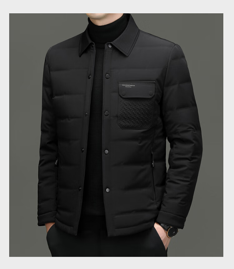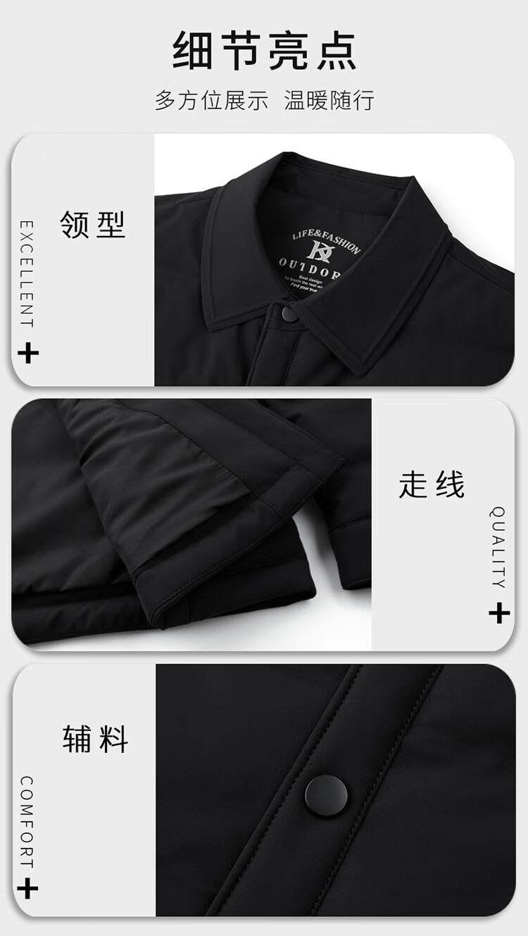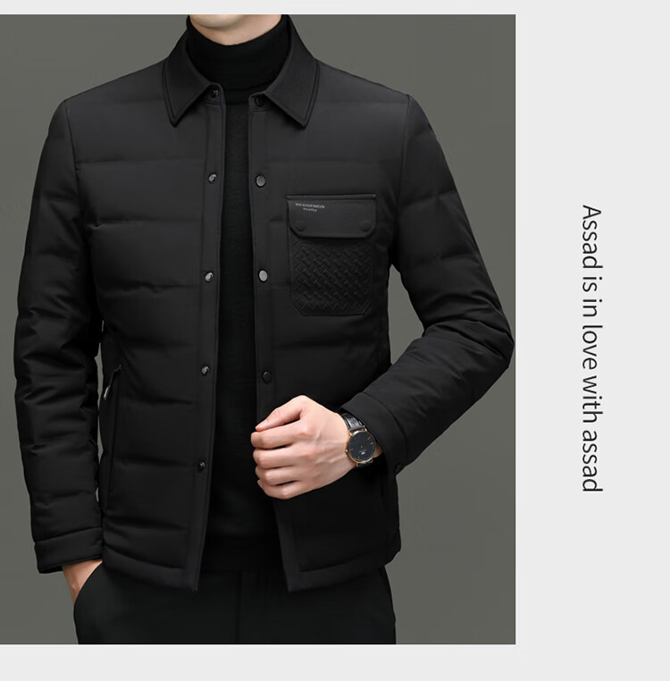 ARMANI EXCHANGE阿玛尼男士羽绒服冬季轻薄短款翻领夹克加厚保暖外套潮 黑色 XL 180码(建议体重135-150斤)
