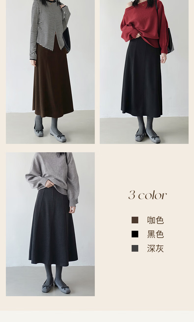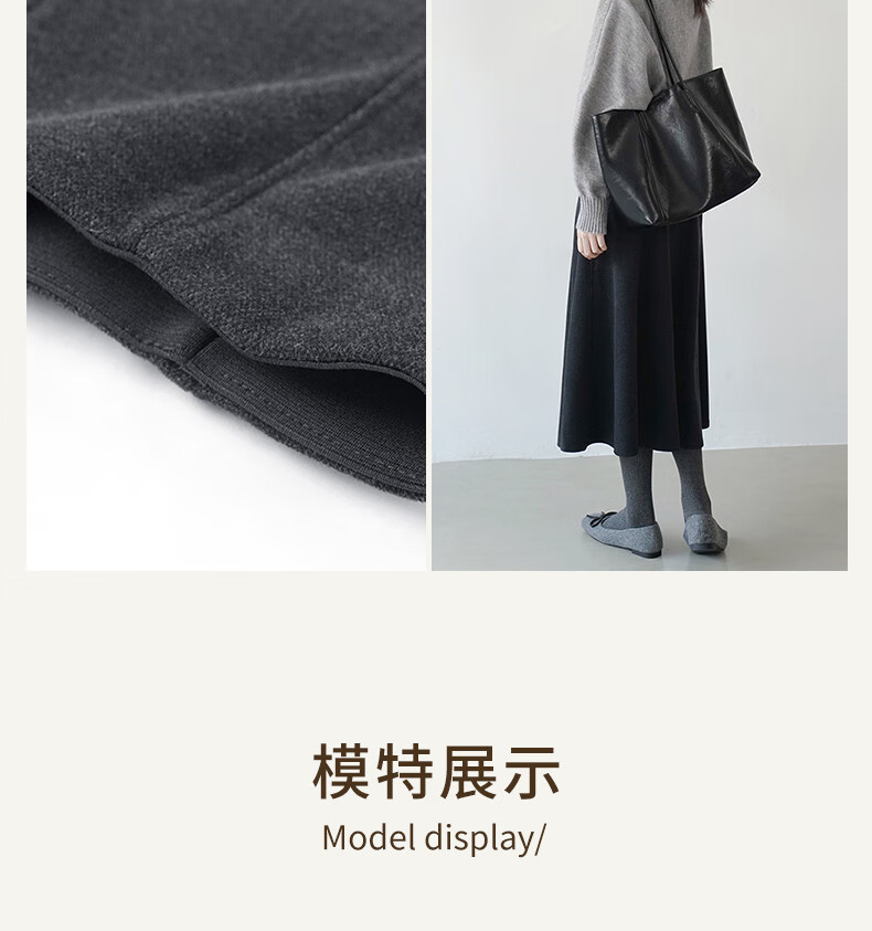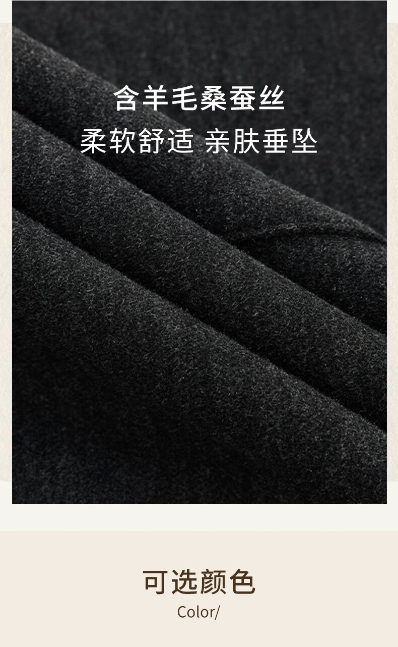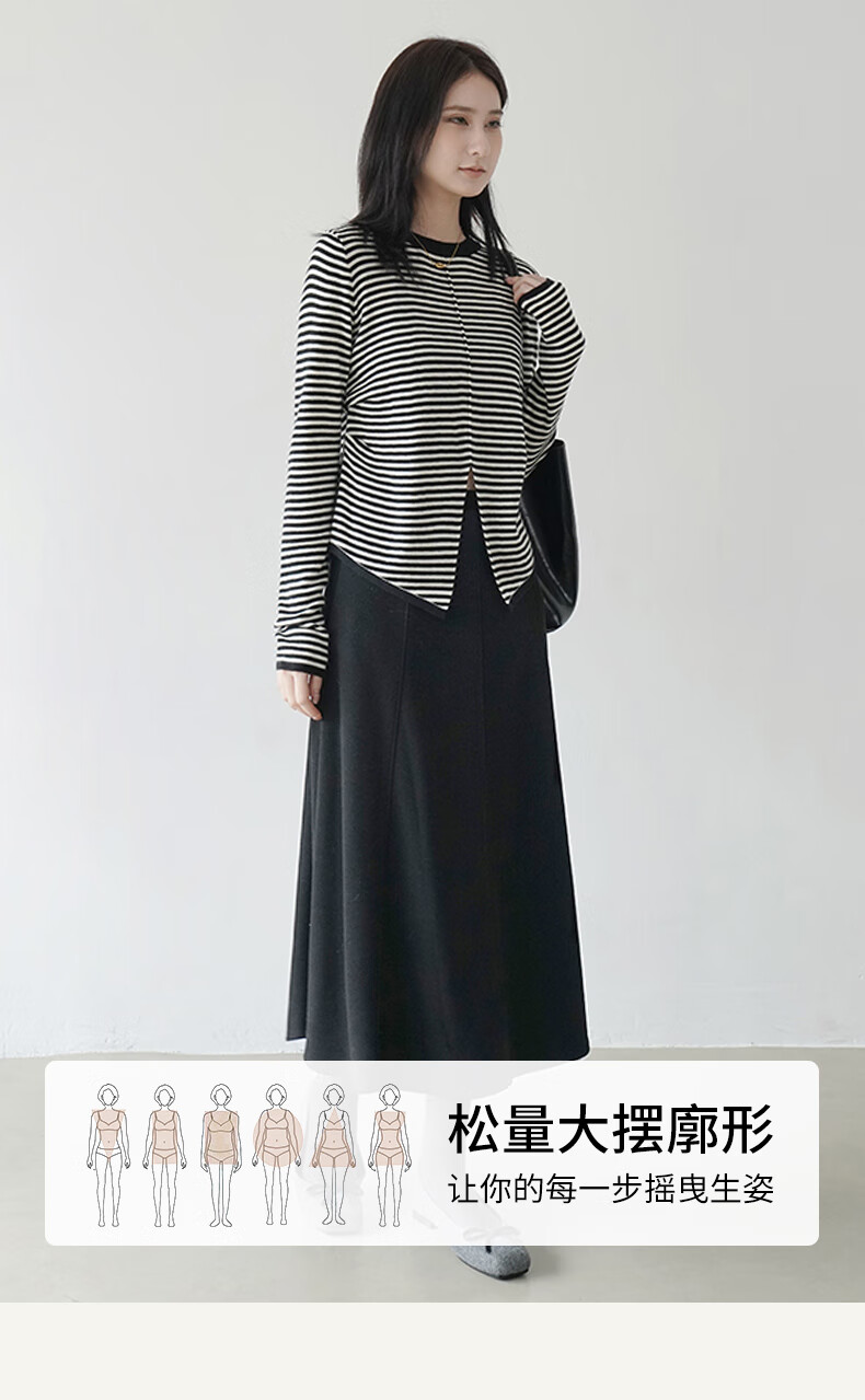 帛芮桑蚕丝加绒毛呢女士半身裙2025年秋冬季羊毛厚款通勤风淑女风长裙