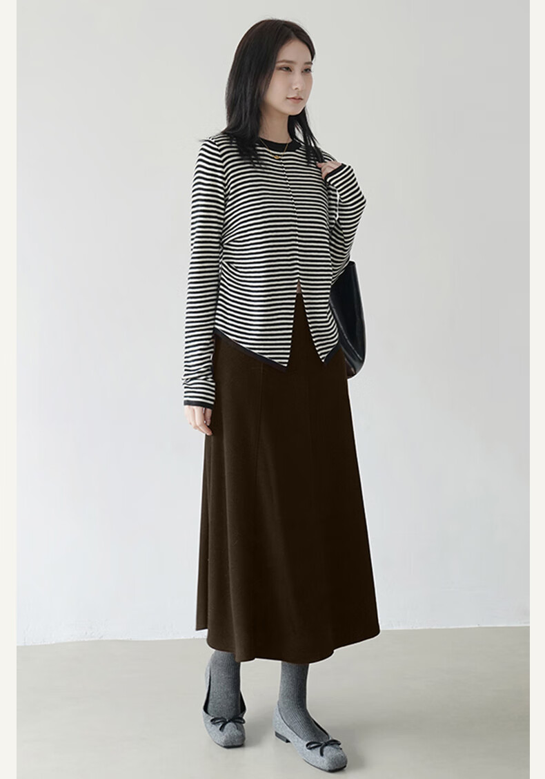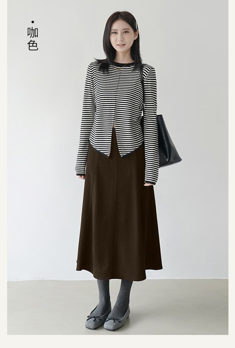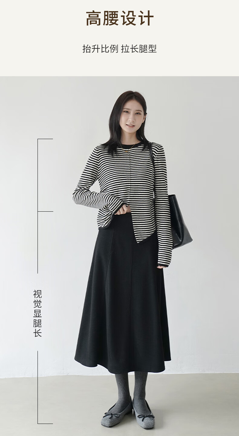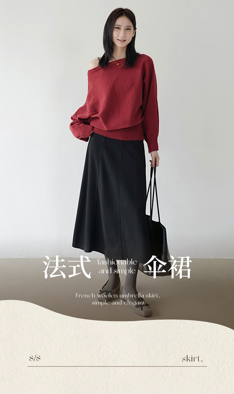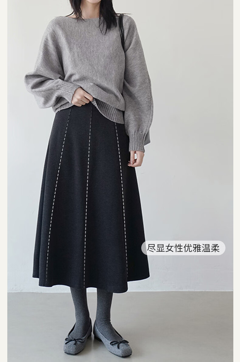 帛芮桑蚕丝加绒毛呢女士半身裙2025年秋冬季羊毛厚款通勤风淑女风长裙