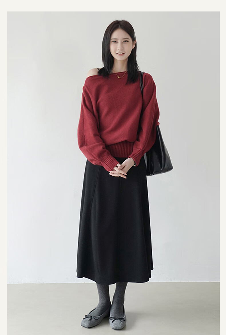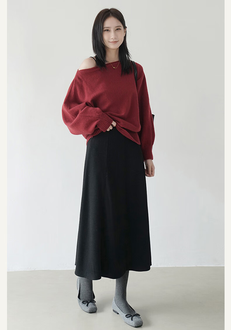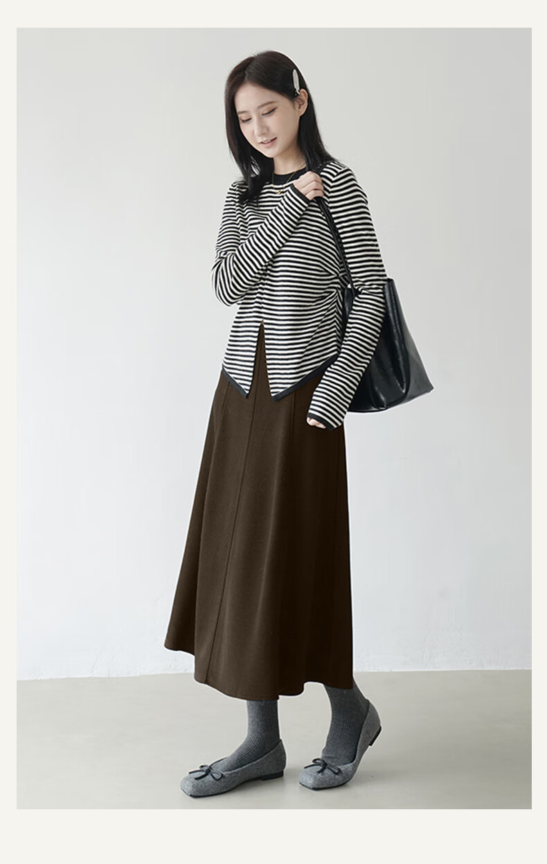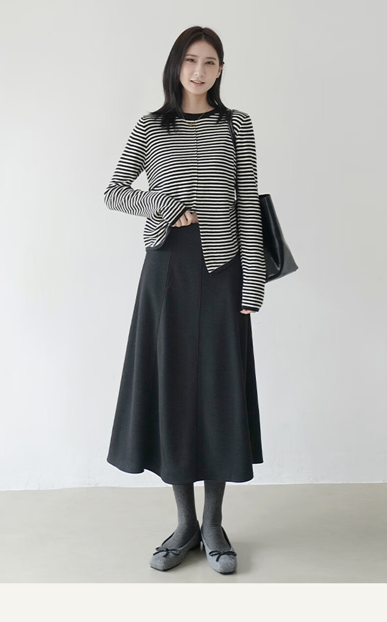 帛芮桑蚕丝加绒毛呢女士半身裙2025年秋冬季羊毛厚款通勤风淑女风长裙