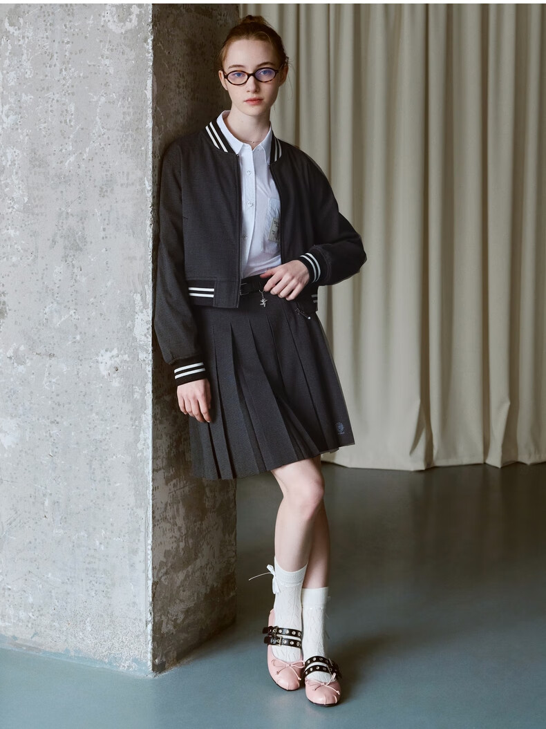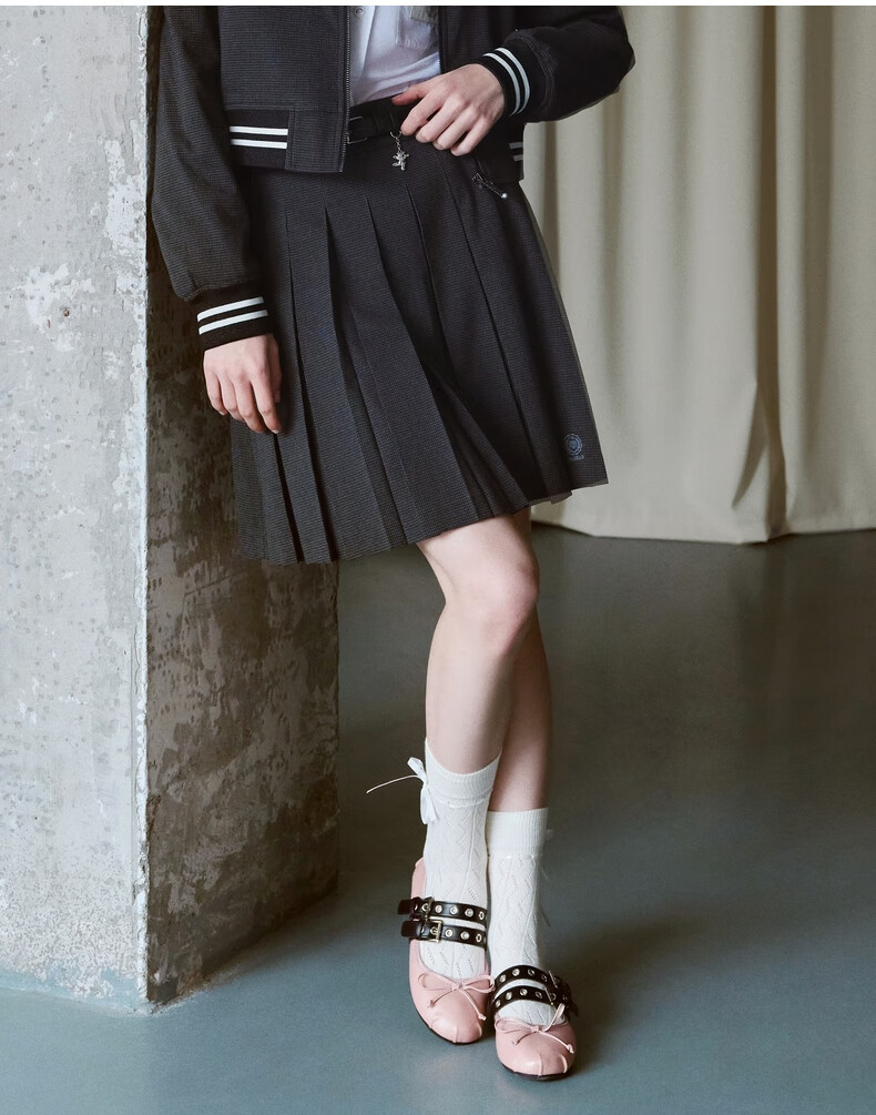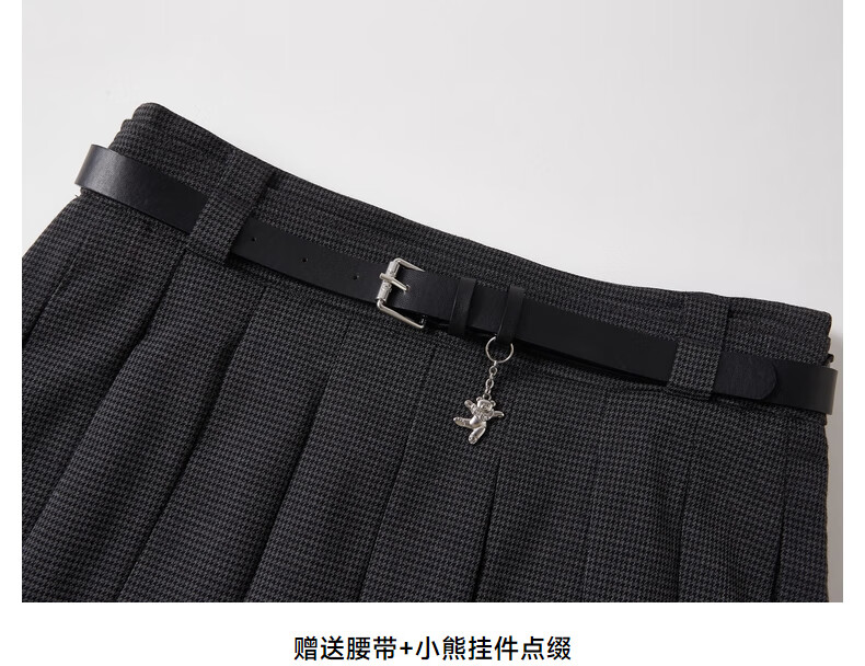 Teenie Weenie小熊女装秋季学院风百褶半身裙简约休闲短裙 黑色 XS (155)