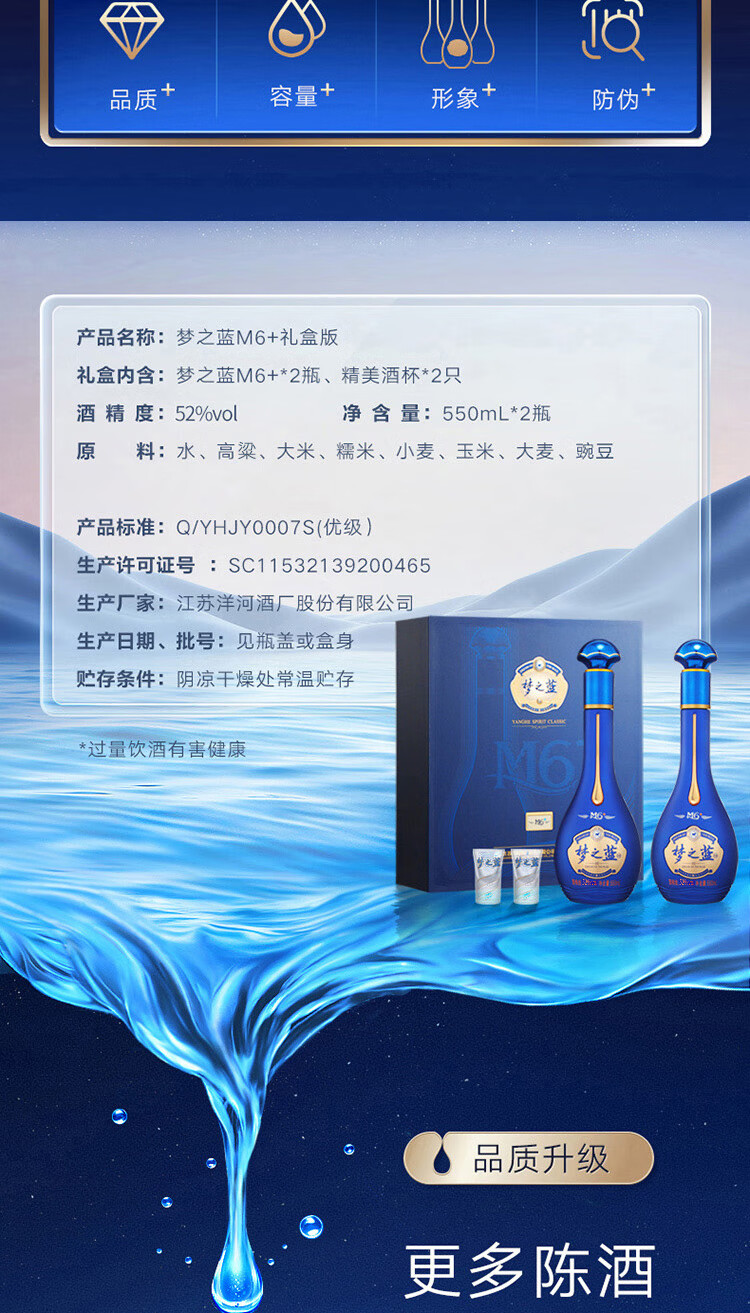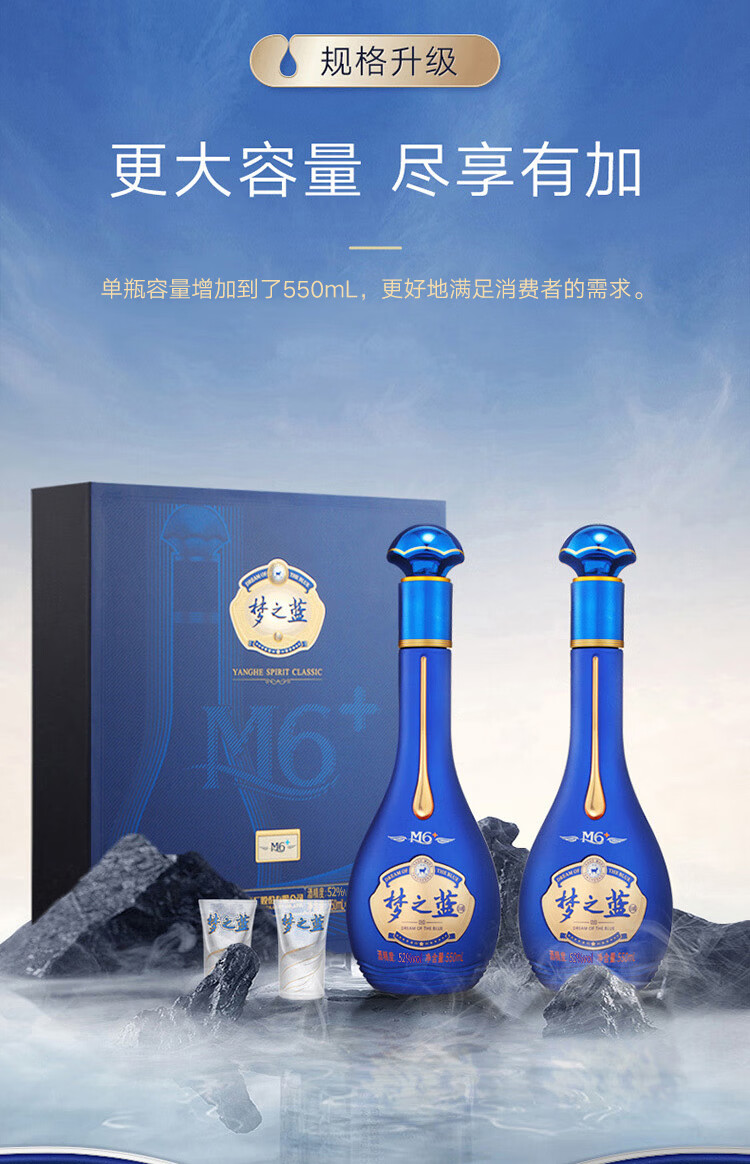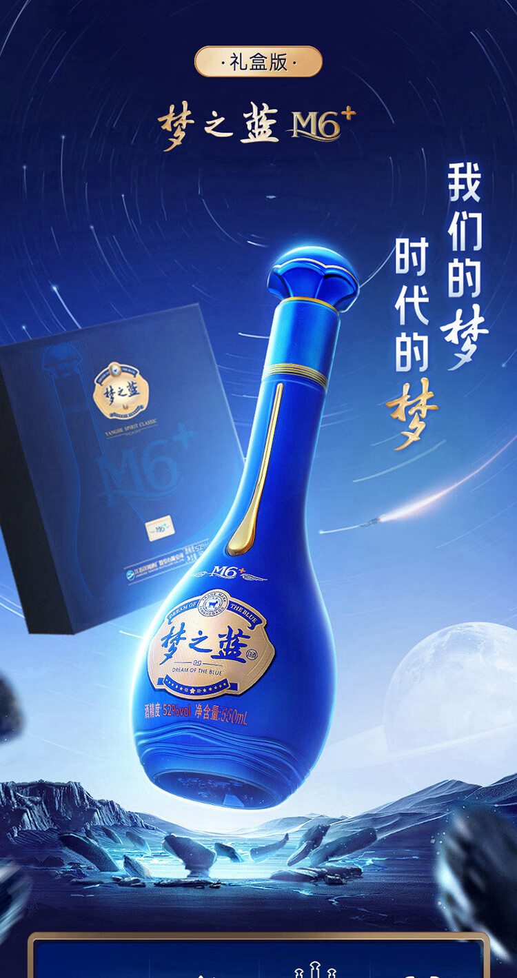 洋河 梦之蓝M6+ 52度 550ml*2瓶 礼盒装 绵柔浓香型白酒