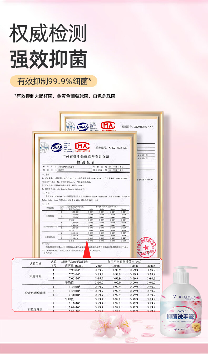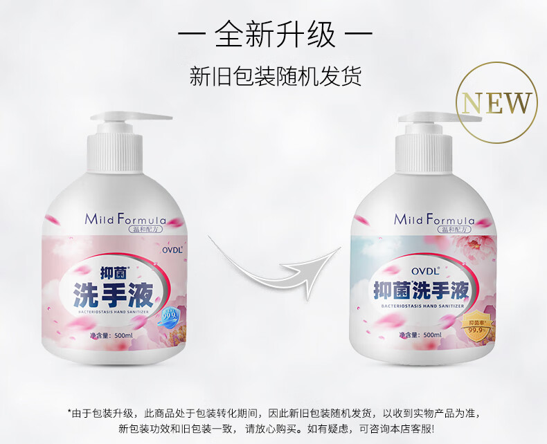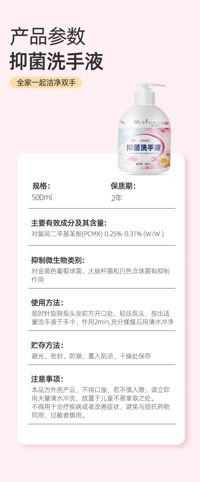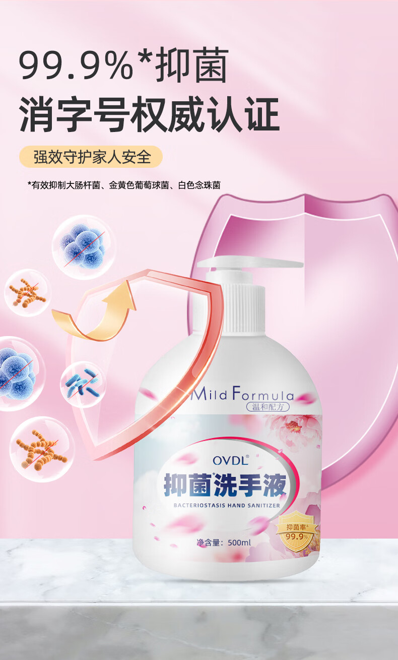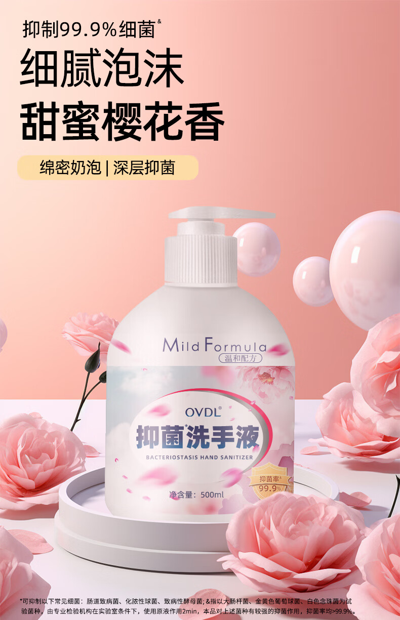 OVDL抑菌洗手液500ml 温和洁净去污泡沫丰富易冲洗樱花香成人家用通用