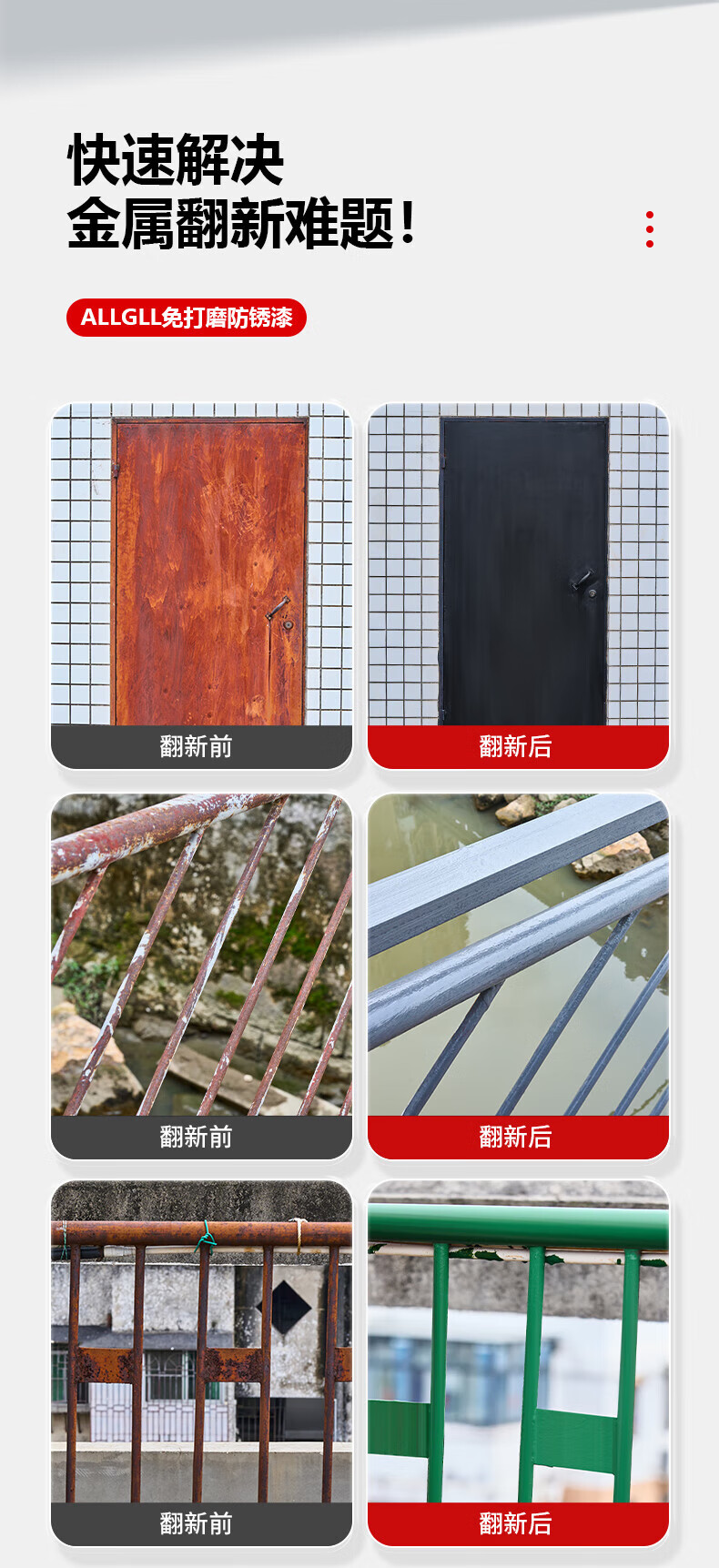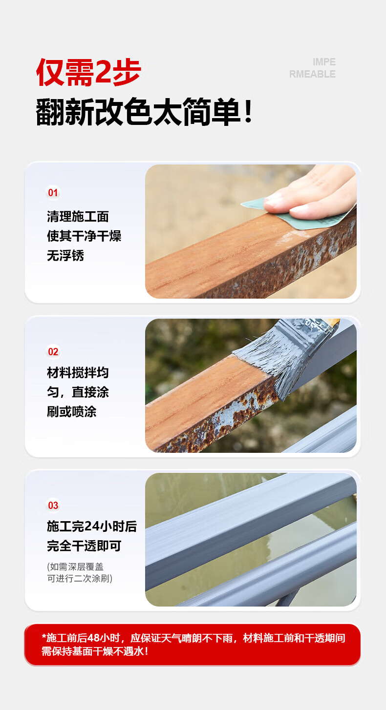 铁锈转化剂防锈漆金属防腐灰色水性油漆底漆彩钢瓦翻新免除锈打磨 免打磨【纯黑色】水性金属防锈漆 【500g】开盖即刷(送工具)