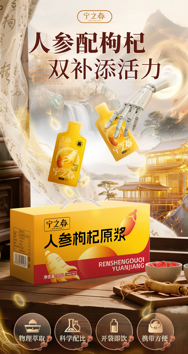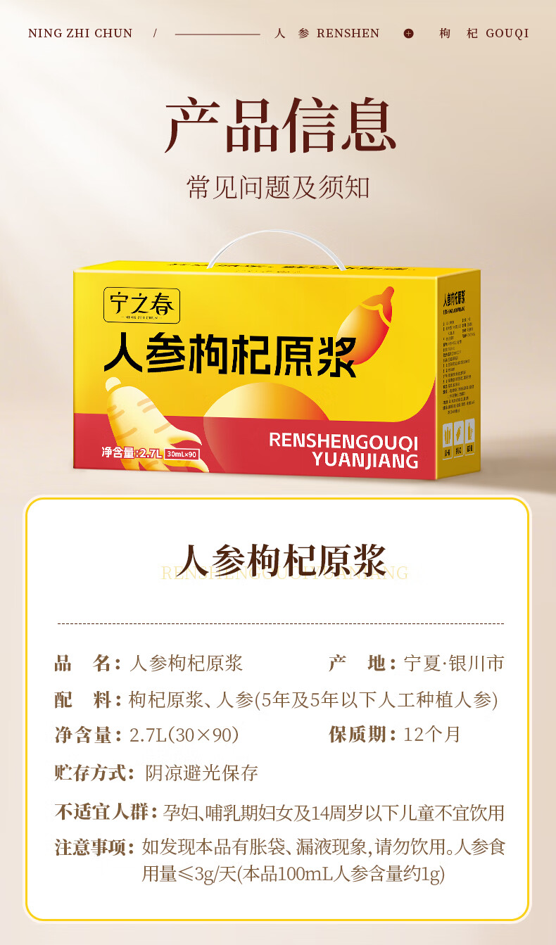 宁之春人参枸杞原浆2.7L礼品盒 5年人参搭配宁夏枸杞 年货节送长辈礼物