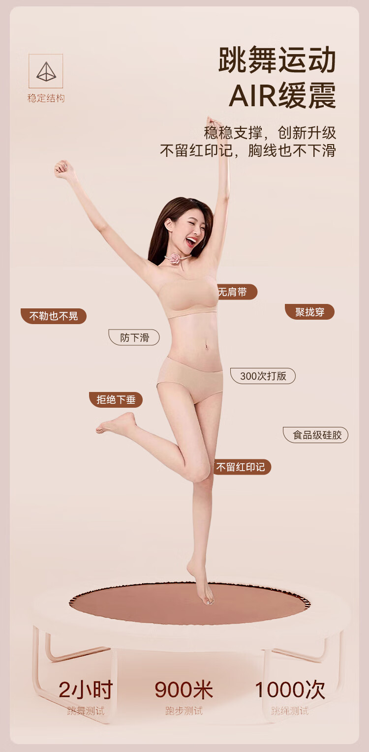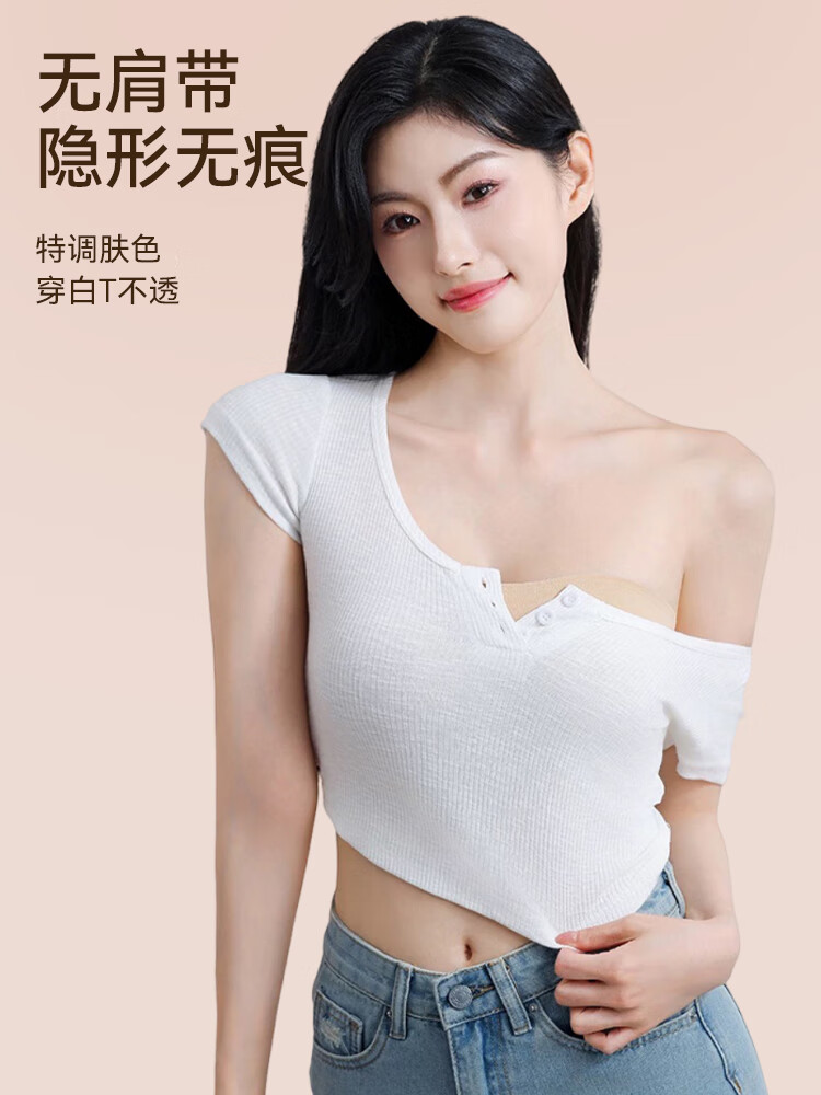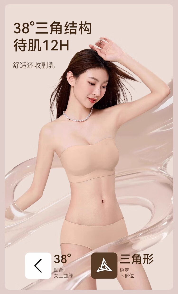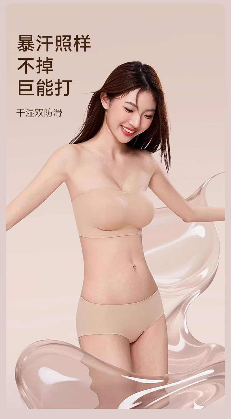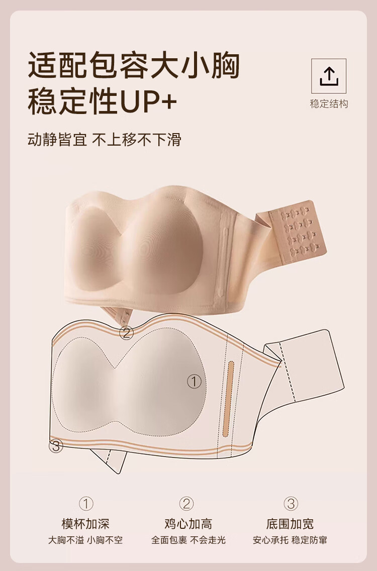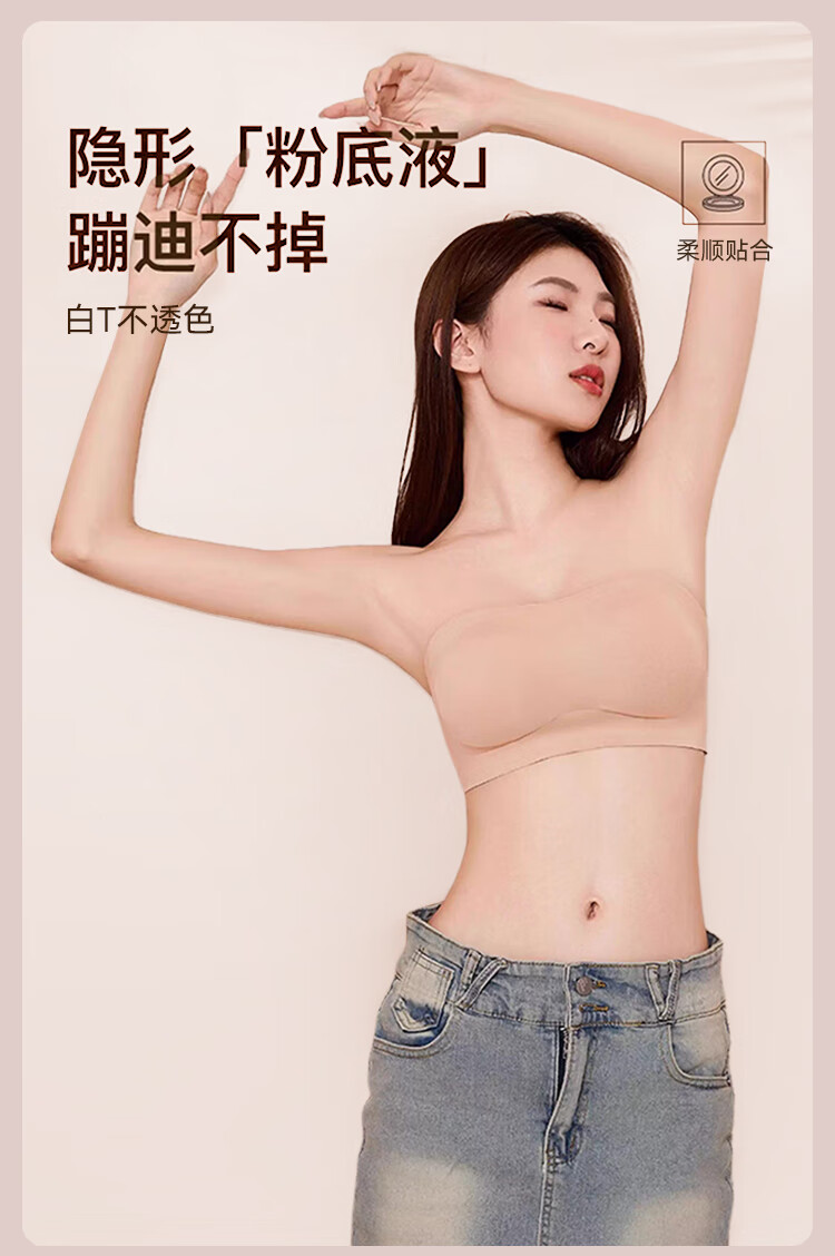 FitonTon无肩带抹胸防滑文胸粉底液隐形收副乳聚拢内衣女漫画胸裹胸胸罩