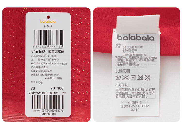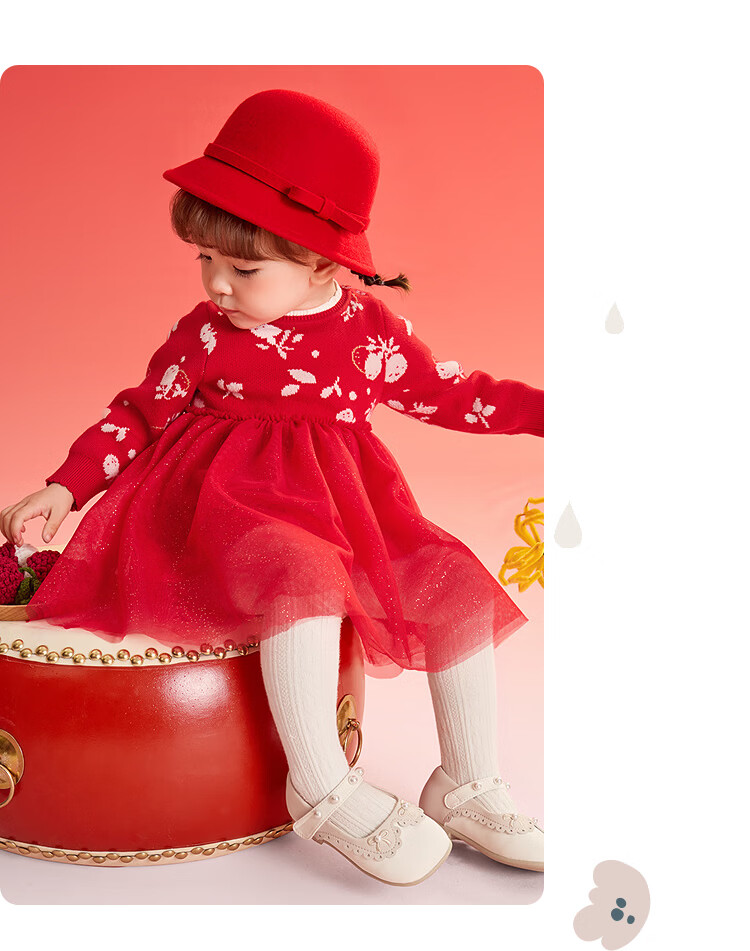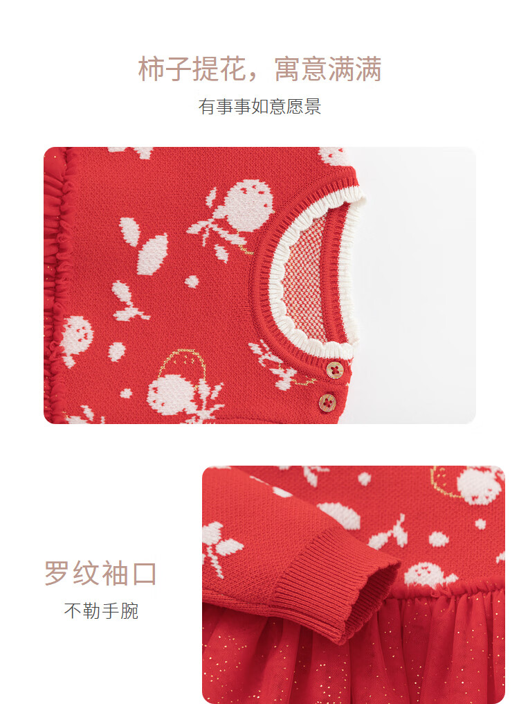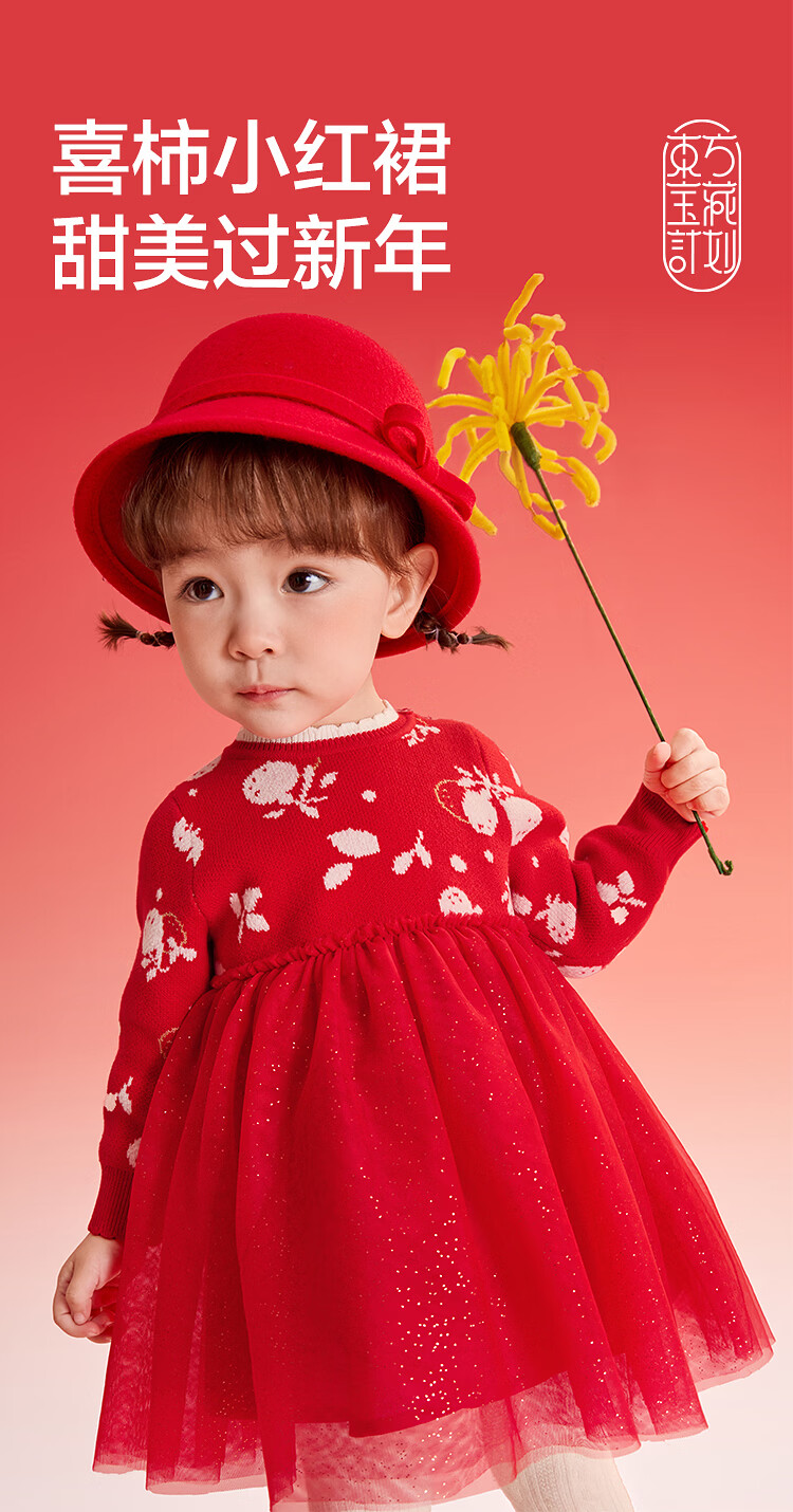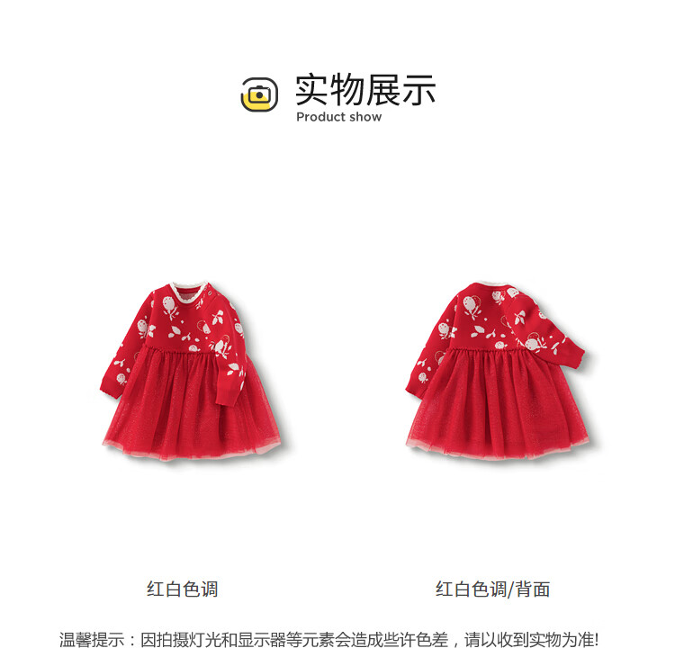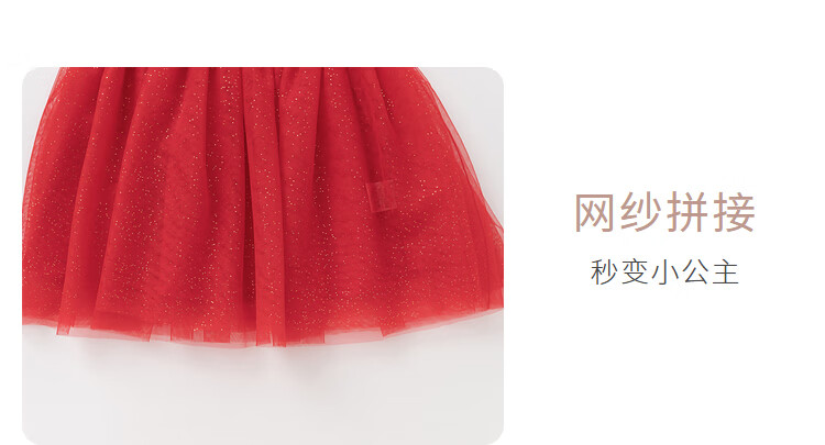 巴拉巴拉童装婴儿连衣裙宝宝公主裙网纱裙假两件拼接甜美喜庆年服 红白色调00461 100