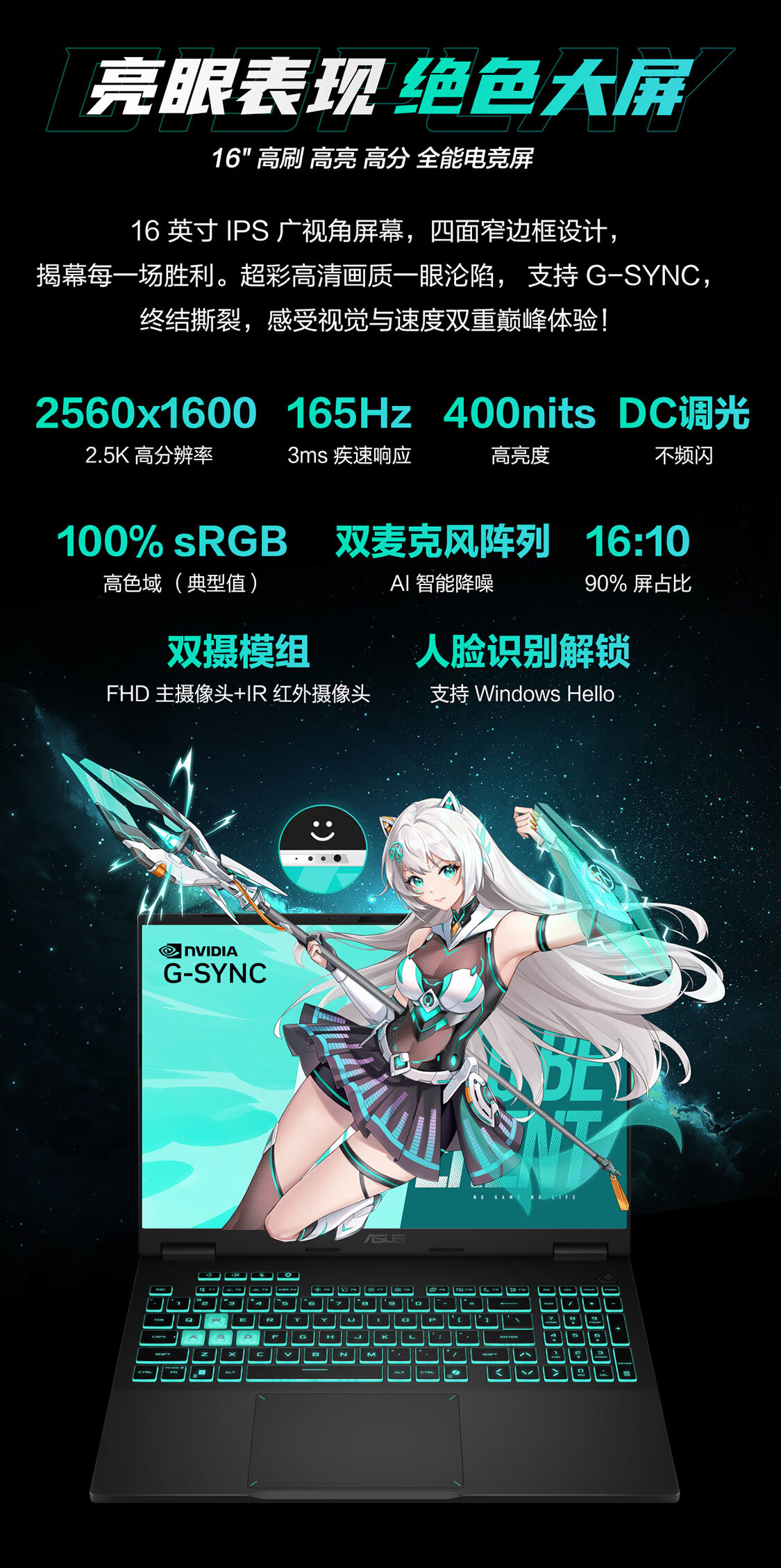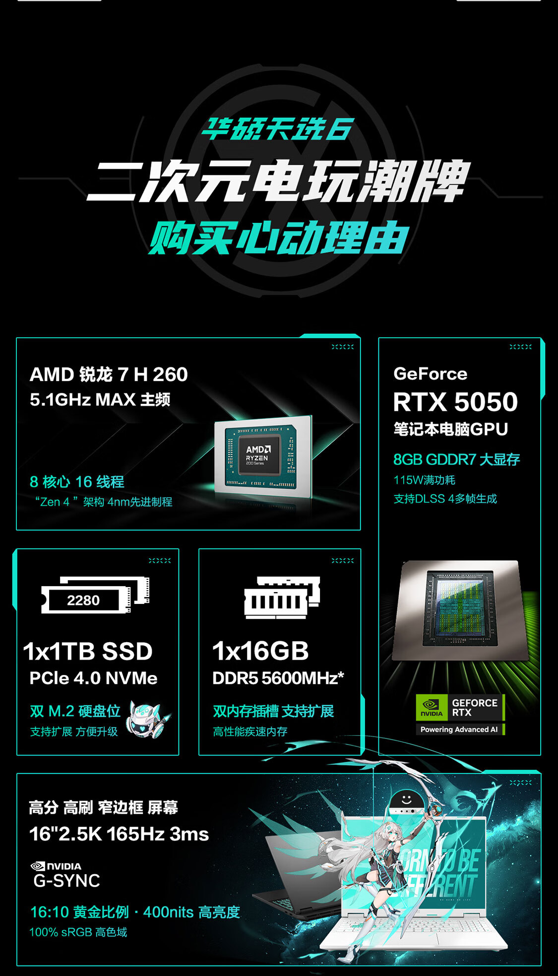 华硕天选6 国家补贴 16英寸游戏本 笔记本电脑(锐龙 7 H 260 16G 1T RTX5050 2.5K)青
