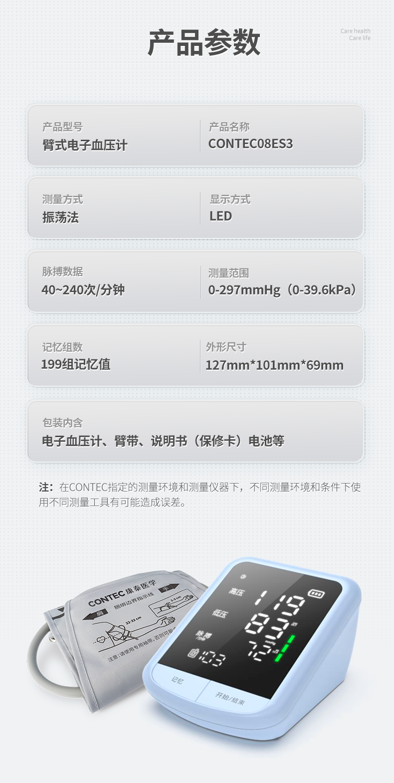 CONTEC康泰医学医用家用血压仪大屏成人老人臂式电子血压计CONTEC08ES3
