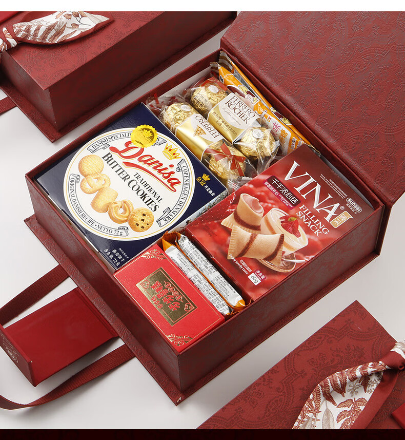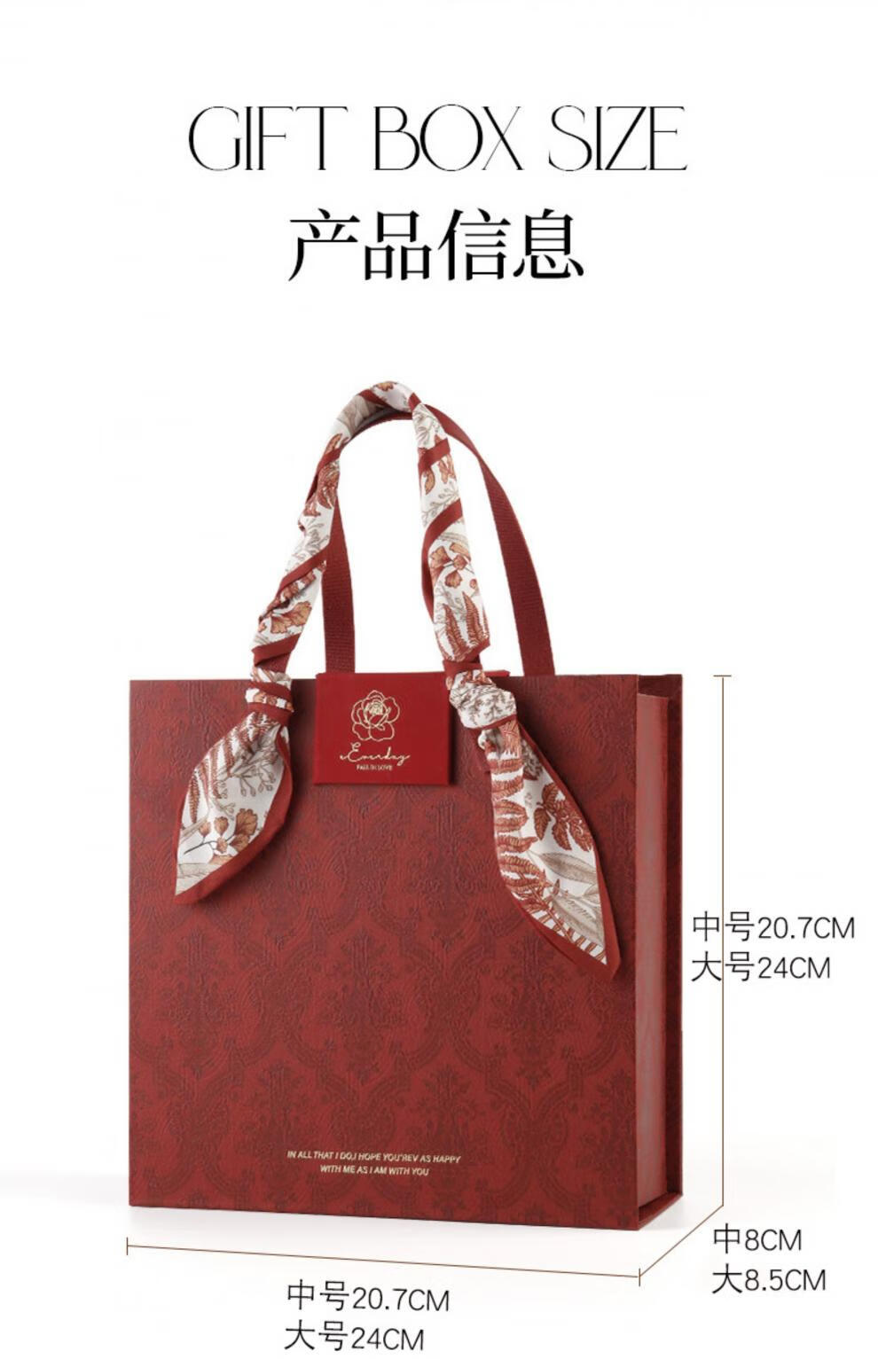 LEOEZYA礼盒空盒手提红色礼盒空盒结婚礼物盒包装盒新婚手提伴娘礼品盒伴 【勃艮第红】小号内径: 20*20*6cm 礼盒+丝带
