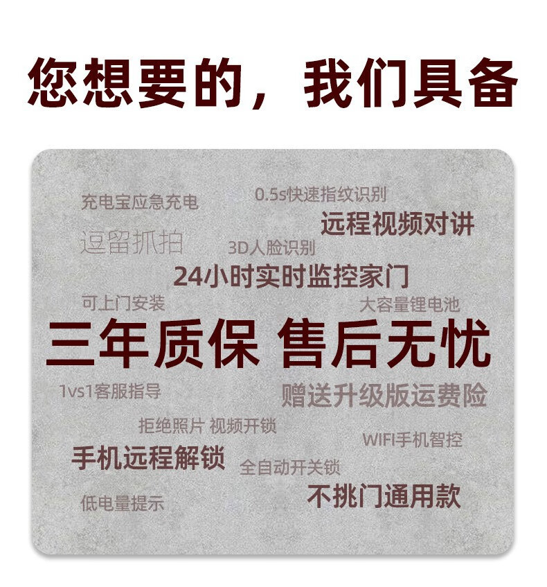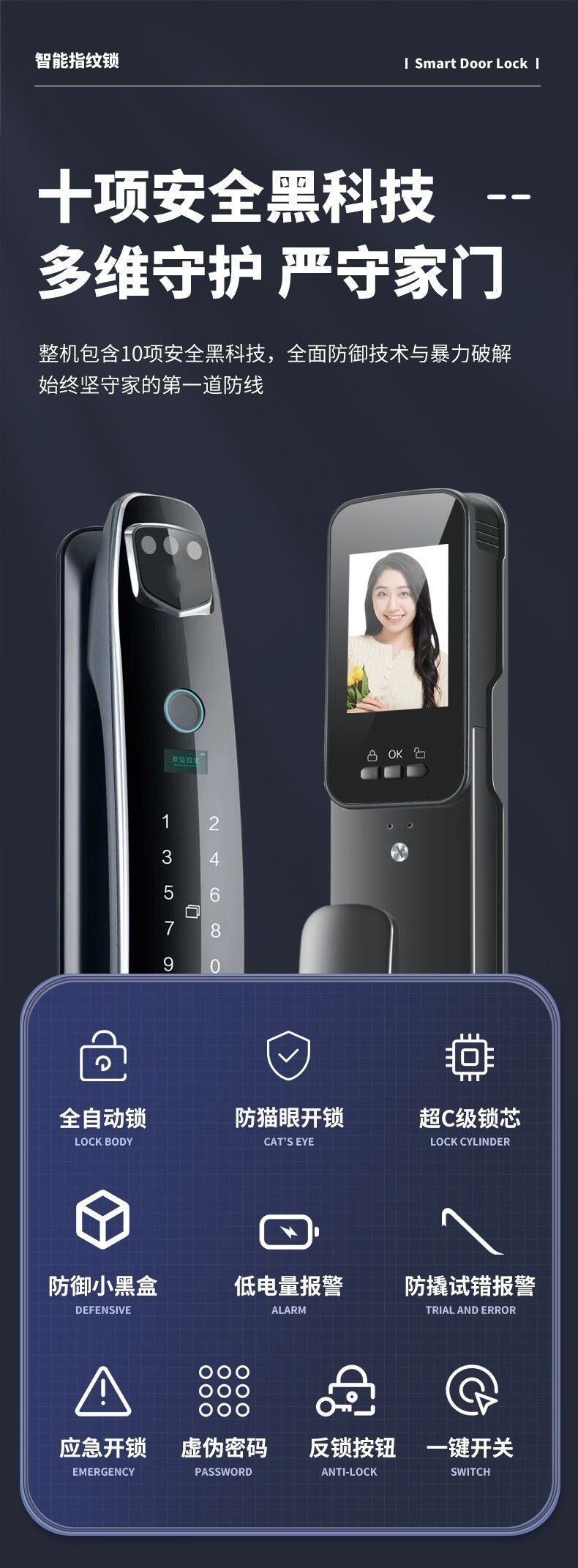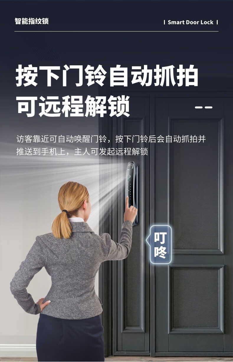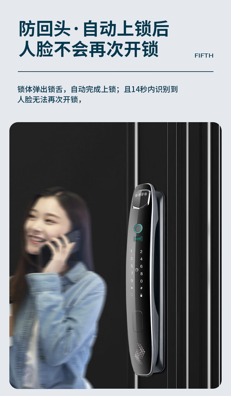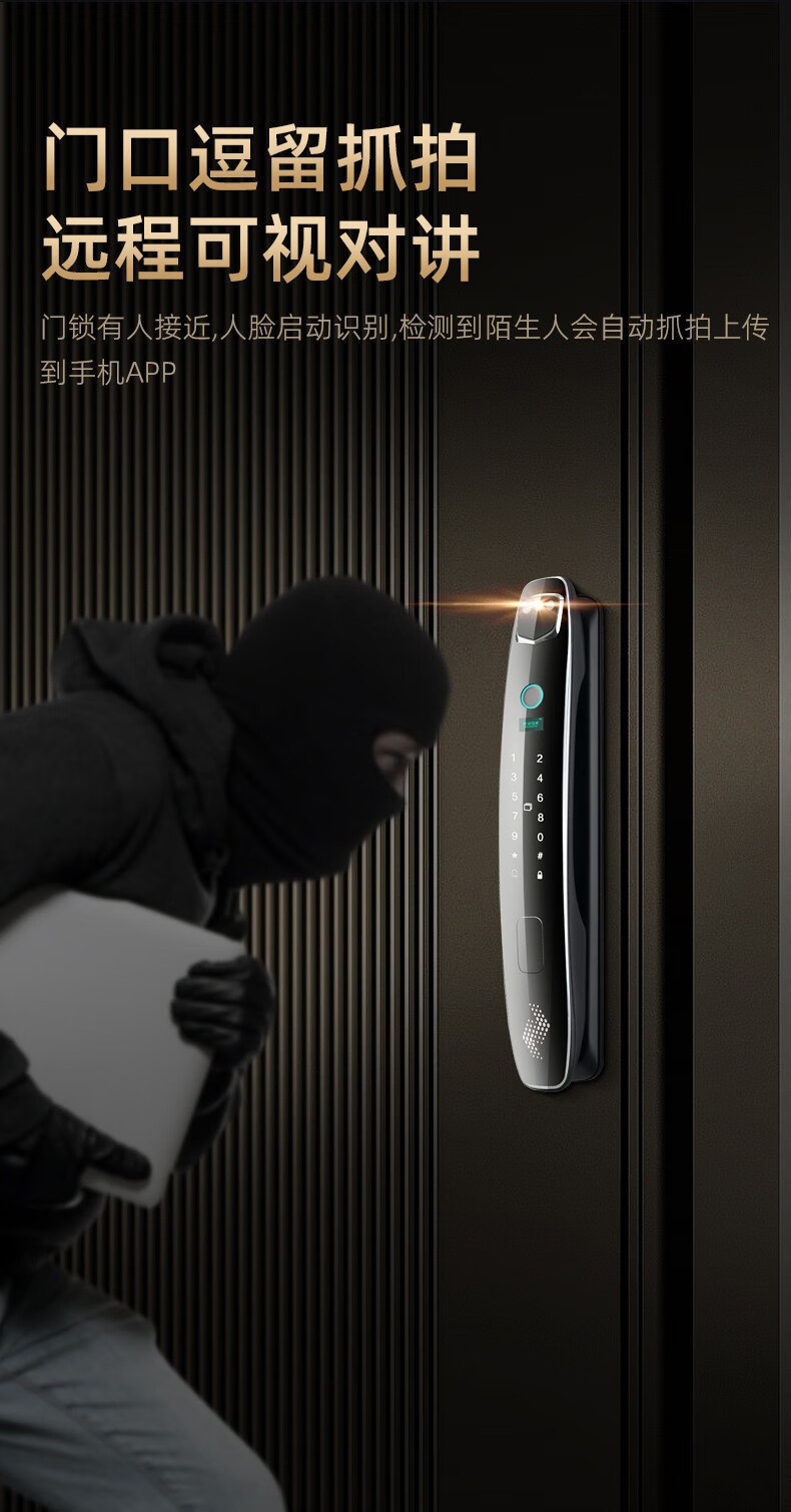 耐久3D人脸识别指纹锁全自动密码锁带钥匙远程密码智能门锁猫眼 CS7人脸款
