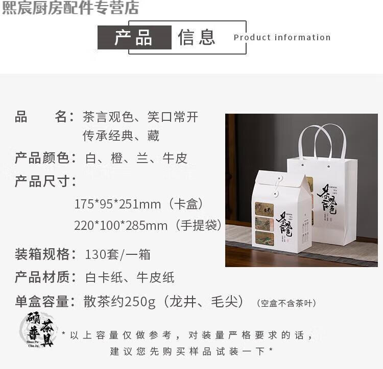 怜伊尘茶叶手提袋散茶包装盒普洱绿茶包装袋白茶中国风包装盒空礼盒定制 茶言观色手提袋+盒子+内袋(兰