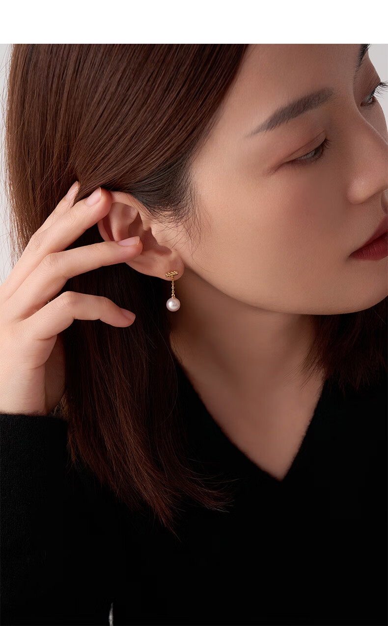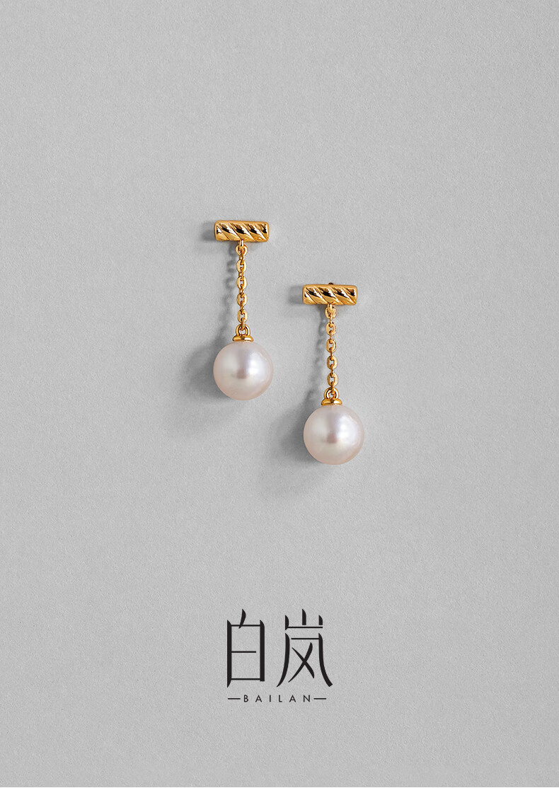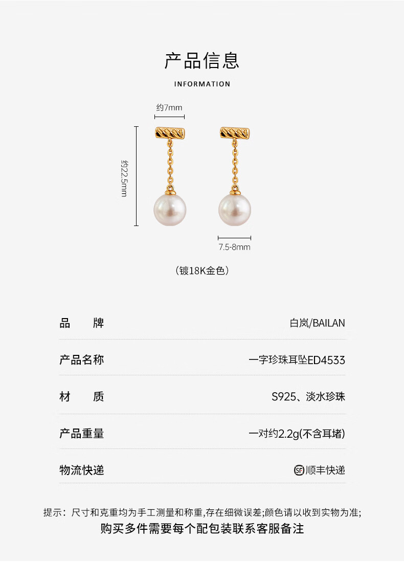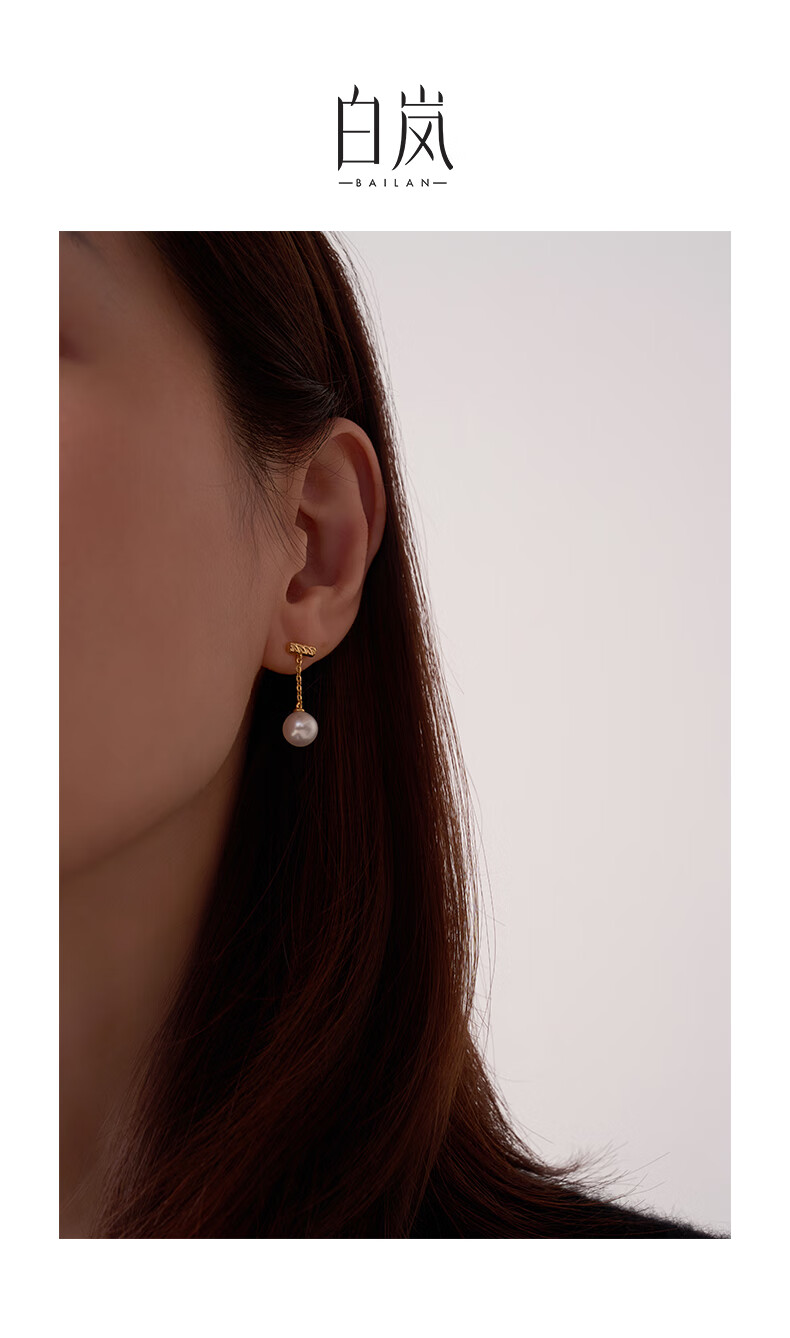 白岚一字珍珠耳钉淡水珍珠耳环精致高级感轻奢耳饰配饰新年礼物送老婆 一字珍珠耳坠