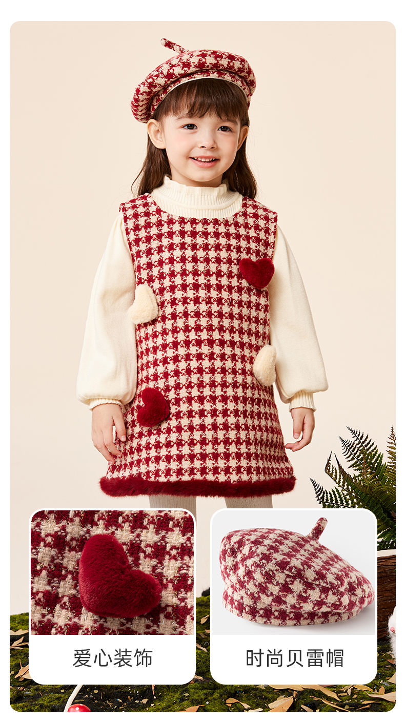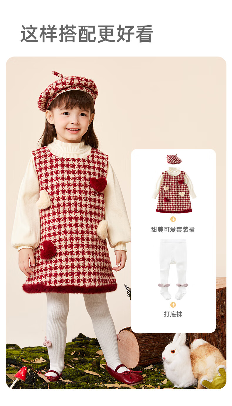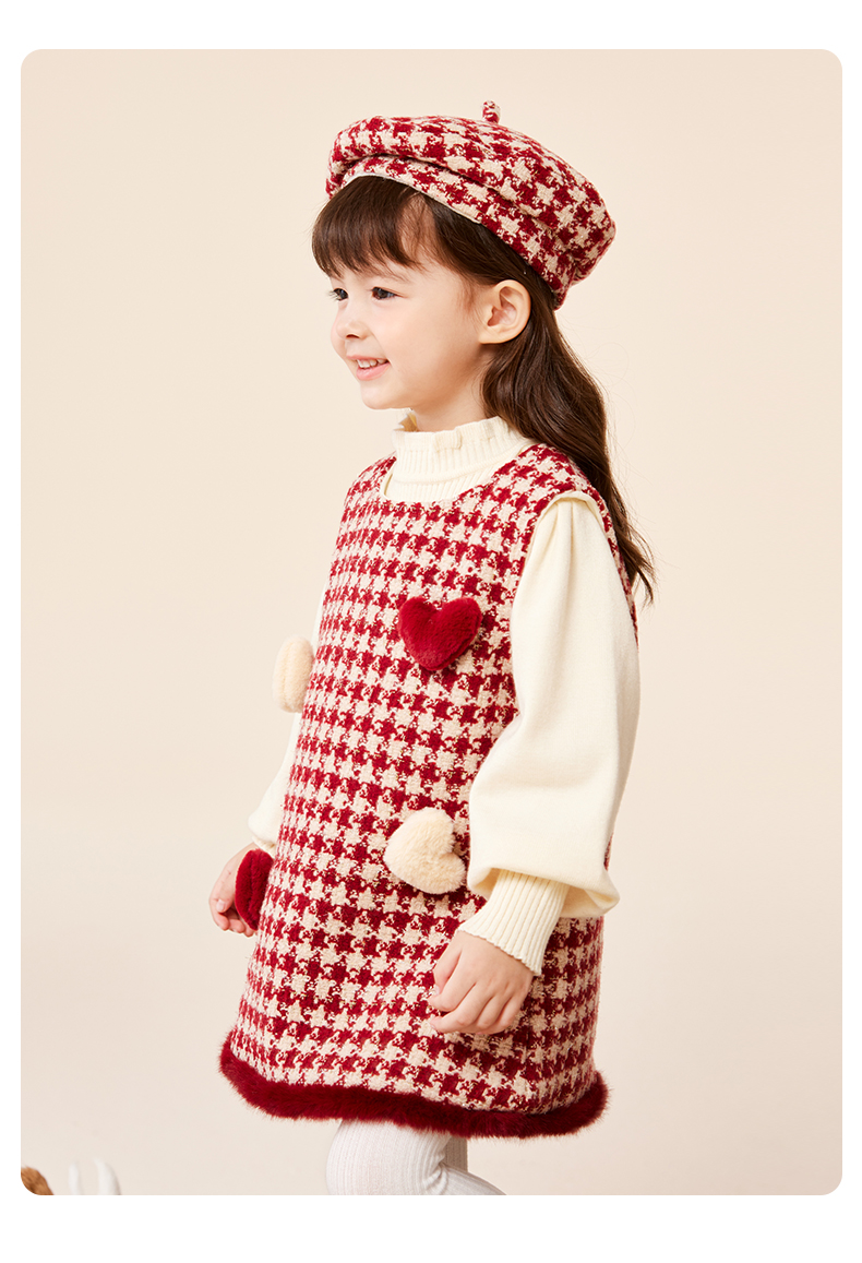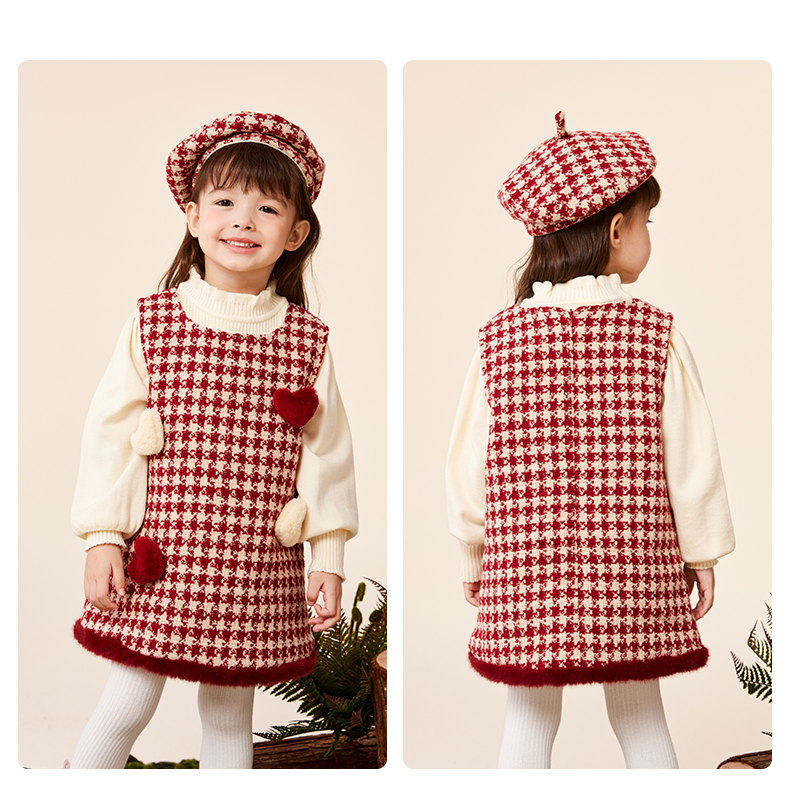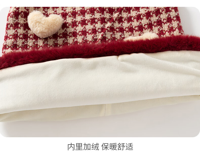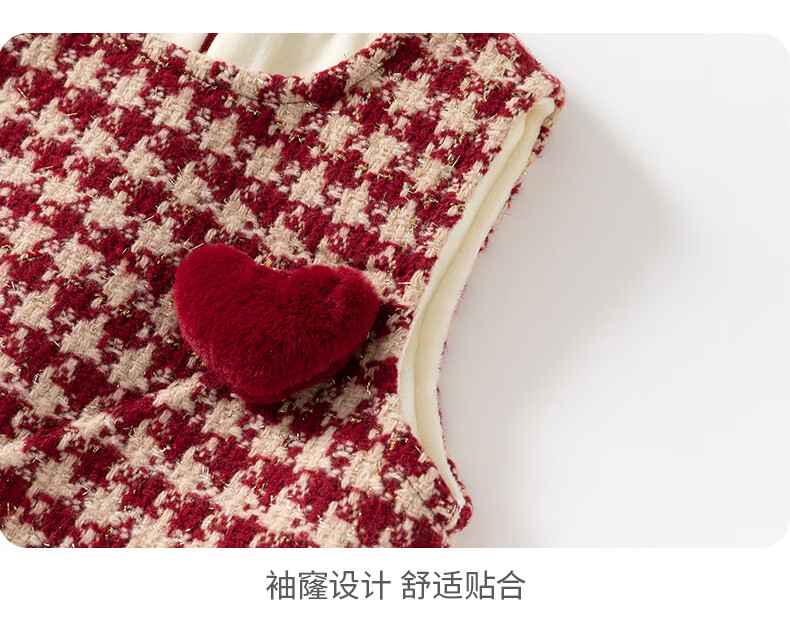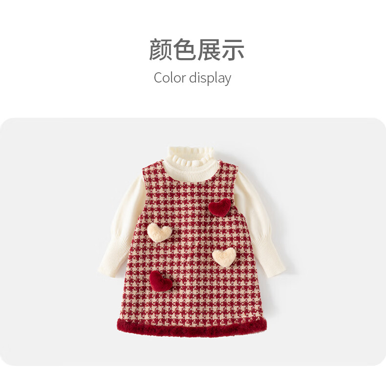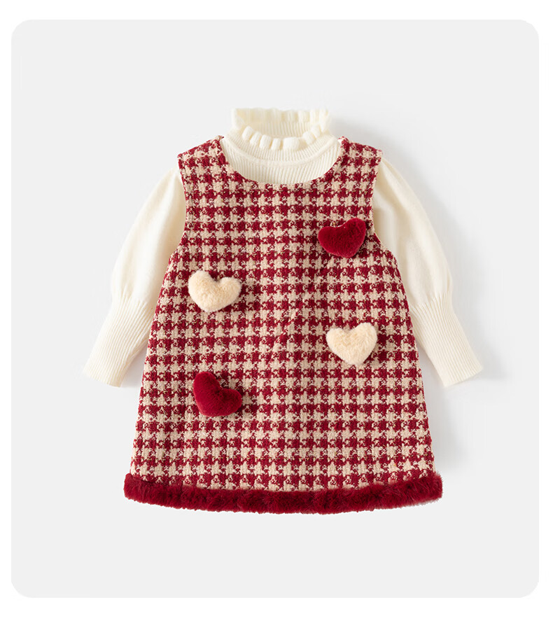 班喜迪女童连衣裙冬装女宝宝公主裙套装周岁礼服拜年服加绒儿童背心裙子 红色 80