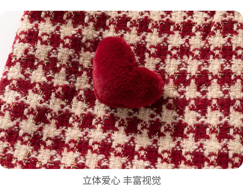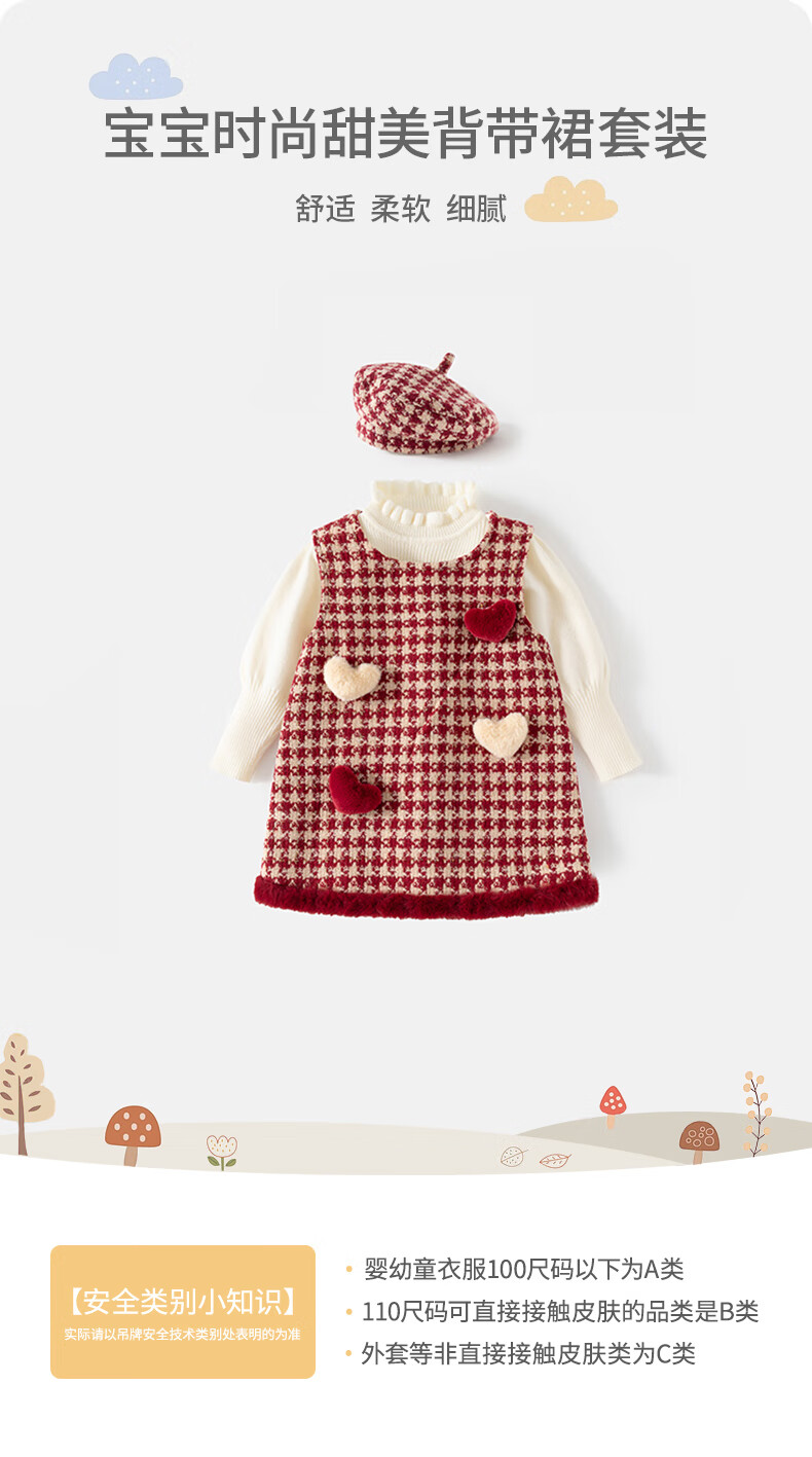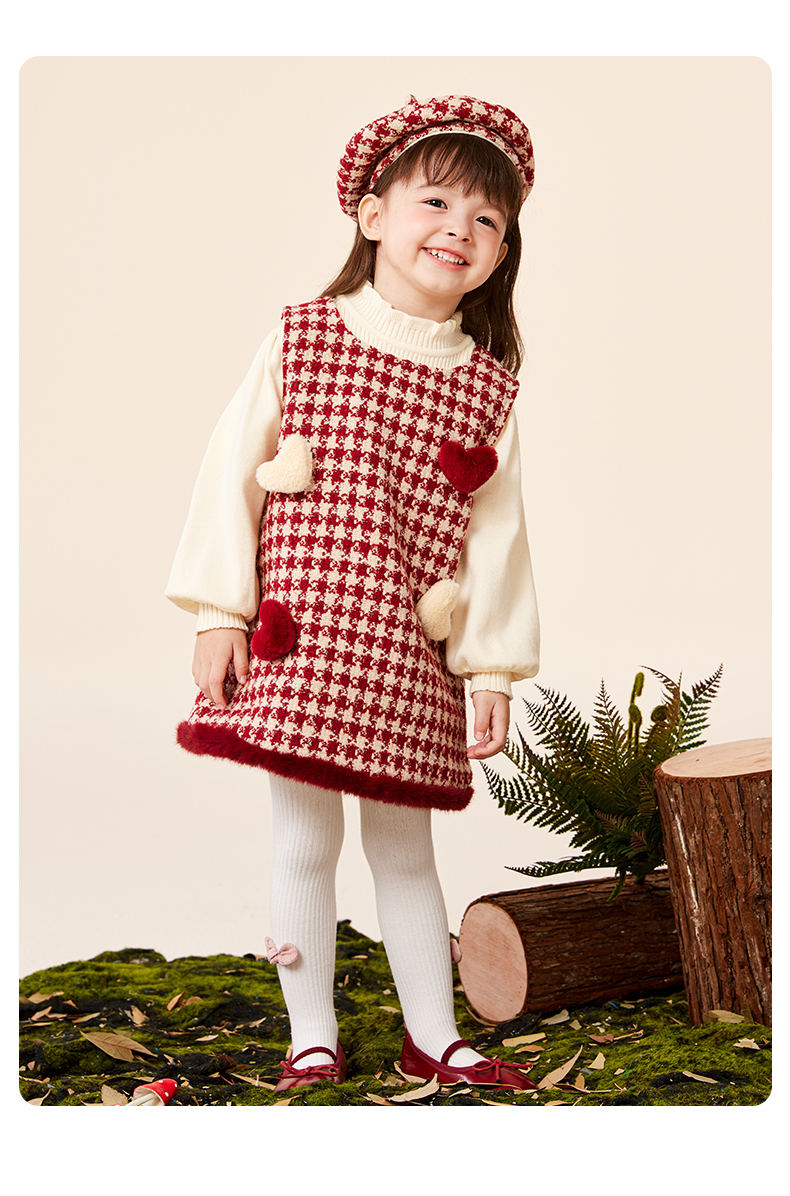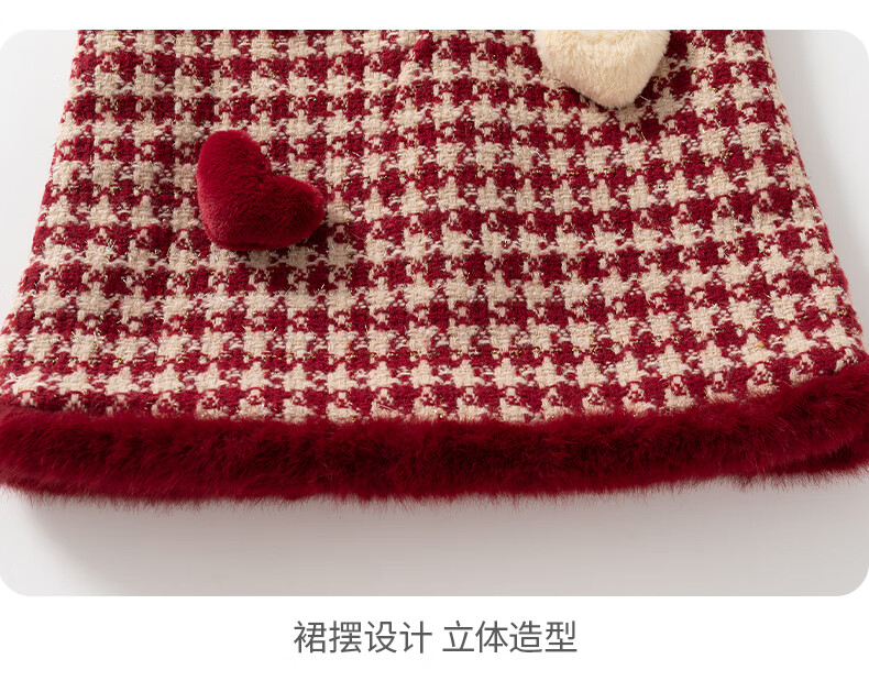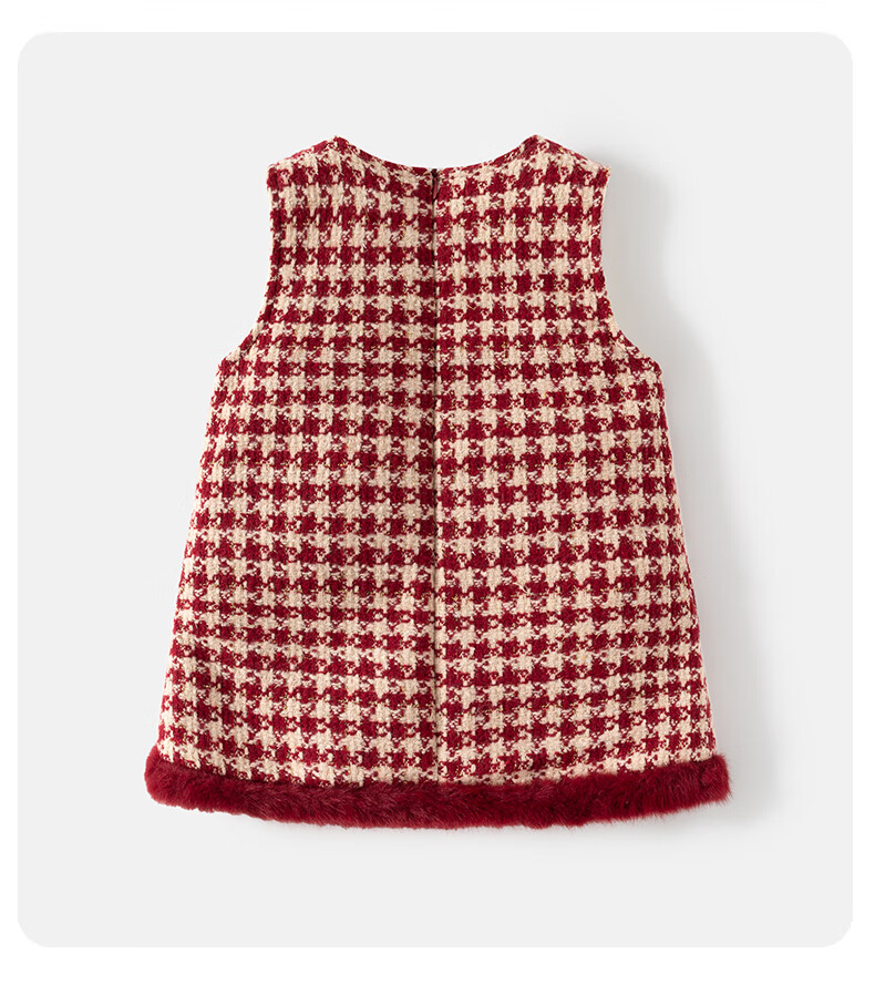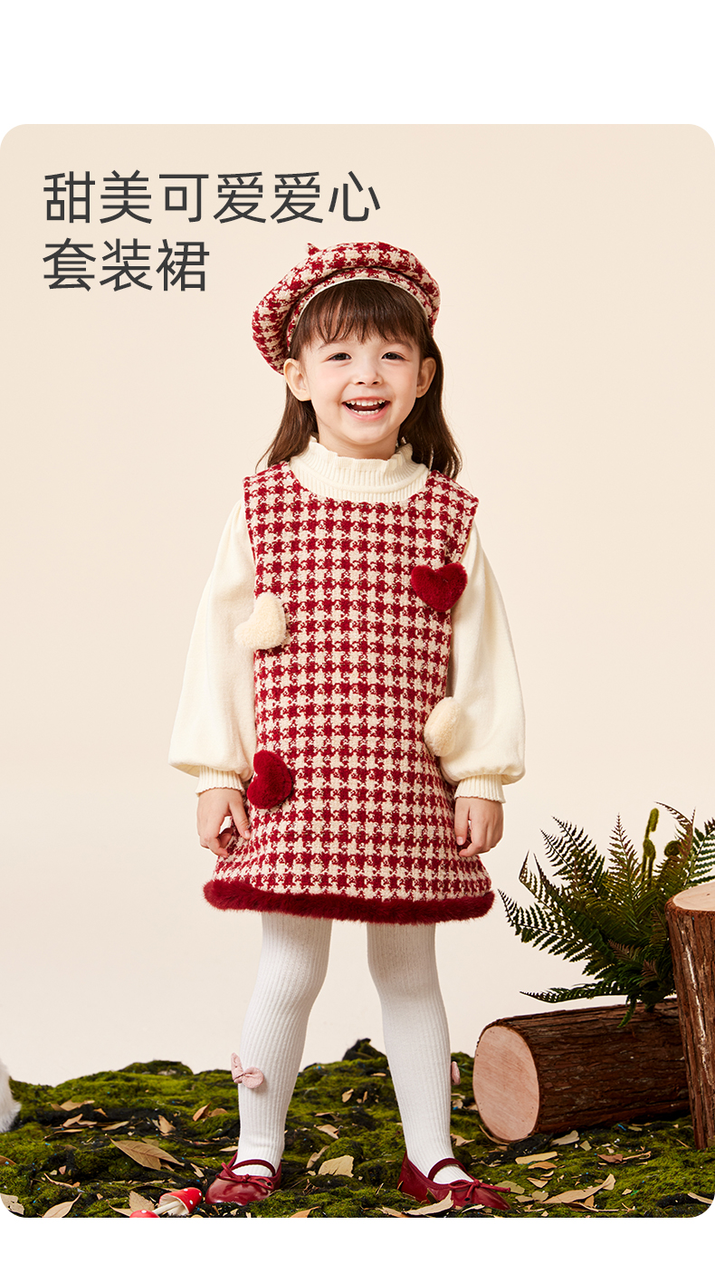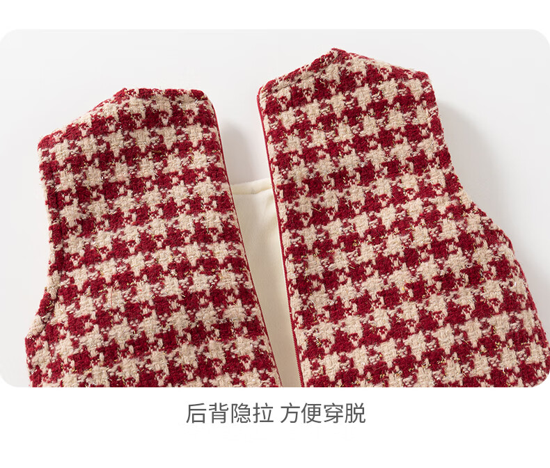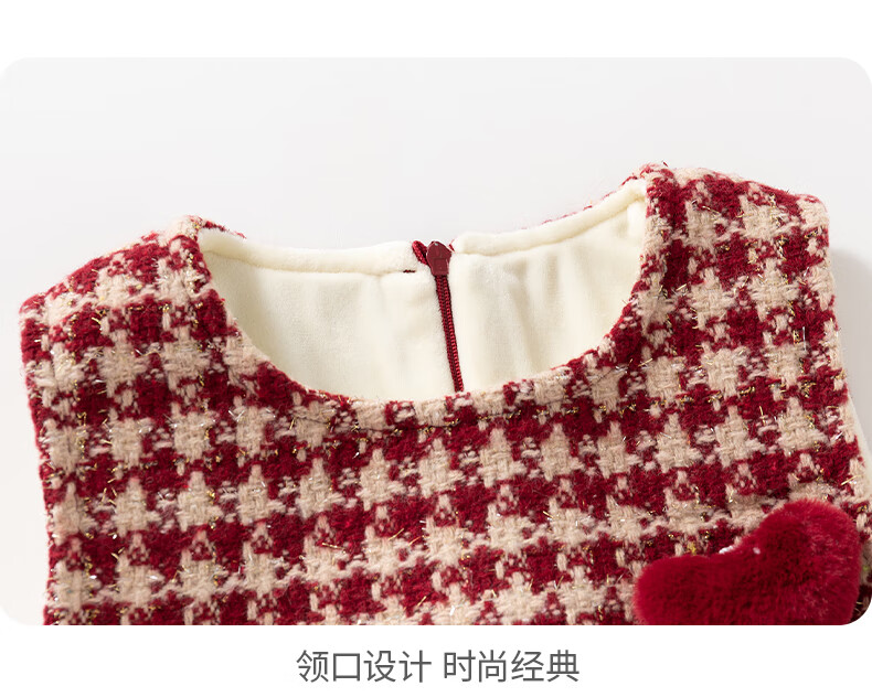 班喜迪女童连衣裙冬装女宝宝公主裙套装周岁礼服拜年服加绒儿童背心裙子 红色 80