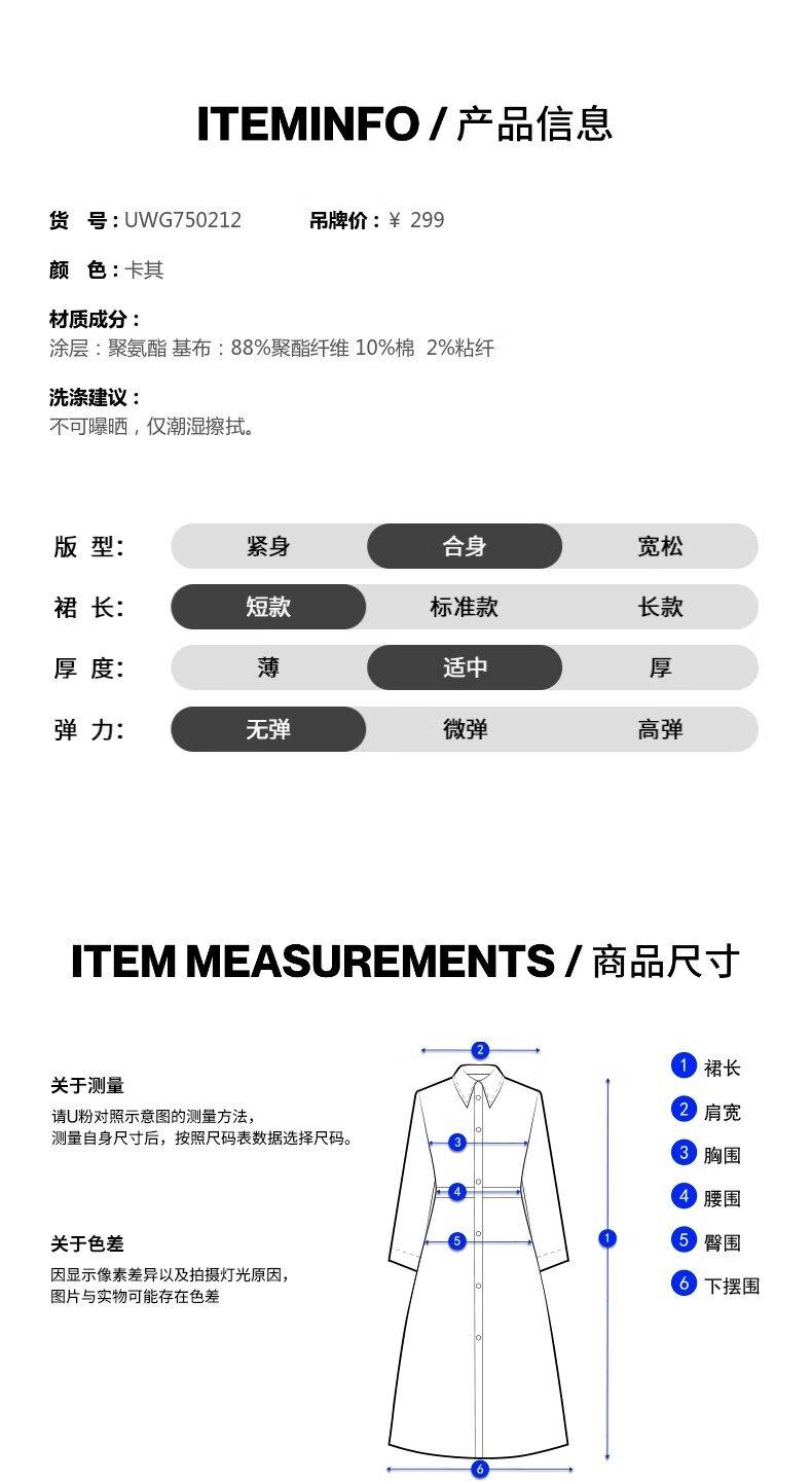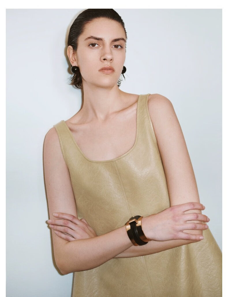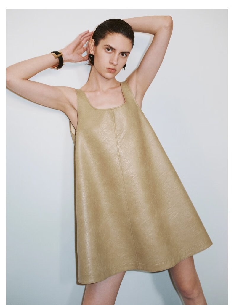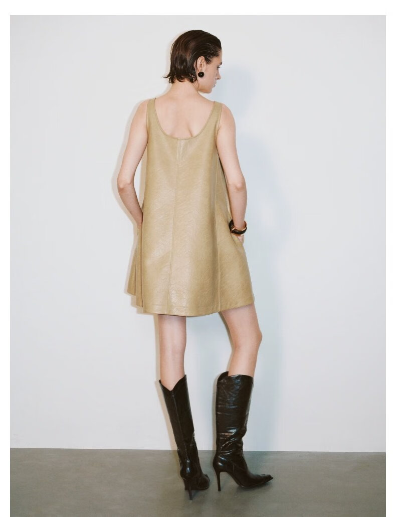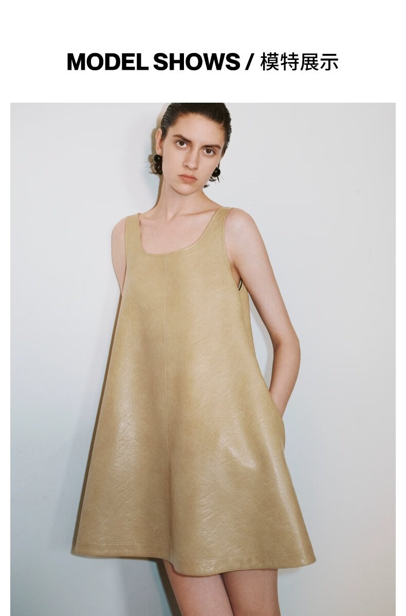 UR2025秋季新款女装摩登气质PU背心式A字连衣裙UWG750212+ 卡其 S