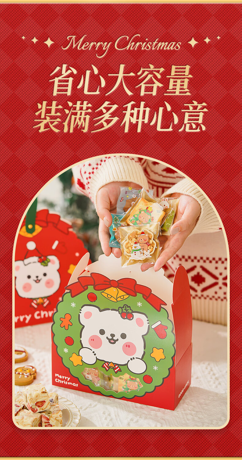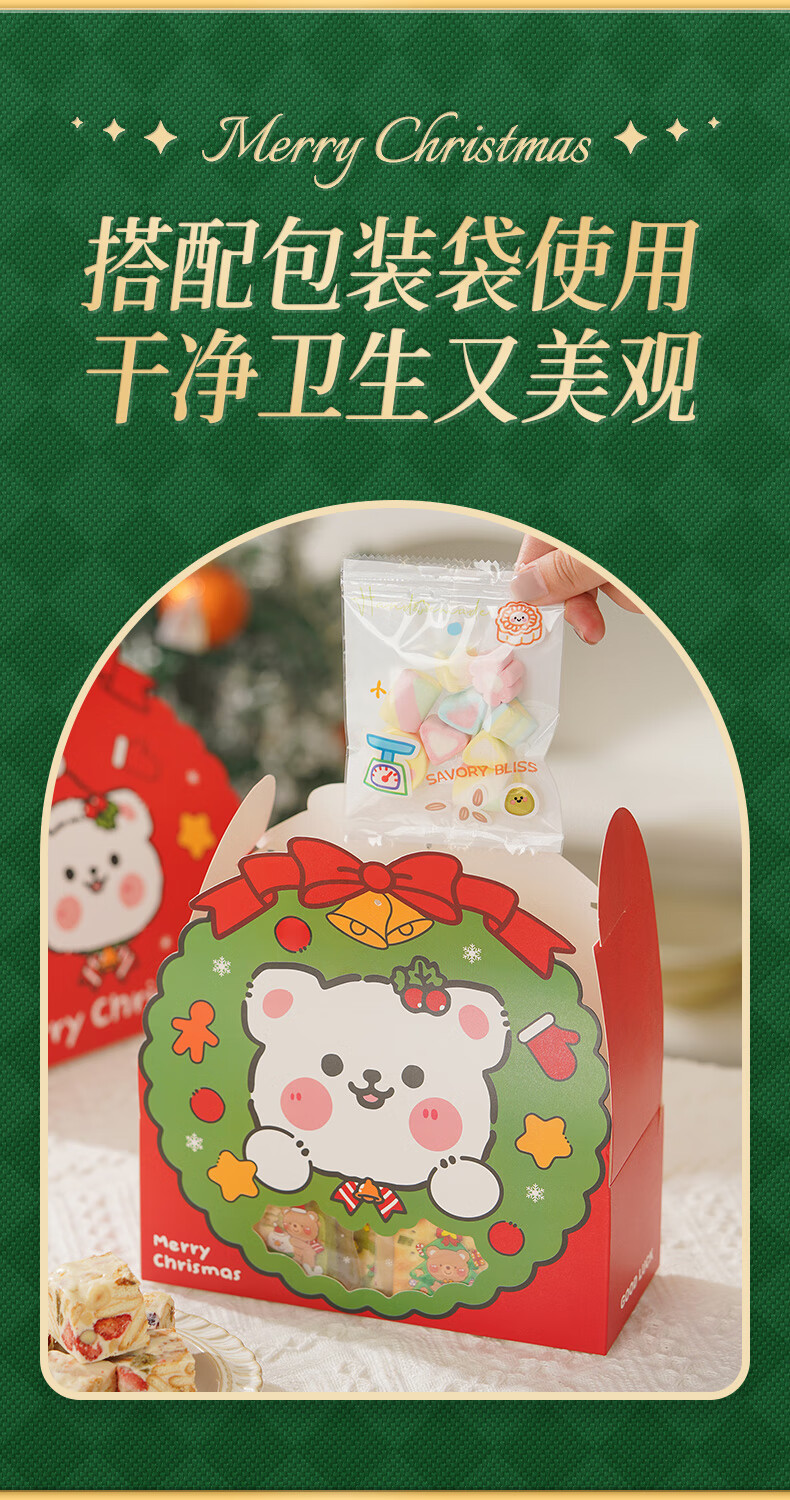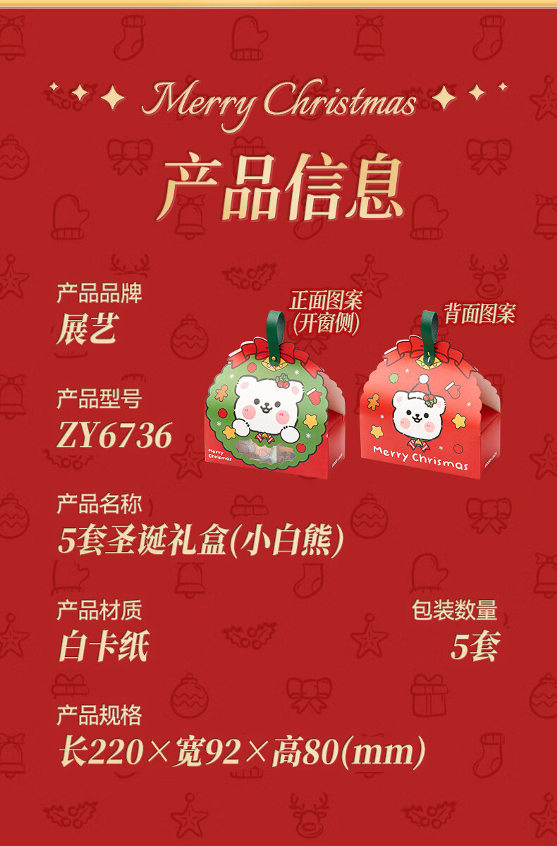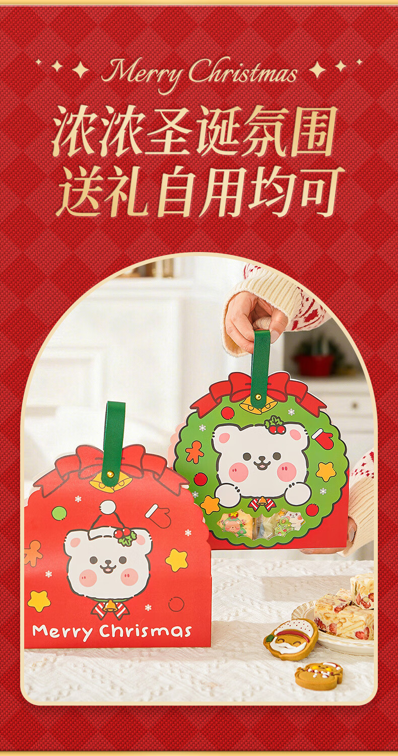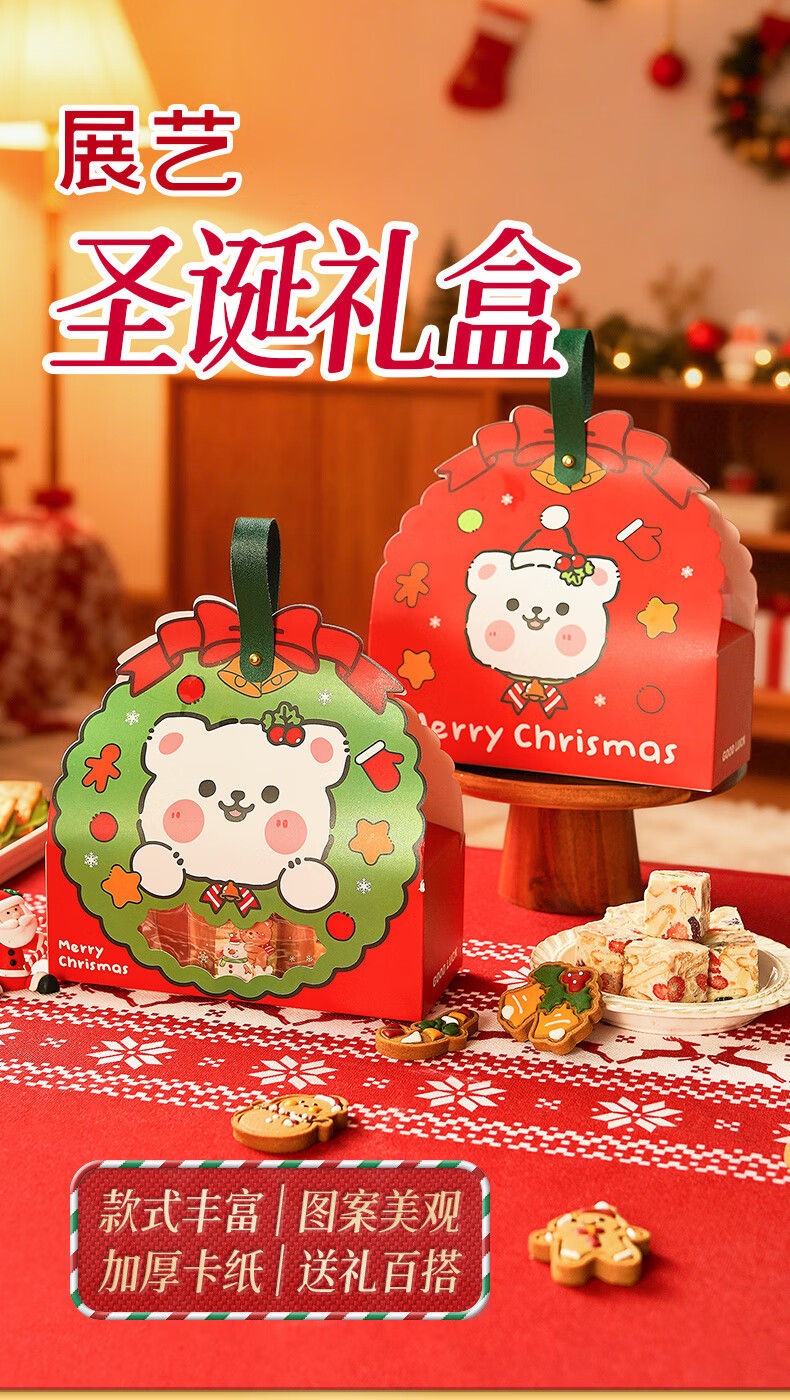 展艺包装礼盒5套 糖果饼干曲奇溶豆雪花酥手提袋伴手礼物袋新年小白熊