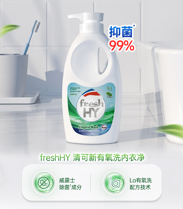 威露士清可新松木内衣净600ml 手洗内衣洗衣液内衣裤专用洗衣液抑菌除螨