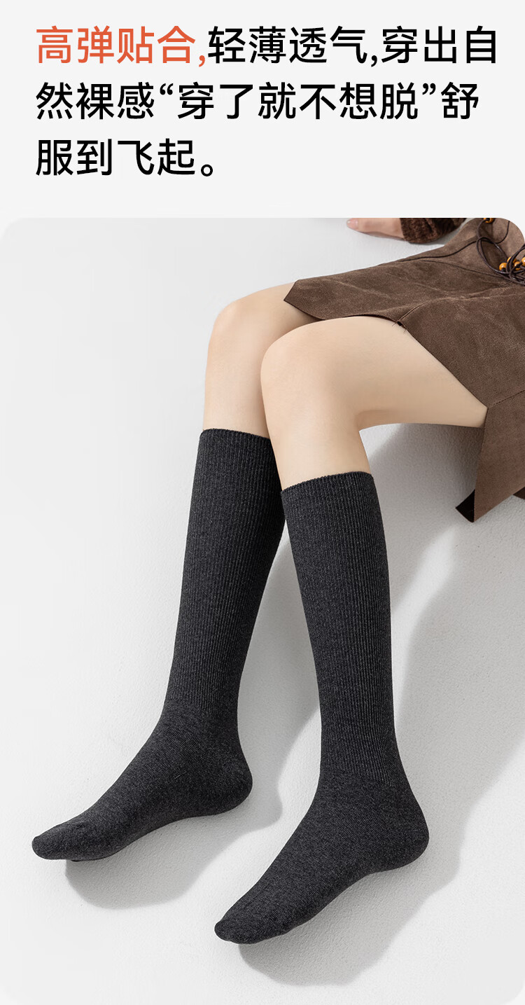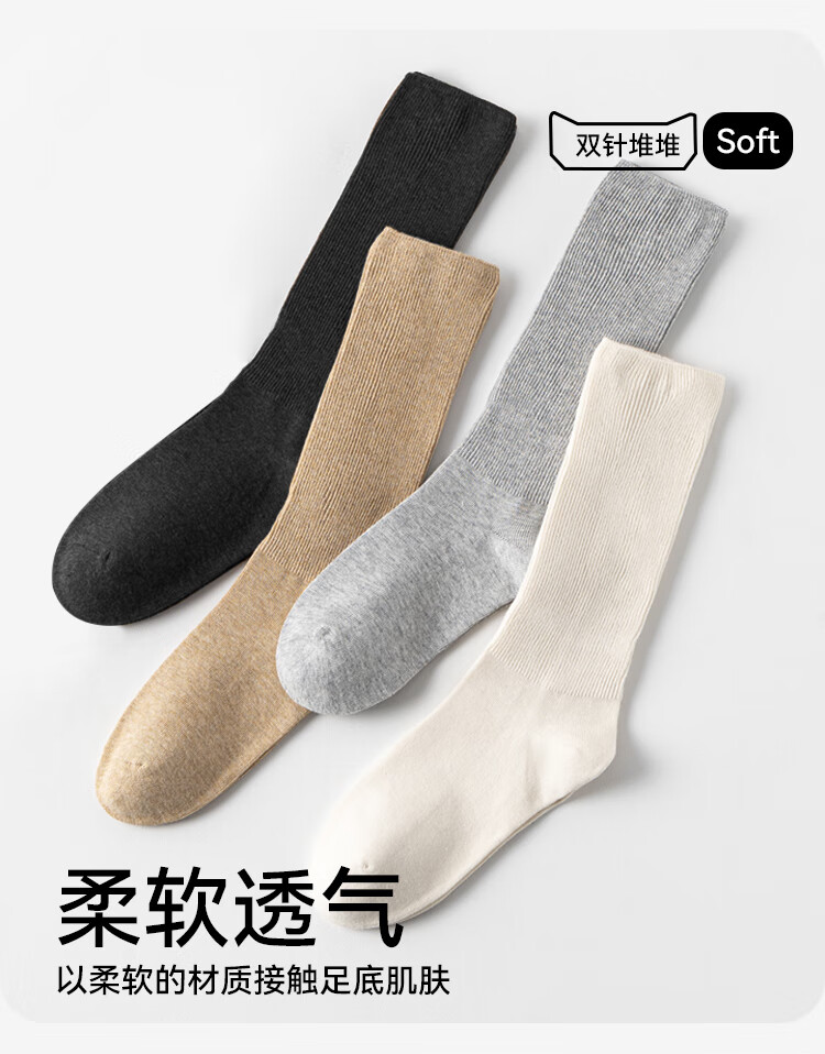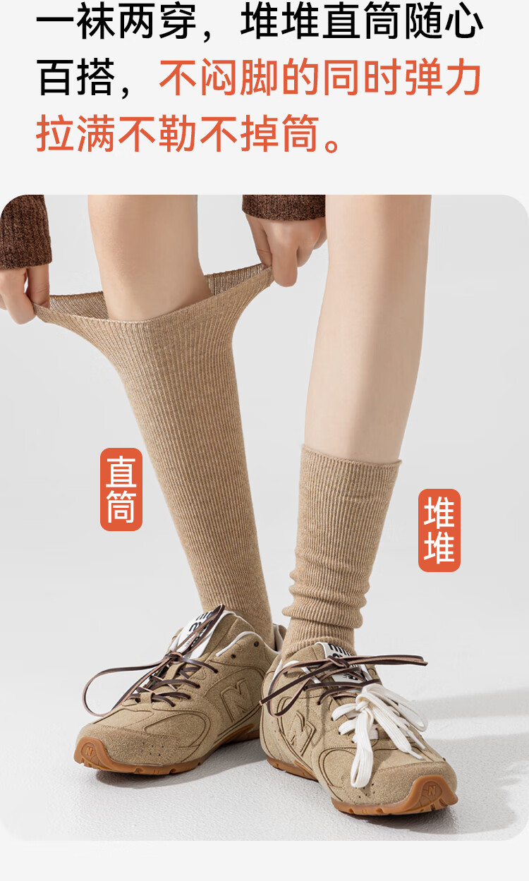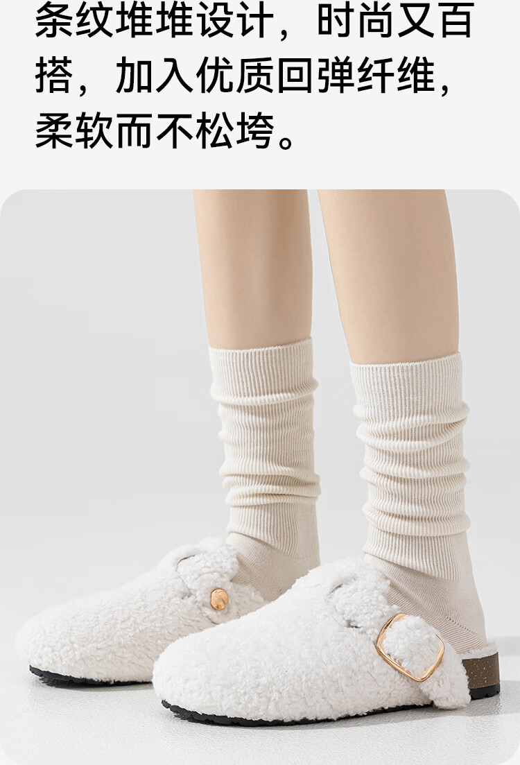 猫人4双女士袜子女双针长筒堆堆袜miu风搭配小皮鞋竖条纹中筒棉袜