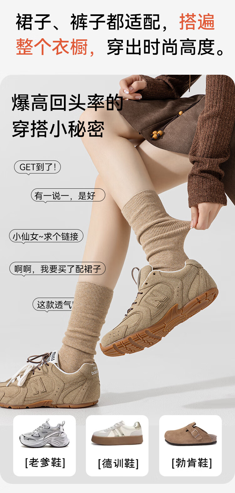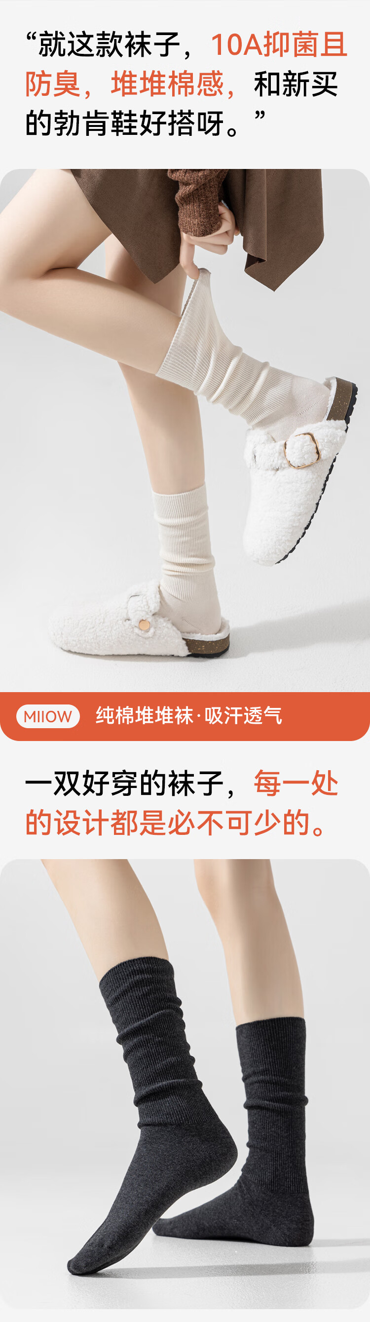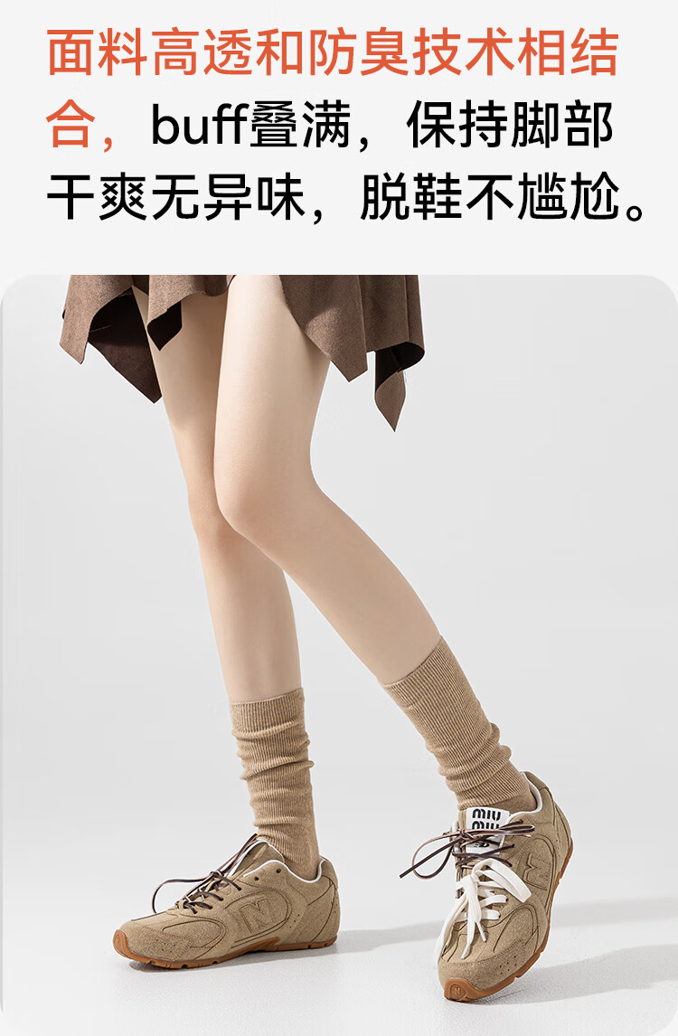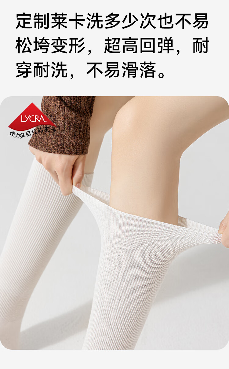 猫人4双女士袜子女双针长筒堆堆袜miu风搭配小皮鞋竖条纹中筒棉袜