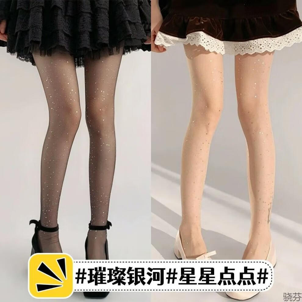 YUNZHIQIU璀璨银河肤色闪光亮片丝袜白色纯欲风透星点黑丝连裤袜 璀璨银河黑色星星点