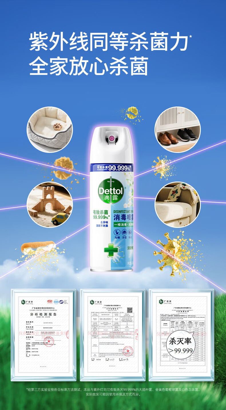 滴露(Dettol)消毒喷雾454ml鞋子除臭杀菌喷雾除臭喷雾厕所马桶消毒铃兰甲流感